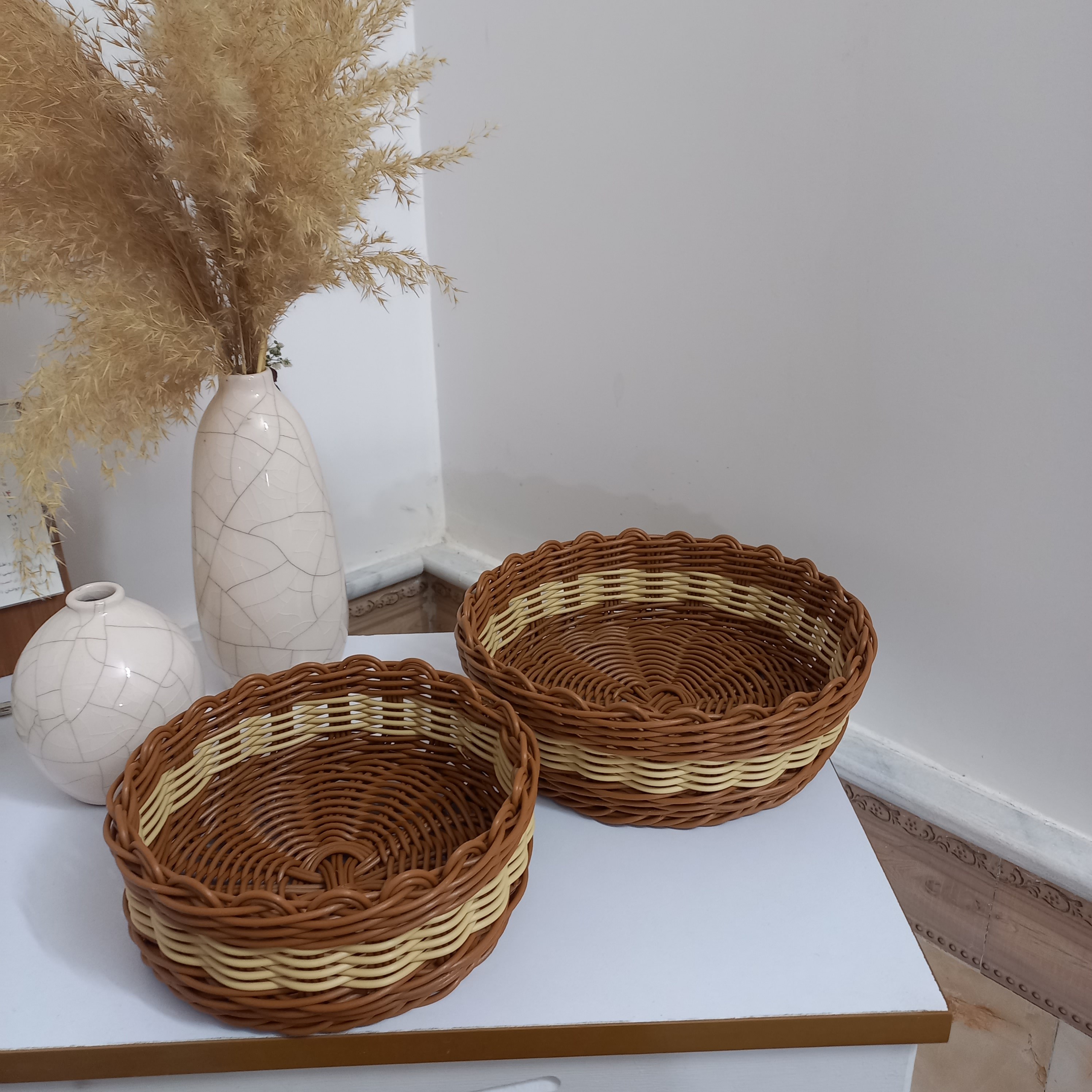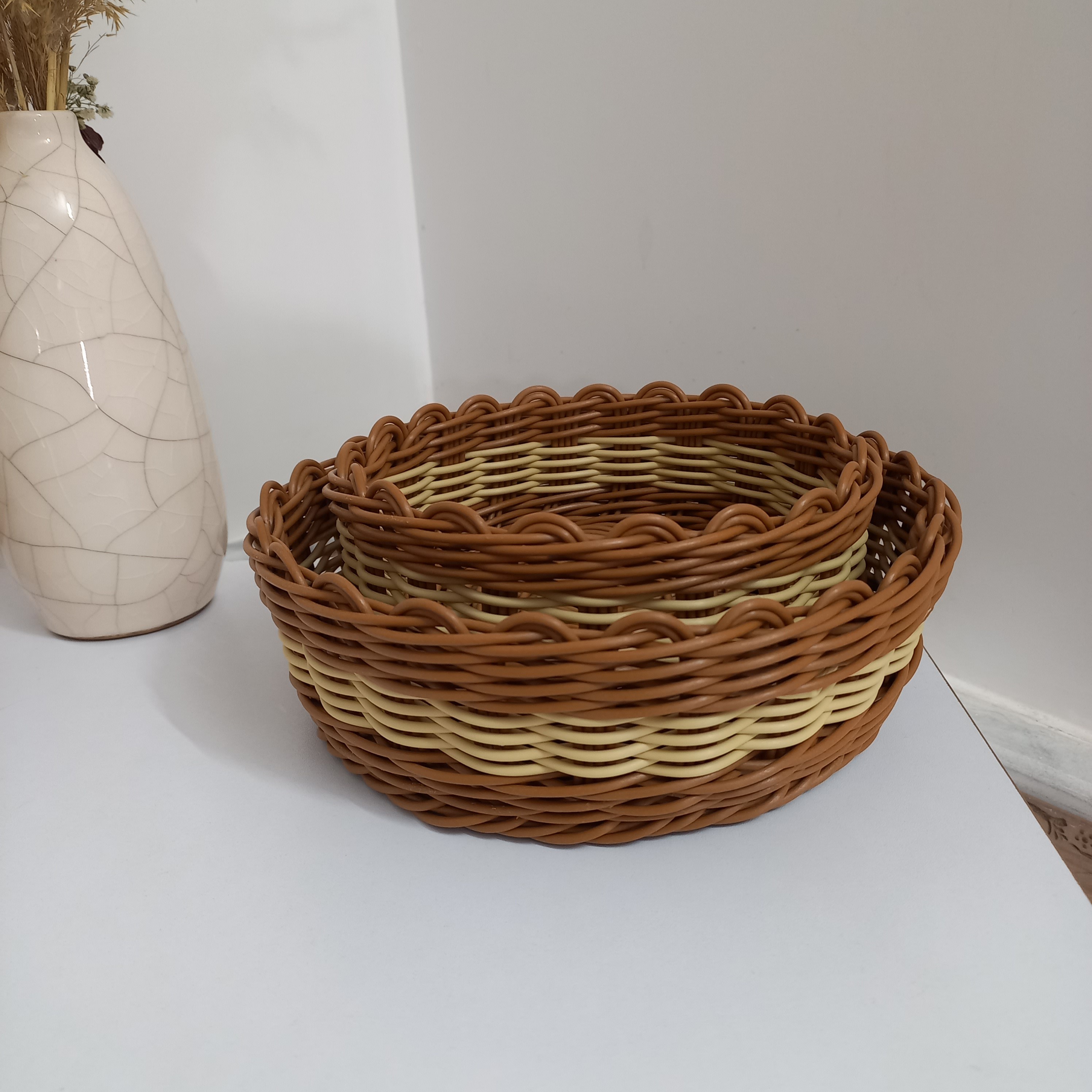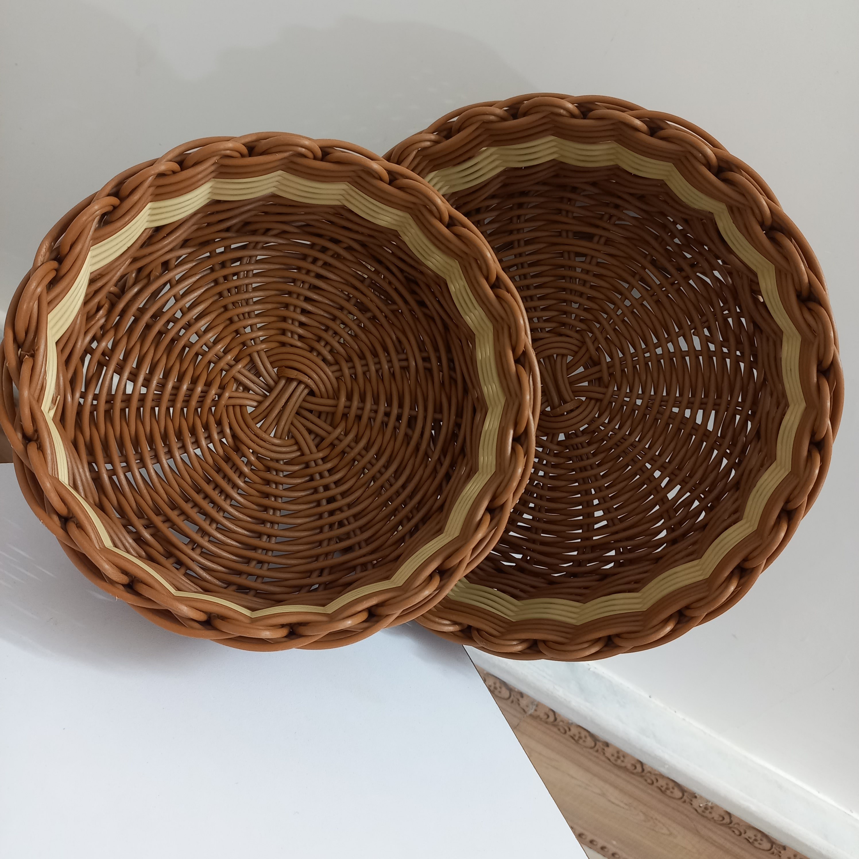 ست سبد دوتایی زیبا و شیک دو دو سایز باقطر 23 و قطر 18 مناسب میوه و نان و سبزی و اجیل تنقلات و مزه قابل شستشو و بسیار مقاوم