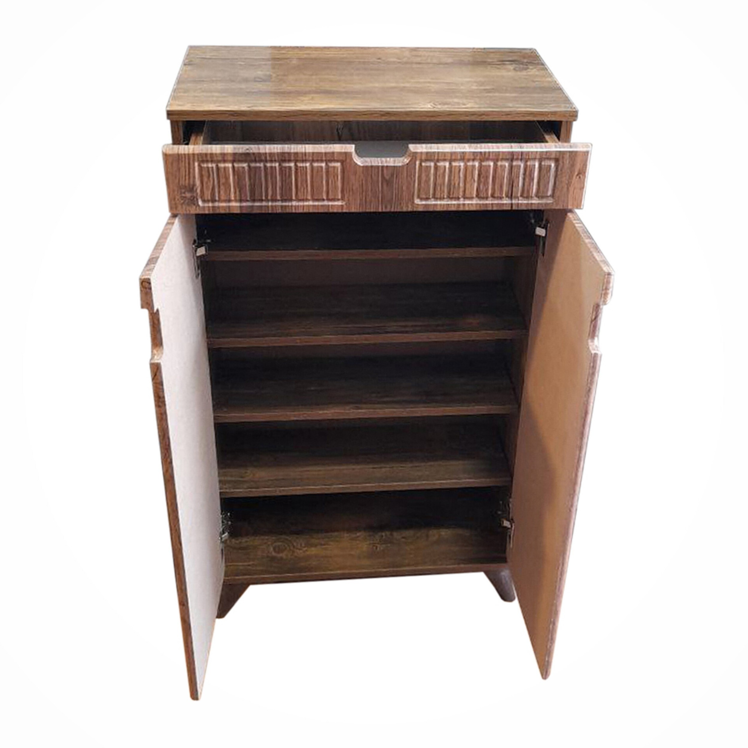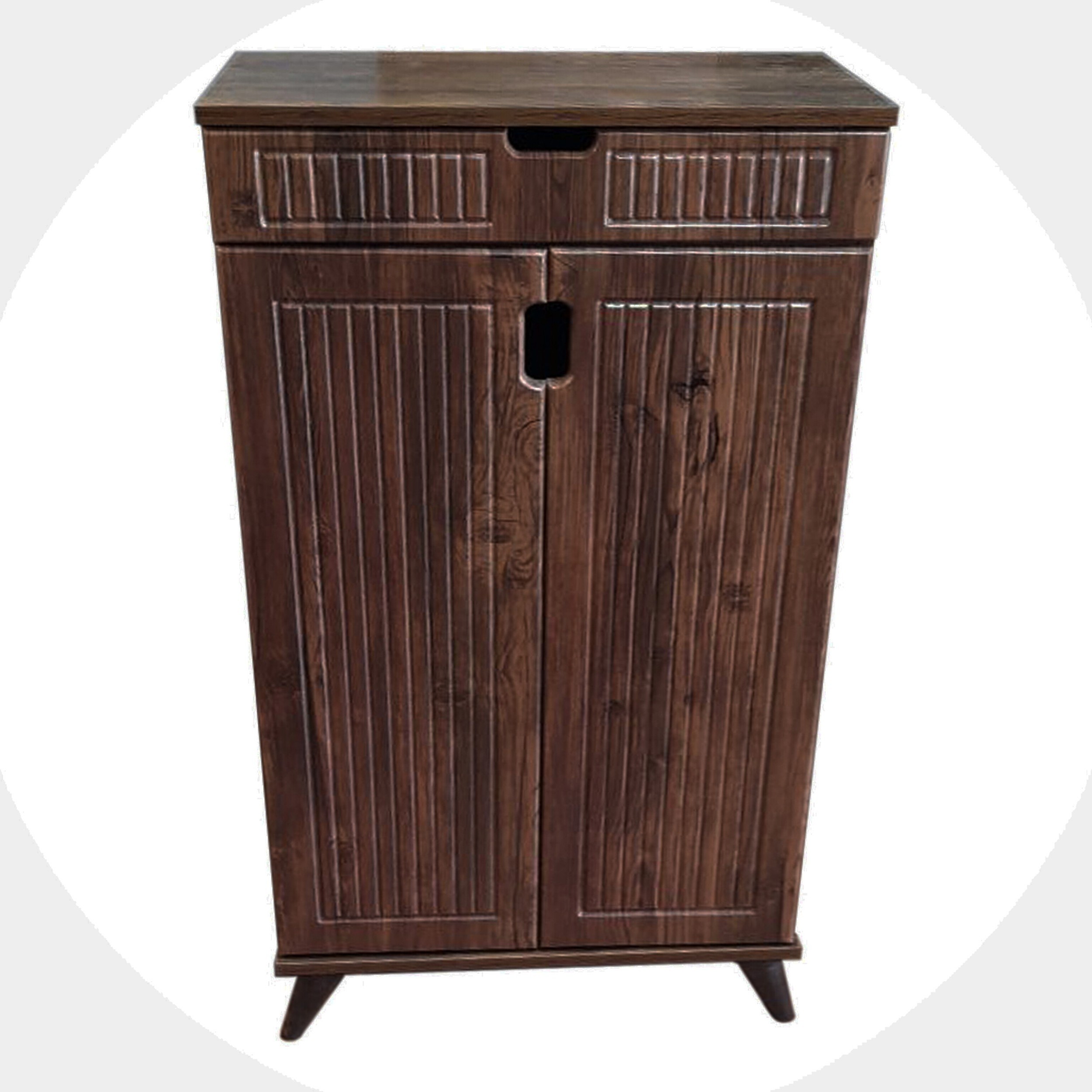 جاکفشی دو درب جنس ملامینه و نما ام دی اف وکیوم 5طبقه و یک کشو ابعاد 60×32×105 لولای آرام بند برای درب ها پایه های پلاستیک فشرده دارای رنگبندی