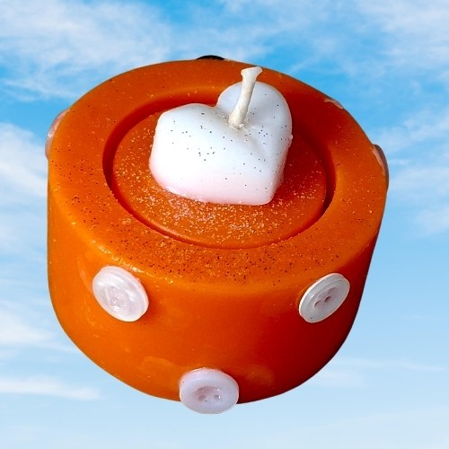 شمع دست ساز فانوسی تزئین شده با مروارید و گل و دکمه های نوستالژی
