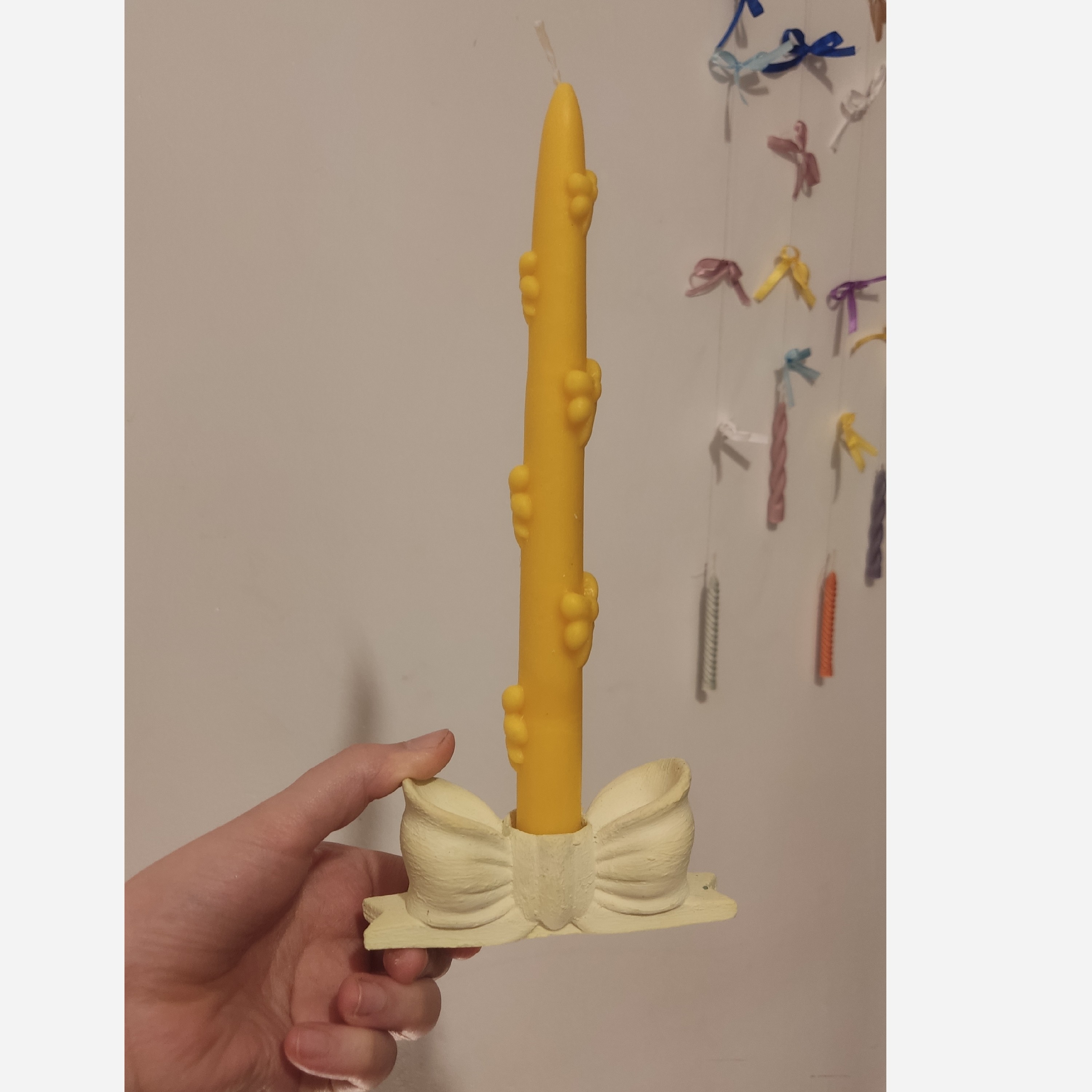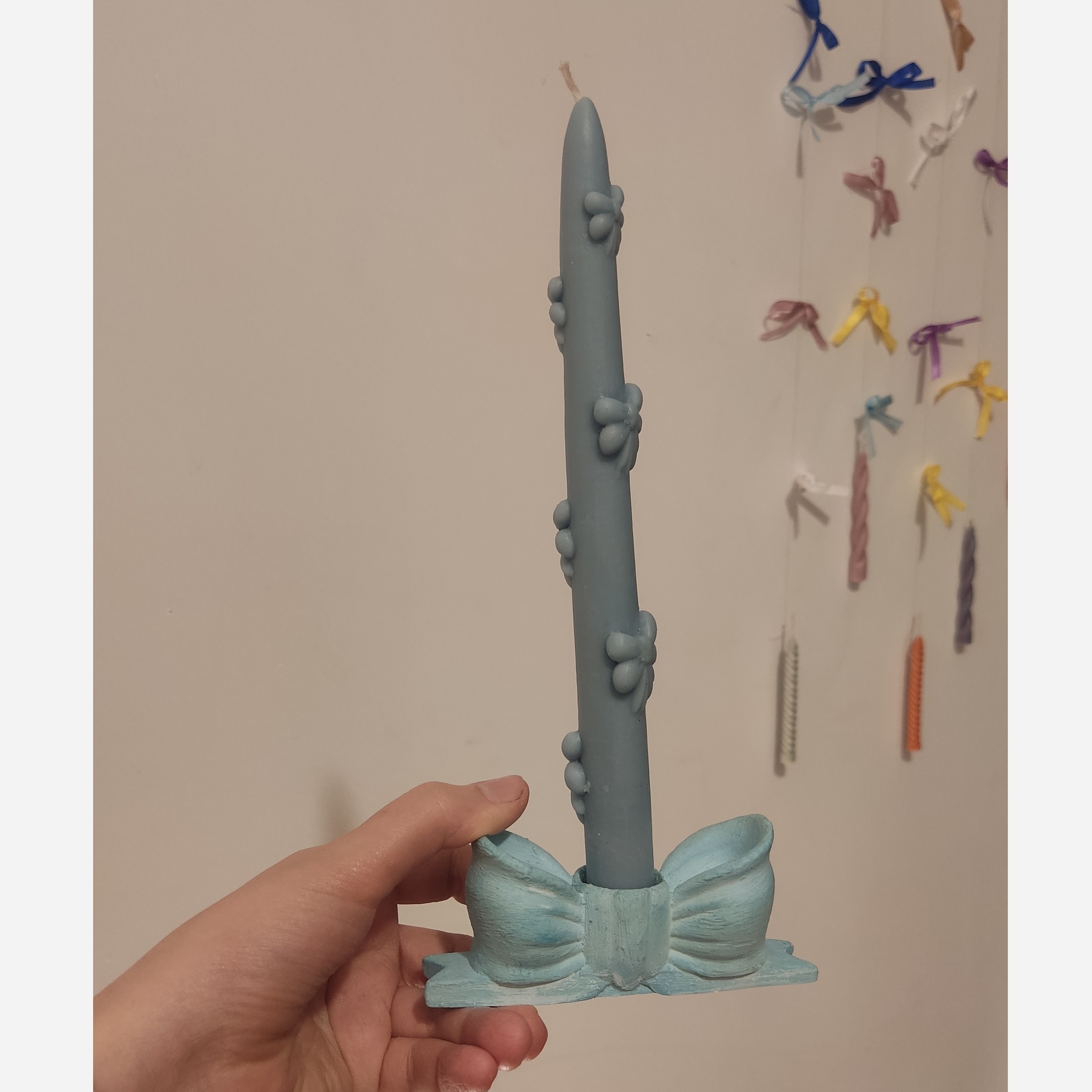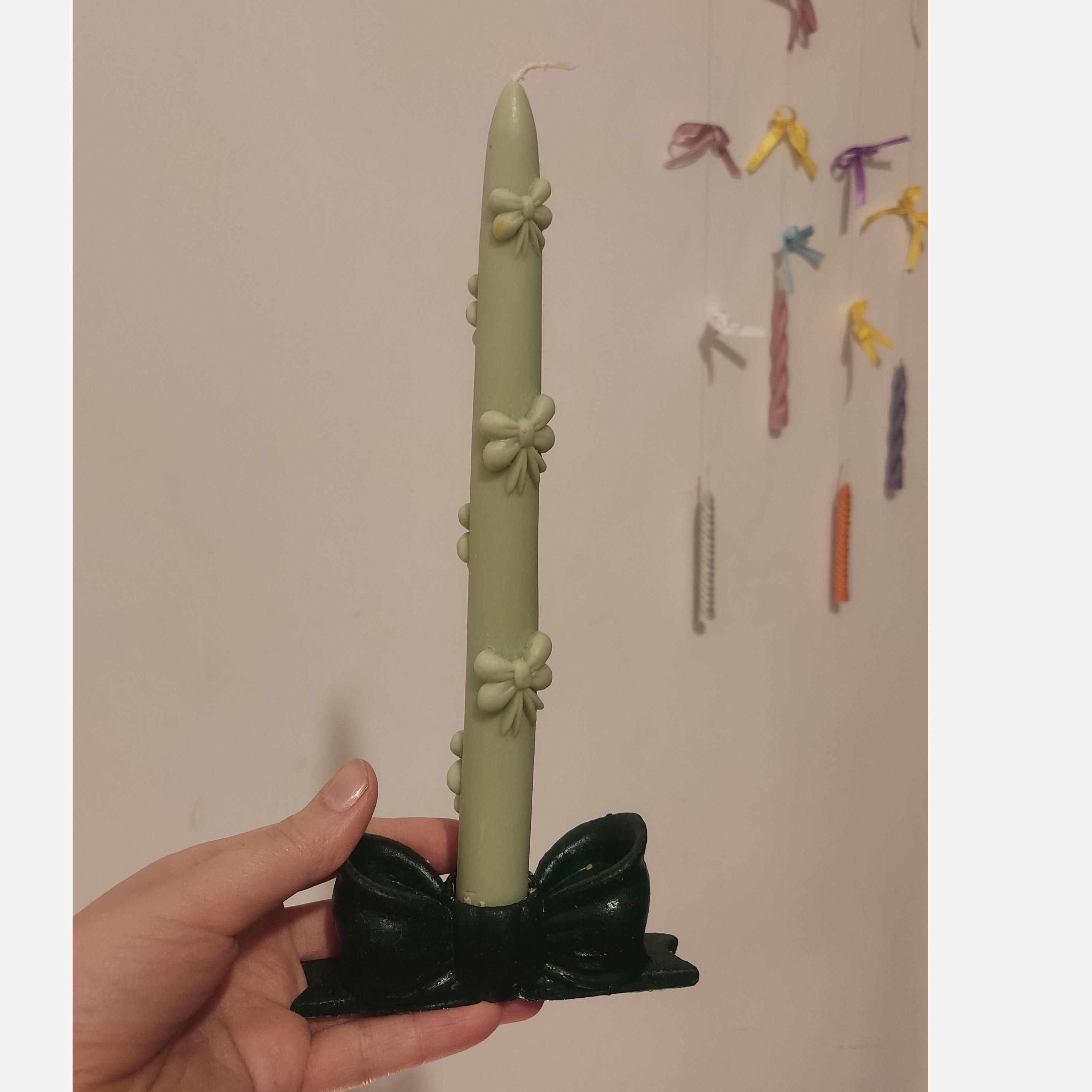 جاشمعی پاپیون و شمع پاپیون بصورت تک قیمت باهم تک جاشمعی و یک عدد شمع قلمی باهم رنگ جاشمعی و شمع به دلخواه شما قابل تغییر است ابعاد شمع 22سانت ارتفاع جاشمعی تقریبی 10 در3