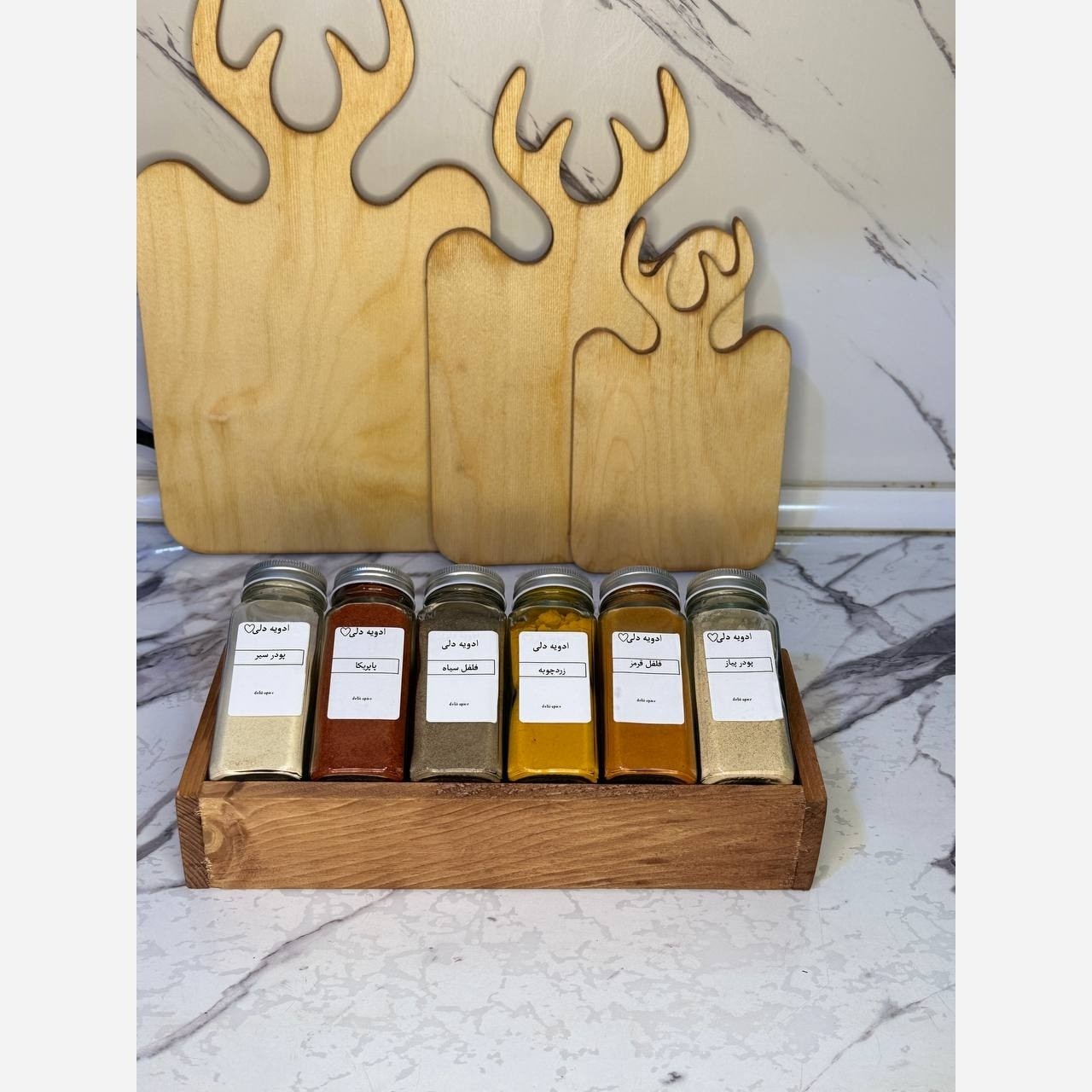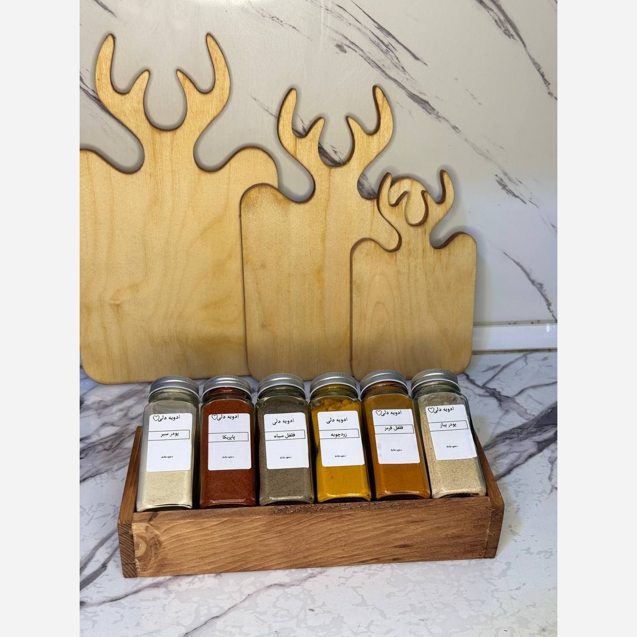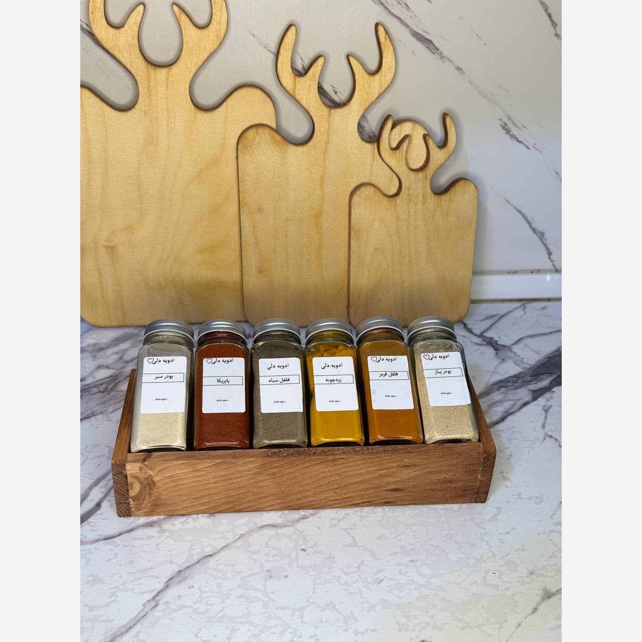 جا ادویه 5 تایی با ادویه مرغوب اهواز با استند چوبی مبلمونسرا مدل 293791