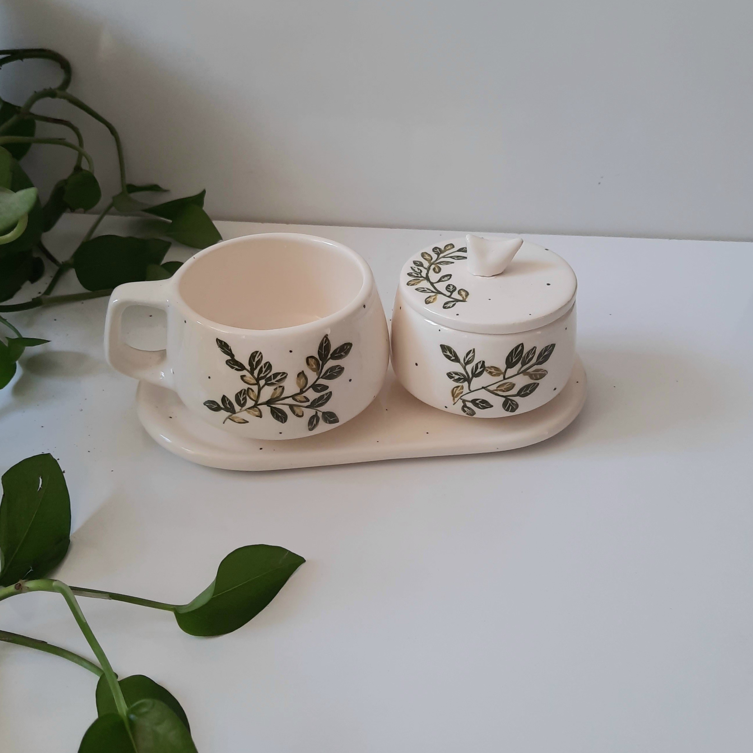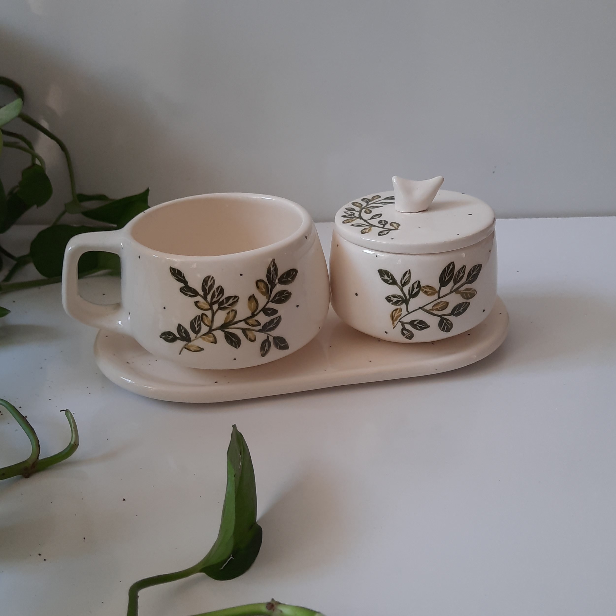 ظروف سرامیکی طرح برگ سبز یکنفره یک گزینه عالی برای هدیه یا گذاشتن برای میز کارتون و استفاده شخصی ضمانت سالم رسیدن کالا