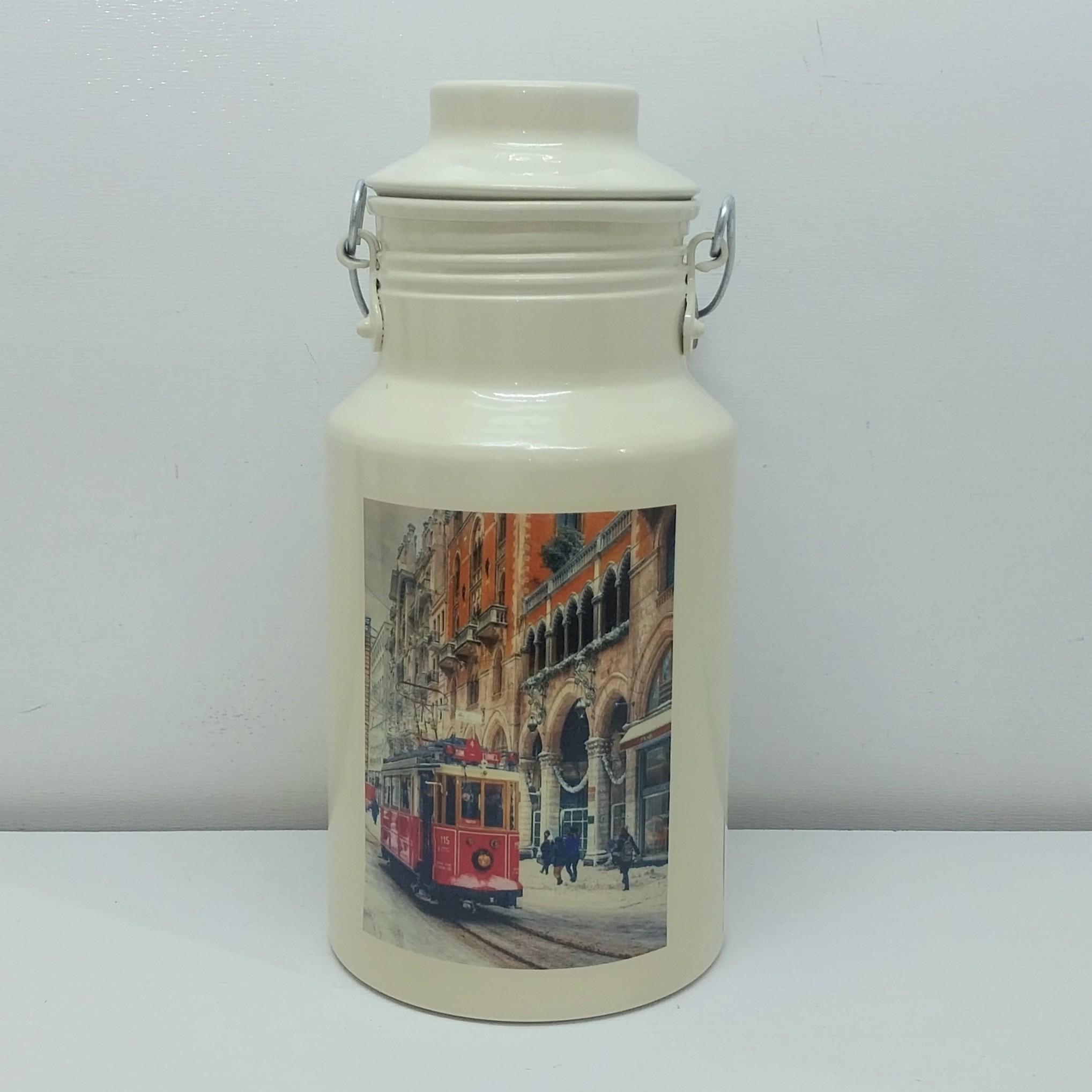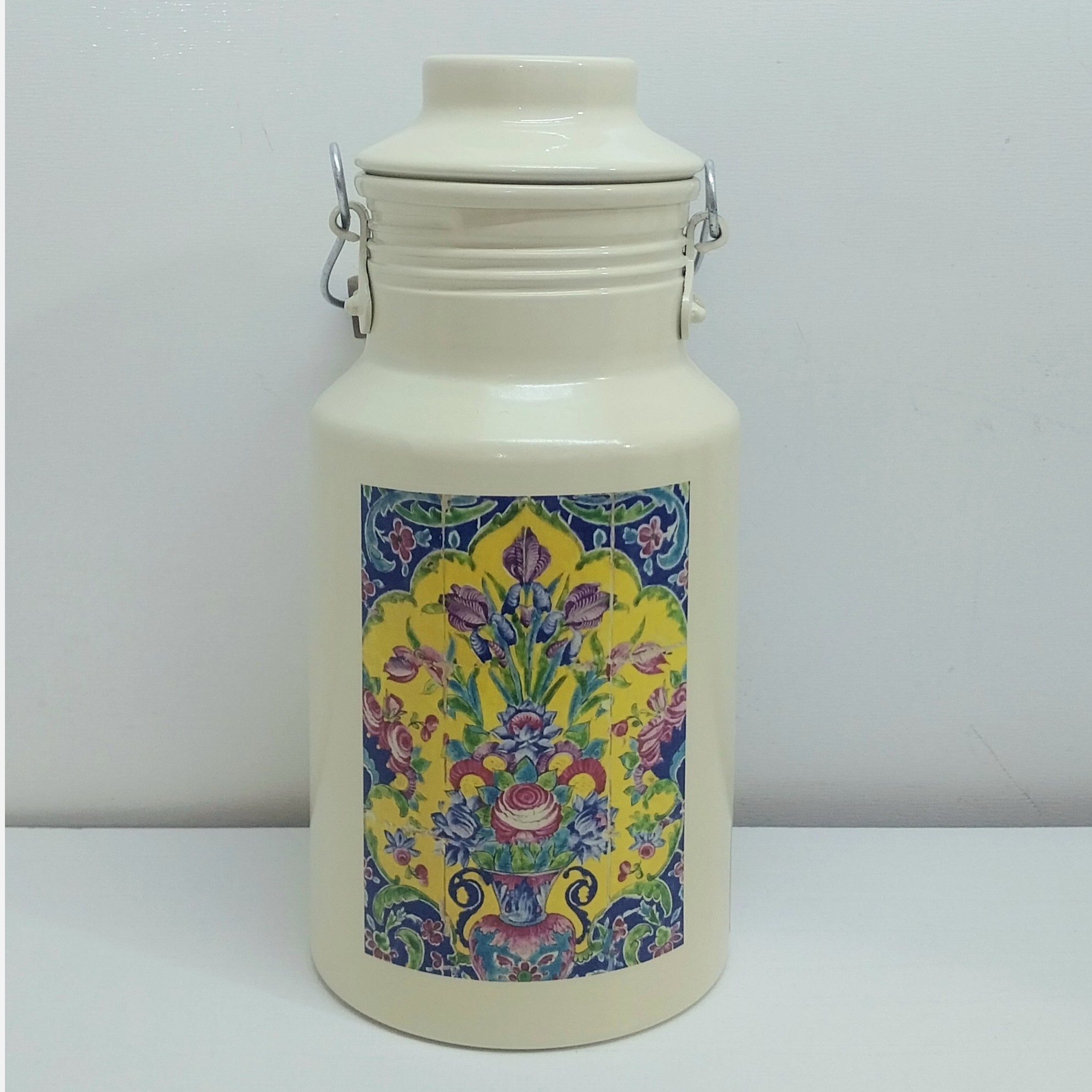 ظرف روغن 2 لیتری بانکه سطل شیر دبه روغن روحی با رنگ کوره کرم رنگ و دسته چوبی یکتا بوش مدل A020 مبلمونسرا مدل 291838