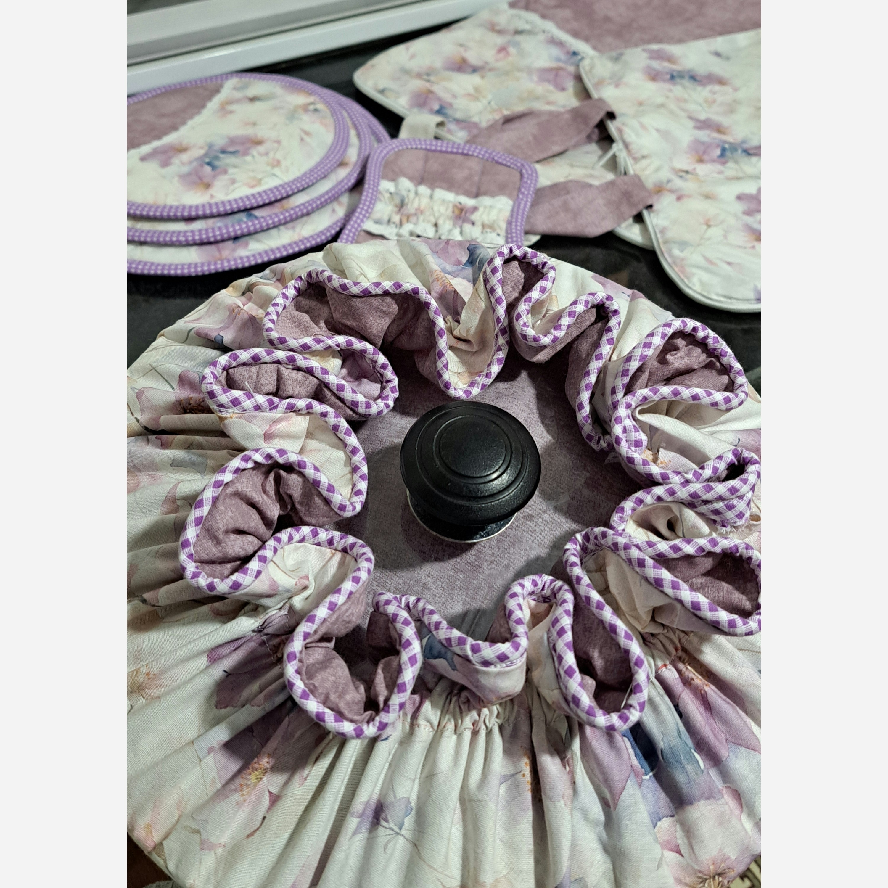 جنسش کتان نخ هست، رنگش ثابتِ و پرز نمیده، هم میتونی تکی سفارش بدی هم سرویس کامل یا هر چند تکه ای که بخوای، حتی میتونی طرح و رنگ پارچه رو خودت انتخاب کنی، با اتمام موجودی پارچه افزایش قیمت خواهیم داشت چون مجبوریم با قیمت بالاتر پارچه تهیه کنیم پس زودتر سفارشتو ثبت کن🫡 شامل: دو عدد باکس نان سفره پاک کن سه عدد دمکنی حلالی یک عدد دمکنی دورچین، قابل استفاده برای چندسایز درب قابلمه
