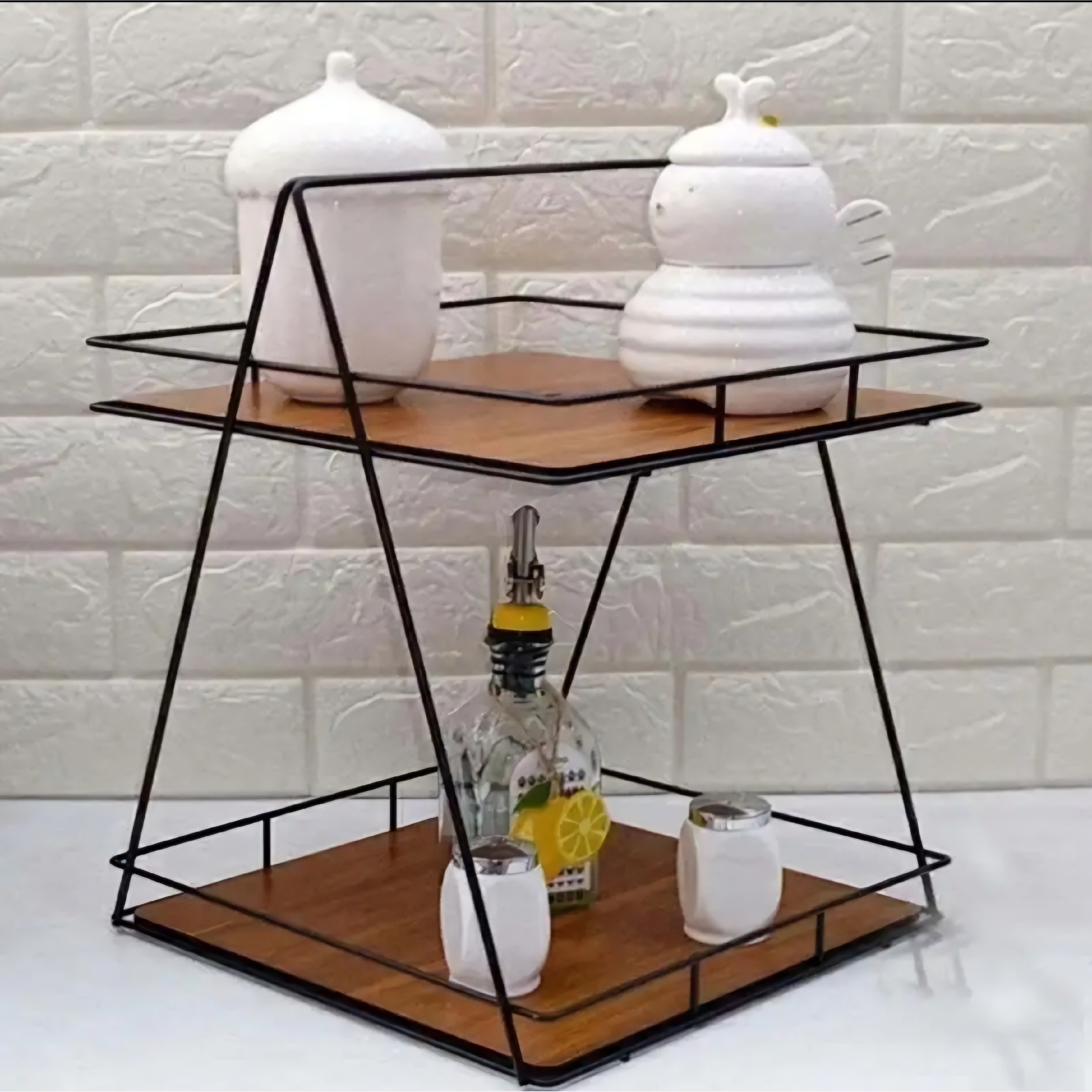 🟡استند دو طبقه فلزی مدل m1 🟡مناسب برای استفاده در اشپزخانه و لوازم آرایشی 🟡ابعاد: 25*25*30 سانتیمتر 🟡رنگبندی : مشکی