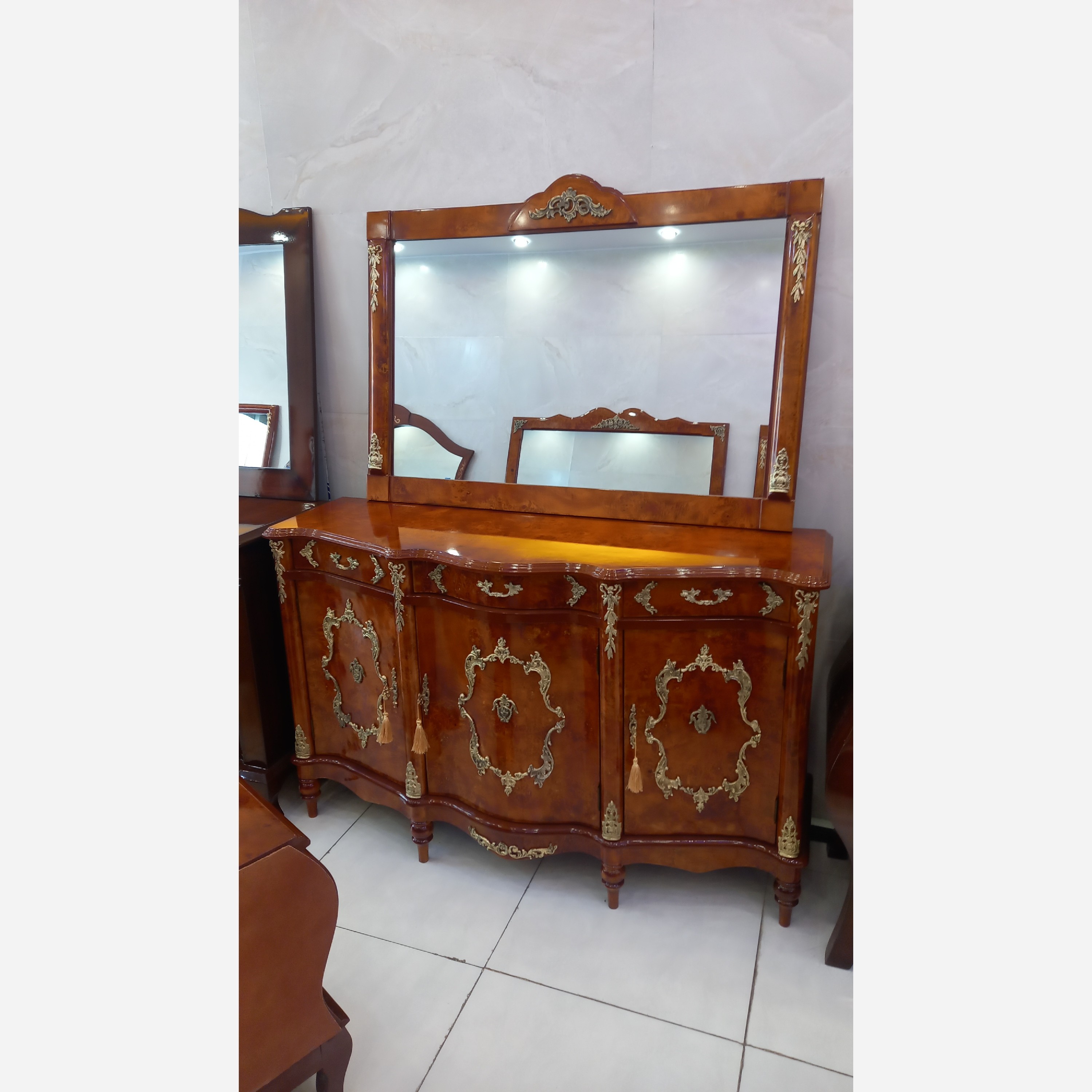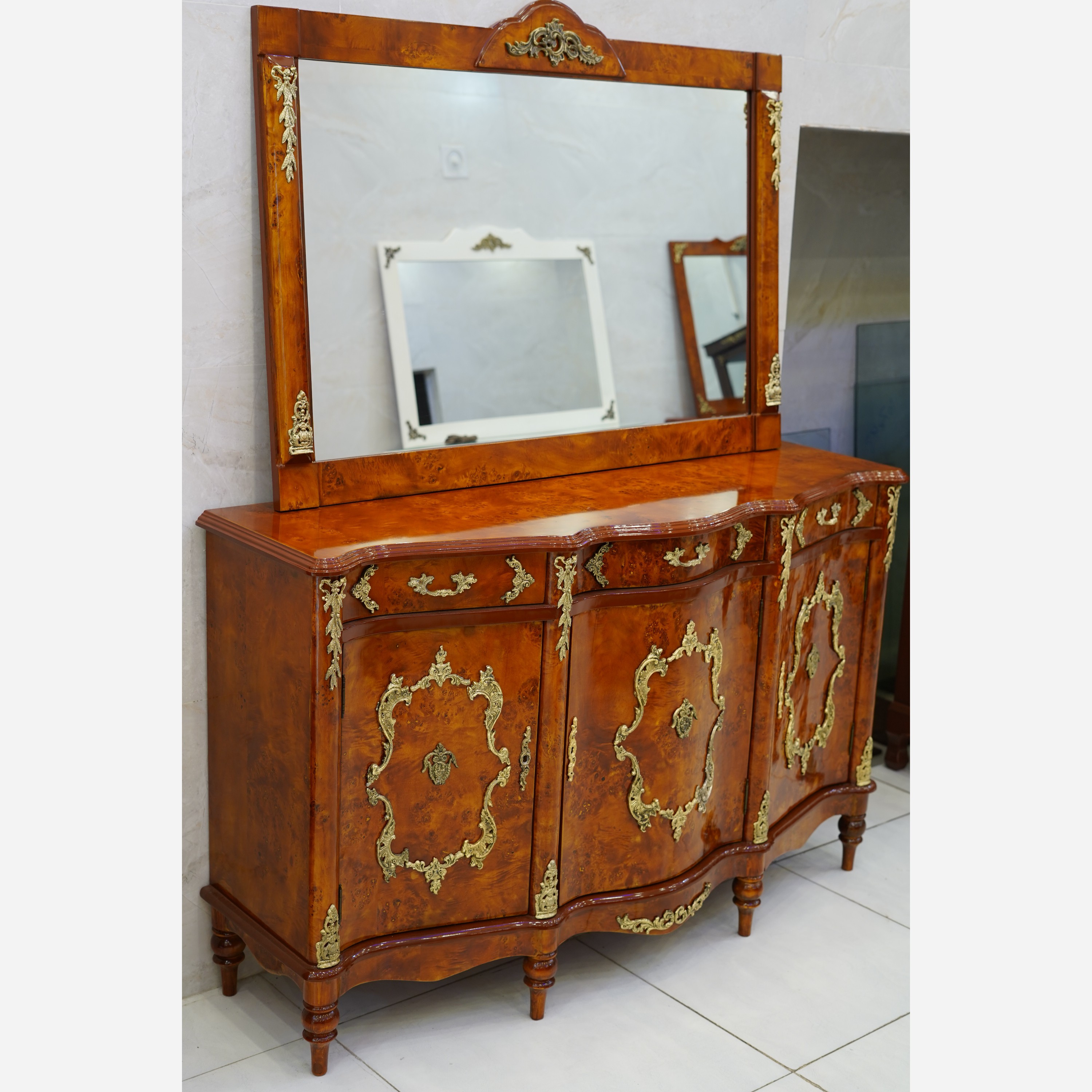 آینه کنسول معرق کد A19 تهیه شده از بهترین متریال چوب و رنگ معرق ها تماما کار دست بوده و با رنگ پلیش زیبایی کار چندین برابر شده است قابل سفارش در ابعاد مختلف و رنگ های مات،نیم مات،براق طول کار 150 ارتفاع با آینه 180 و عمق کار 50 میباشد این محصول داری 3درب و 3کشو میباشد کف تمام کشو و طبقه ها از پارچه مخمل استفاده شده است این کار با 3 آینه مختلف قابل عرضه میباشد ارسال به سراسر کشور با بسته بندی و باربری مطمئن امکان خرید اقساطی با چک صیادی امکان بازدید از تمامی مراحل ساخت تنوع بیش از 300 محصول تعمیرات پذیرفته میشود ضمنا کرایه حمل به عهده خریدار میباشد