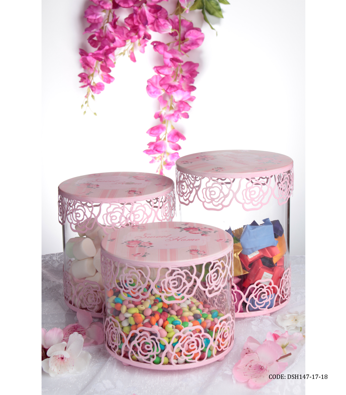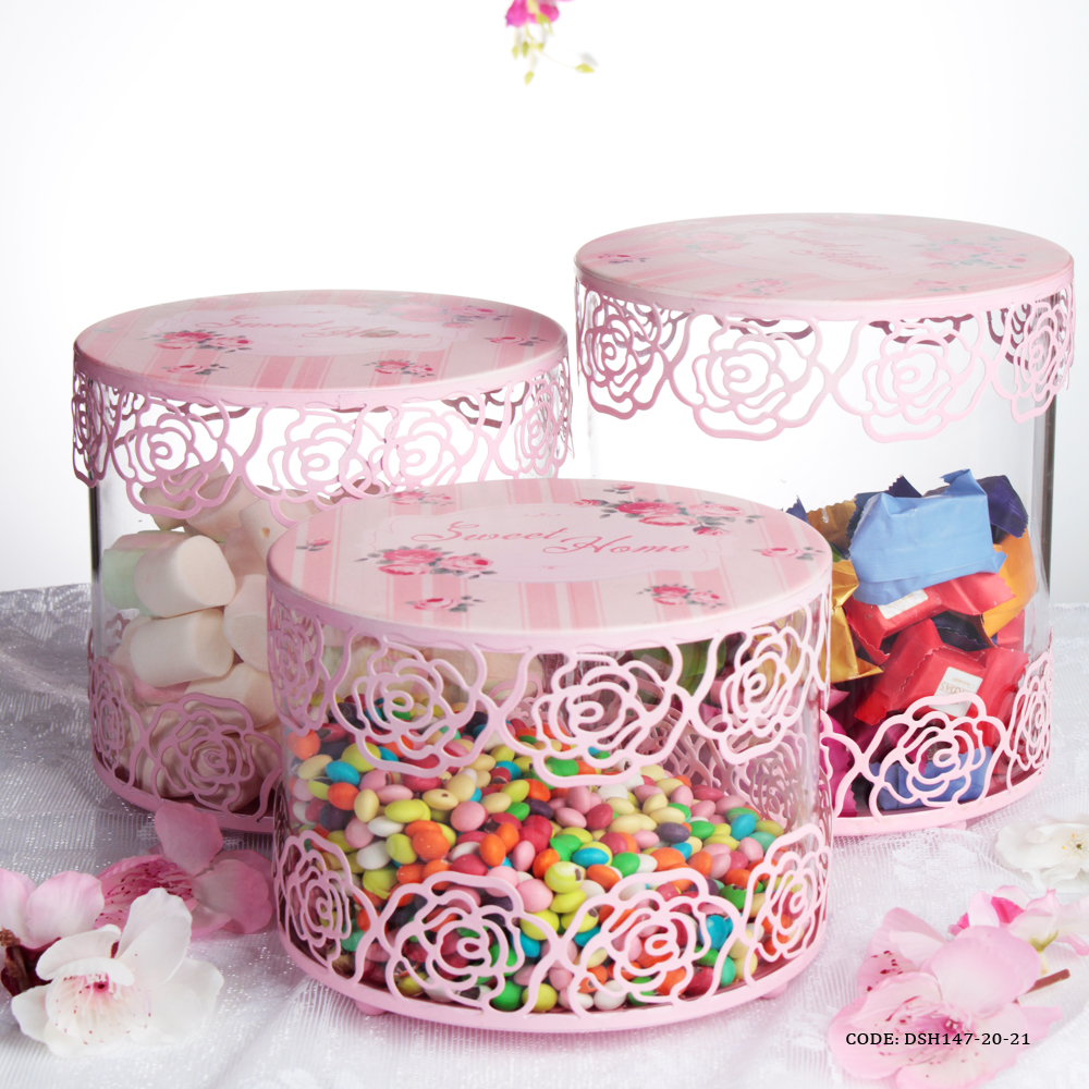 ست کندی باکس در قلبی سه عدد باهم دارای حباب شیشه ای درپوش فلزی رنگ صورتی در سه سایز مختلف ظرف مخصوص برای شکلات های رنگی و انواع خوراکی محصول وارداتی قابل استفاده برای قند و چایی ابعاد مدل کوچک : قطر 14.5 سانتی متر ارتفاع 13 سانتی متر ابعاد مدل متوسط : قطر 14.5 سانتی متر ارتفاع 16 سانتی متر ابعاد مدل بزرگ : ارتفاع 19.5 سانتی متر قطر 12 سانتی متر جنس : فلزی جنس پایه : فلزی درپوش : دارد جنس درب : فلزی حباب : دارد دسته : ندارد رنگ : صورتی شکل : استوانه نحوه نگهداری : شستشو با دست سایز : بزرگ, سه سایز, کوچک, متوسط