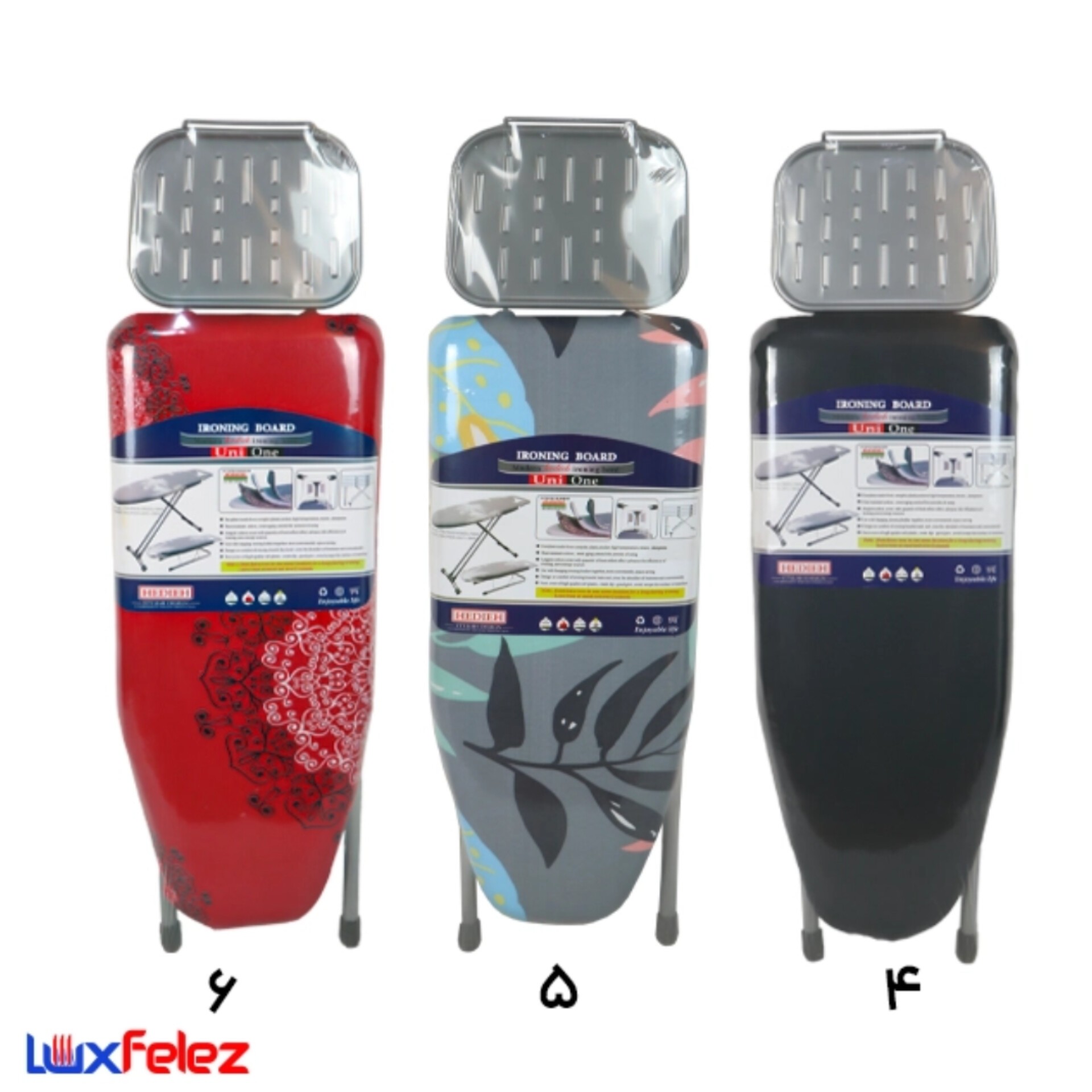 طول:75سانتیمتر عرض:31سانتیمتر ارتفاع:20سانتیمتر قابلیت جابه جایی دارد و فضای کمی را اشغال می کند و به راحتی تا می شود که می توانید آن را پشت در یا پشت کمد قرار دهید و چون که پایه های کوتاهی دارد می توانید به صورت نشسته لباس های خود را اتو کنید توضیحات : پارچه با رنگ ثابت, پایه ترمز دار و محافظ دار, دارای روکش محافظ پلاستیکی برای پایه, لایی ابر فشرده شده