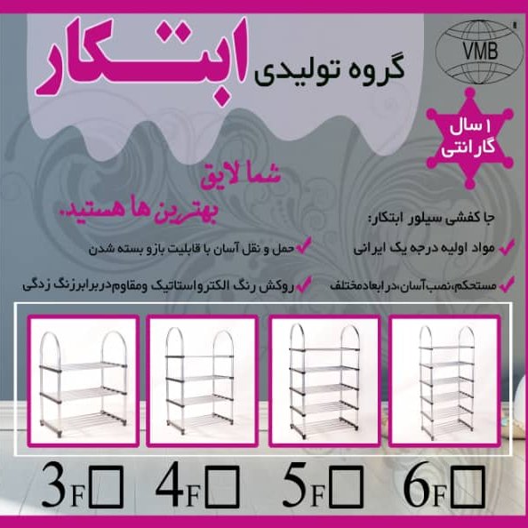 جاکفشی طرح سیلور ابتکار با اسکلت فلزی روکش رنگ الکترواستاتیک مستحکم سه طبقه تاشش طبقه