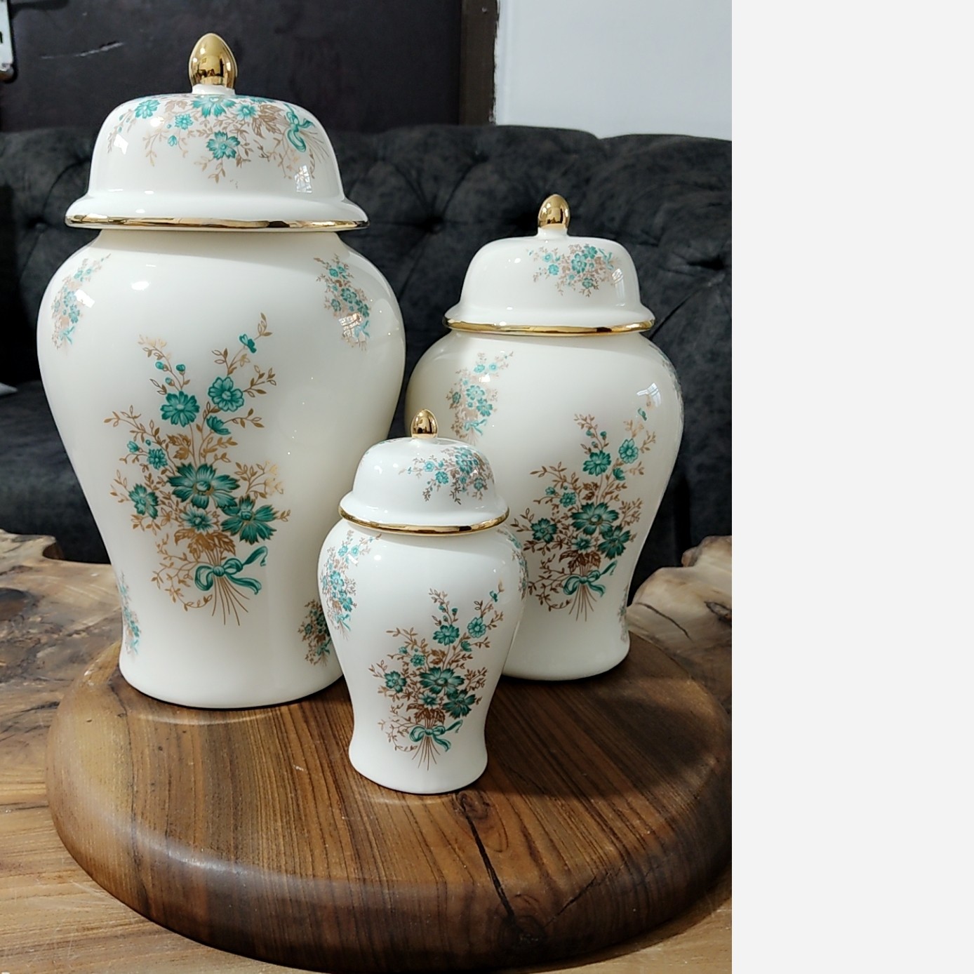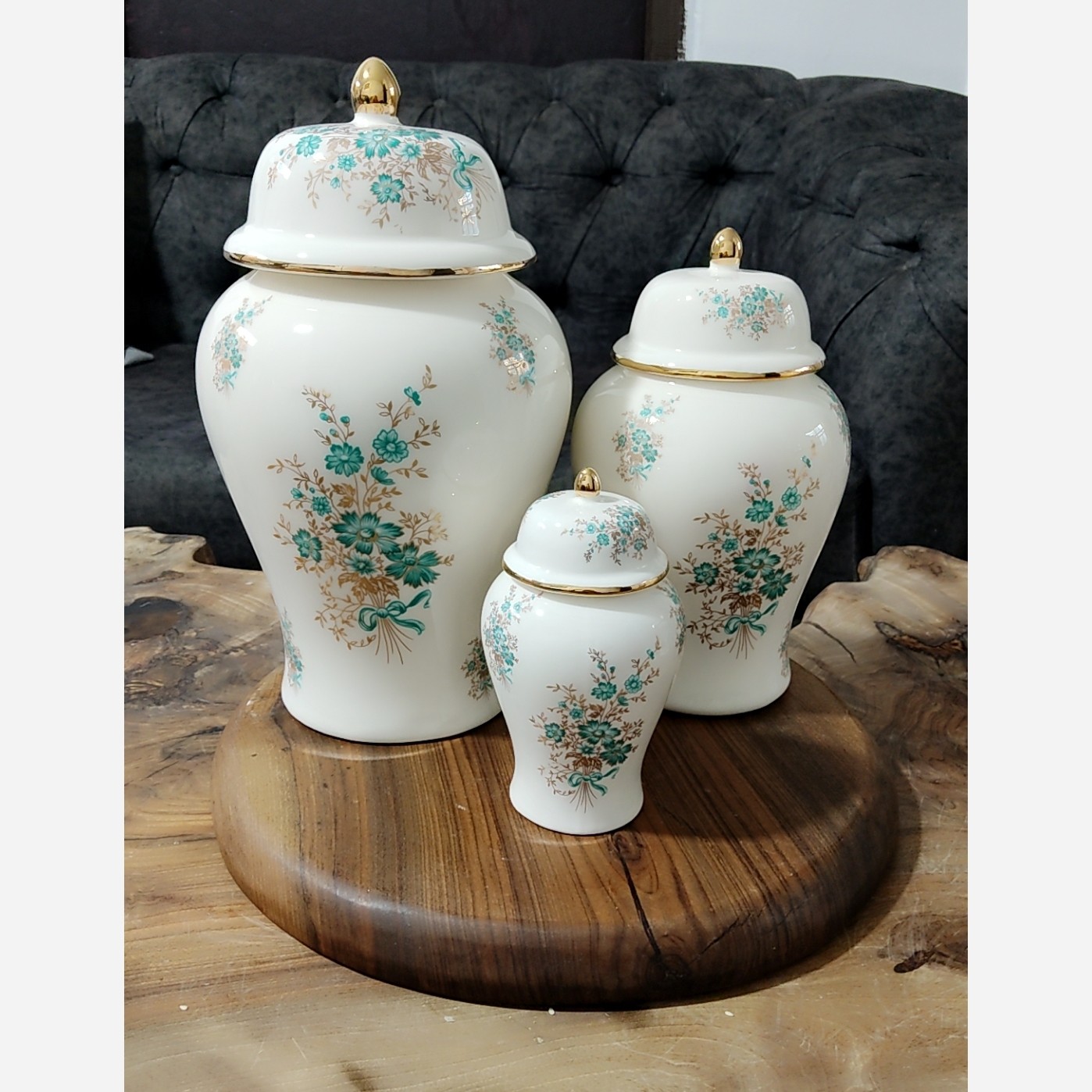 ،اباژور سرامیکی،ست جینجرجارسرامیکی گل سبز طلا دار،ست جینجرجار سرامیکی شاخه طلا مبلمونسرا مدل 274524