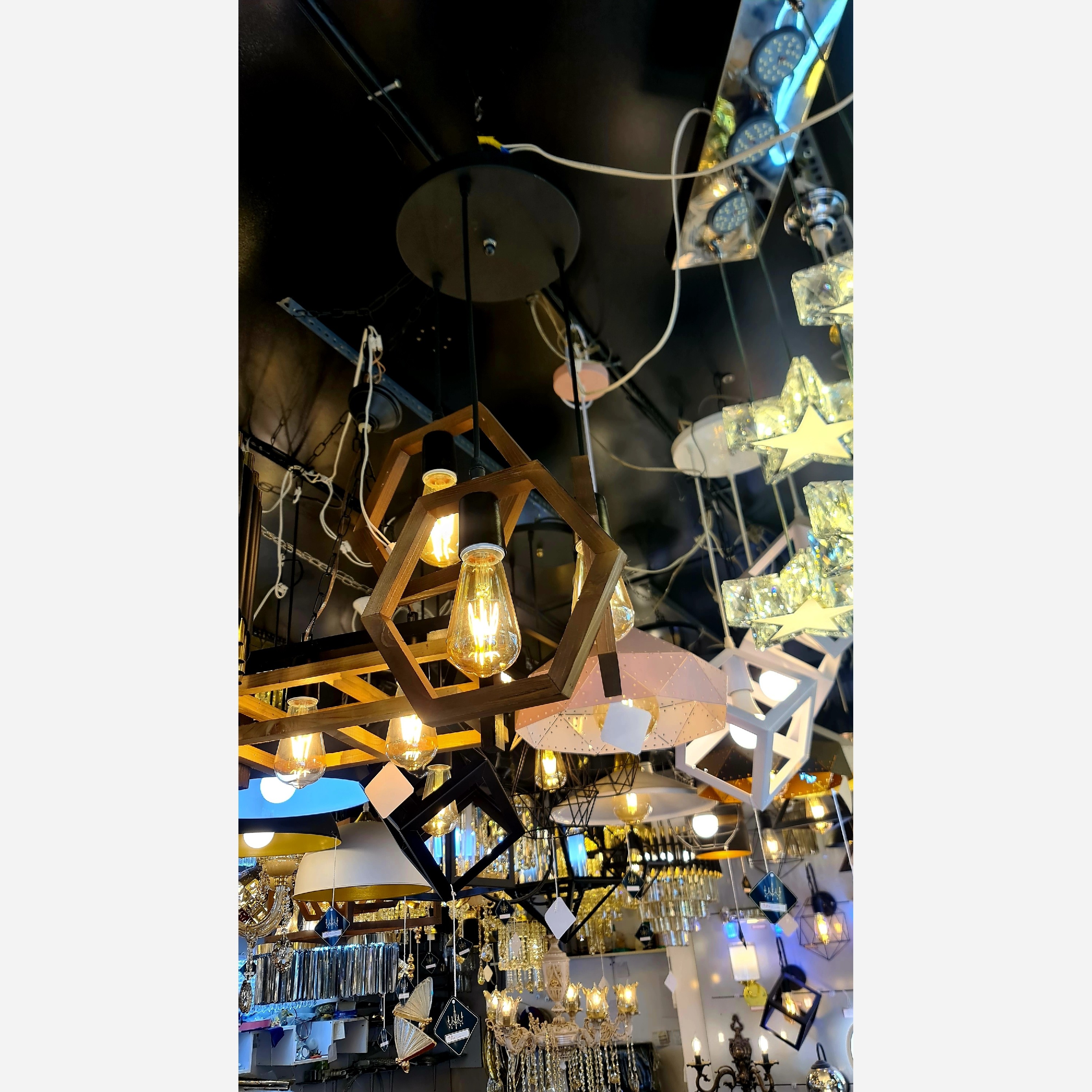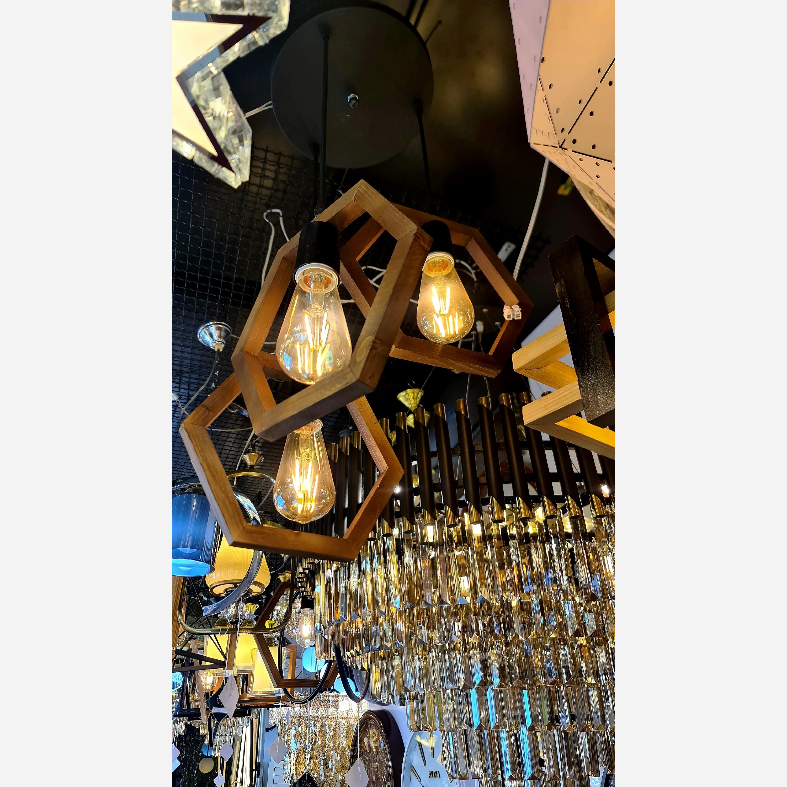 لوستر سه شعله چوبی شش ضلعی مبلمونسرا مدل 244340