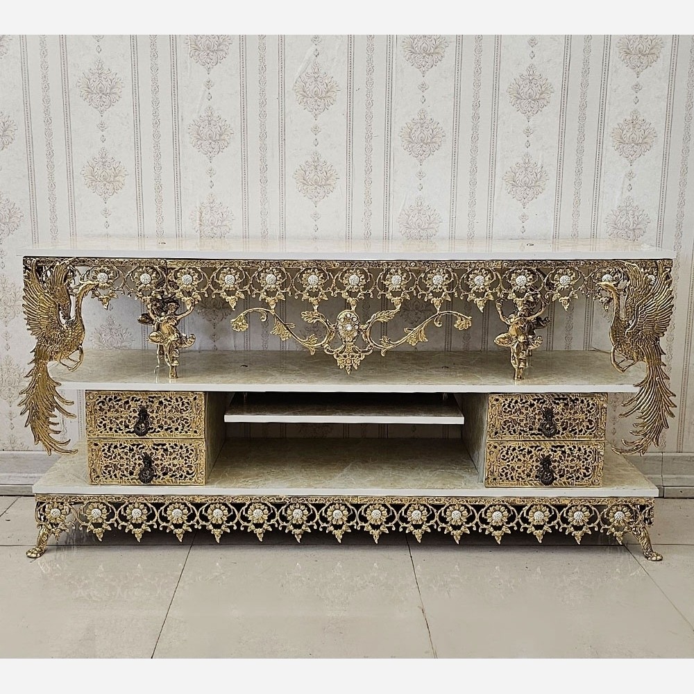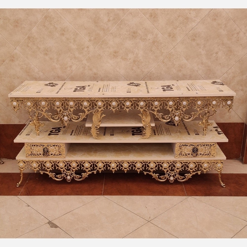 میز السیدی میز ال سی دی برنز میز تلوزیون برنزی تلویزیون برنز طاووس سیمرغ مبلمونسرا مدل 222022