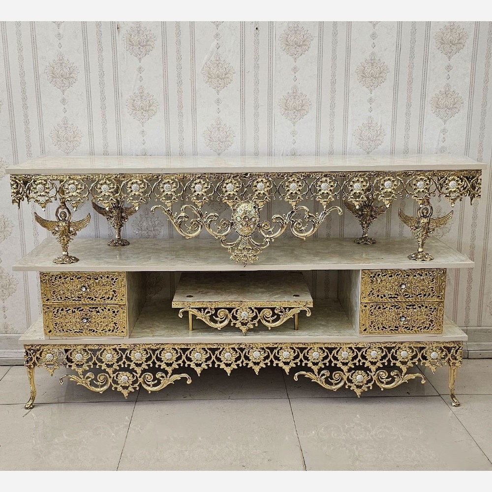 میز تیوی میز ال سی دی برنز میز السیدی برنزی میز تلویزیون برنز مبلمونسرا مدل 218701