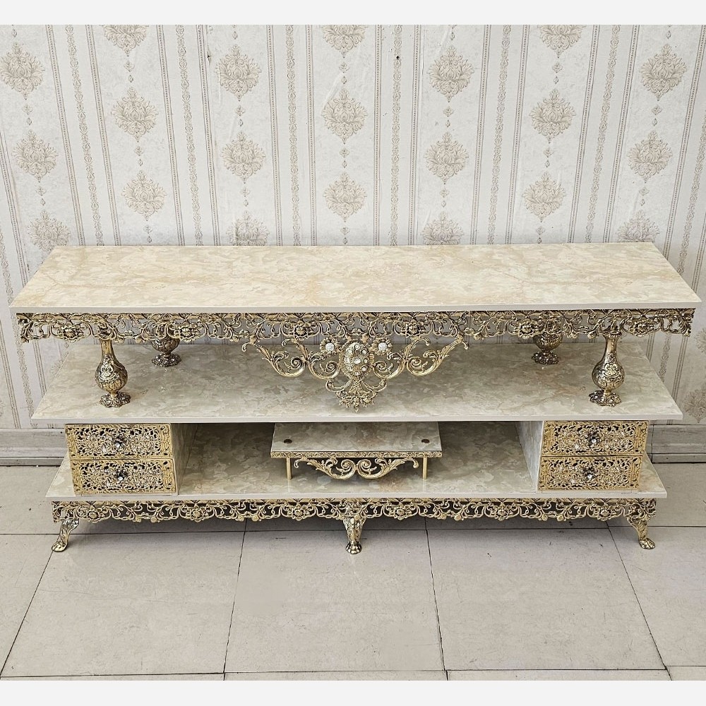 از آنجایی تلویزیون جزو نقاط کانونی در دکوراسیون منازل به حساب می آید، توجه به میز تلویزیون از اهمیت بالایی برخوردار است. استحکام و زیبایی میز تلویزیون از اهمیت بالایی در انتخاب یک میز تلویزیون مناسب برخوردار است. فروشگاه لوکس برنز عرضه کننده انواع میز تلویزیون برنزی می باشد. تنوع در میز تلویزیون برنز بسیار بالا می باشد و در فروشگاه لوکس برنز نیز بیش از 100 مدل میز تلویزیون در اندازه و اشکال مختلف وجود دارد. بی شک چنین تنوع بی نظیری در هیچ فروشگاهی وجود ندارد. علاوه بر تنوع موجود در فروشگاه لوکس برنز ، شما می توانید محصول سفارشی شده و باب میل خود را نیز سفارش دهید و در کمترین زمان ممکن آن را دریافت نمایید. چهارچوب محکم میز تلویزیون های عرضه شده از جمله مزایای میز تلویزیون های برنزی فروشگاه می باشد. استفاده از صفحات هایگلاس درجه 1 و با رنگ بندی های متنوع از جمله مزایای میز تلویزیون های لوکس برنز می باشد. طول میز تلویزیون ها نیز از 120 سانتی متر تا 2 متر قابل سفارش و تولید می باشند. گل های مختلفی برای ساخت میز تلویزیون استفاده می شود که بیش از 7 مدل تنوع گل وجود دارد. در تمام مدل ها سیمرغ یا طاووس حذف و با گذاشته میشود .ستون های میز تلویزیون نیز قابل تغییر و سفارشی سازی می باشد. تاج نیز به زیبایی میز تلویزیون اضافه می نماید. اما با این وجود عده ای میز تلویزیون را به صورت ساده می پسندند که امری سلیقه ای است. تعداد کشو نیز از موارد قابل تغییر می باشد. اگر به دنبال میز تلویزیون برنزی با ارتفاع بلند هستید می توانید از مدل های 4 کشو استفاده نمایید. کشوهای بیشتر مطمئناً فضای بیشتری برای قرار دادن لوازم خواهد داشت. از آنجایی که از گل های میز تلویزیون برنزی در ساخت سایر وسایل برنزی مانند آینه و شمعدان، بوفه، ساعت ایستاده و … استفاده می شود. شما به راحتی می توانید میز تلویزیون برنزی خود را با بوفه، آینه شمعدان، ساعت ایستاده، تابلو فرش، جلو مبلی و عسلی، میز تلفن، جا کفشی و … ست کرد. شما با ست کردن وسایل با یکدیگر باعث هماهنگی بیشتر وسایل دکوراسیون با یکدیگر می شود. کلیه میز تلویزیون های برنزی فروشگاه لوکس برنز با ضمانت اصالت محصول عرضه می گردند. از این رو خیال شما از بابت تهیه محصول اصل راحت خواهد بود. ارسال سفارشات نیز ، در شهر تهران با اسنپ ،وانت ،پیک انجام می شود. ارسال به شهرستان ها نیز توسط باربری و قطار و اتوبوس با هزینه جزئی امکان پذیر می باشد. کلیه محصولات دارای ضمانت سلامت ارسال نیز می باشد. یعنی اگر در حین جا به جایی مشکلی برای محصول پیش بیاید و محصول معیوب به دست مشتری برسد، فروشگاه لوکس برنز مسئول جبران خسارت و رفع عیب می باشد. توجه داشته باشید.وزن کارها حدودی درج شده در صورت نیاز به مشاوره رایگان و دریافت راهنمایی های بیشتر می توانید با شماره تلفن 09125538357 تماس حاصل فرمایید.