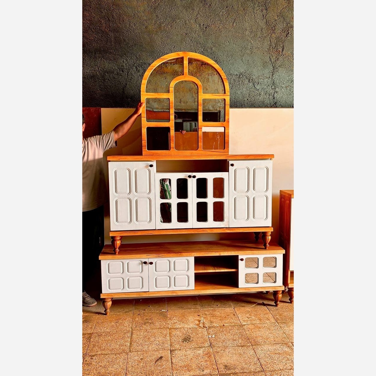 ✅️کنسول چوبی طرح کلاسیک طرح پنجره ای ✅️در طرح و رنگ متنوع با سلیقه مشتری ✅️ابعاد قابل تغیر هست کوچک با بزرگتر کرد ✅️محصولات با جنس ام دی اف روکش وکیومهست