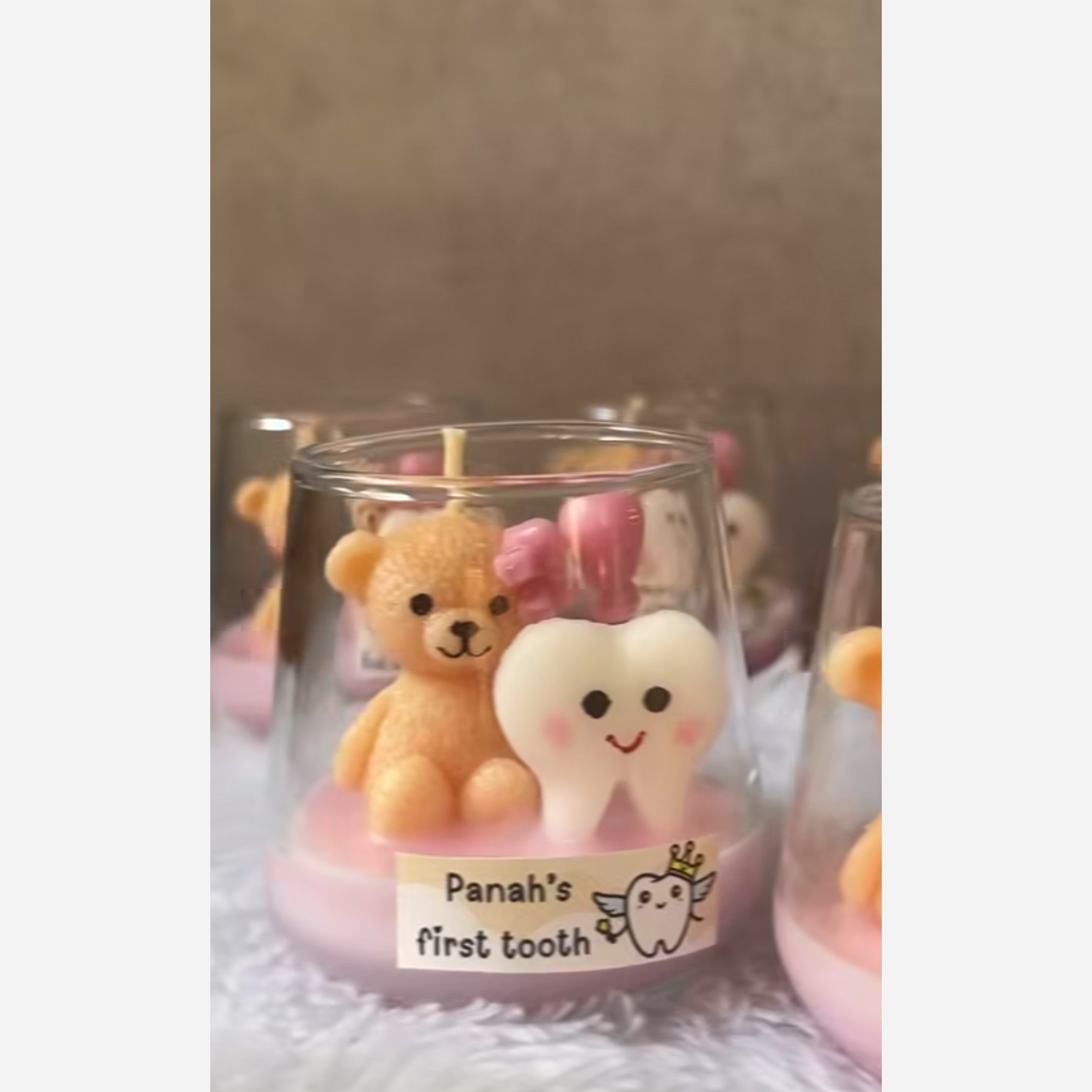 گیفت شمع دندونی ،تدی با شات شیشه ای دخترونه و پسرونه قابلیت اجرای پاپیون ریز روی سر تدی ودندان با تگ نام دلبندتان