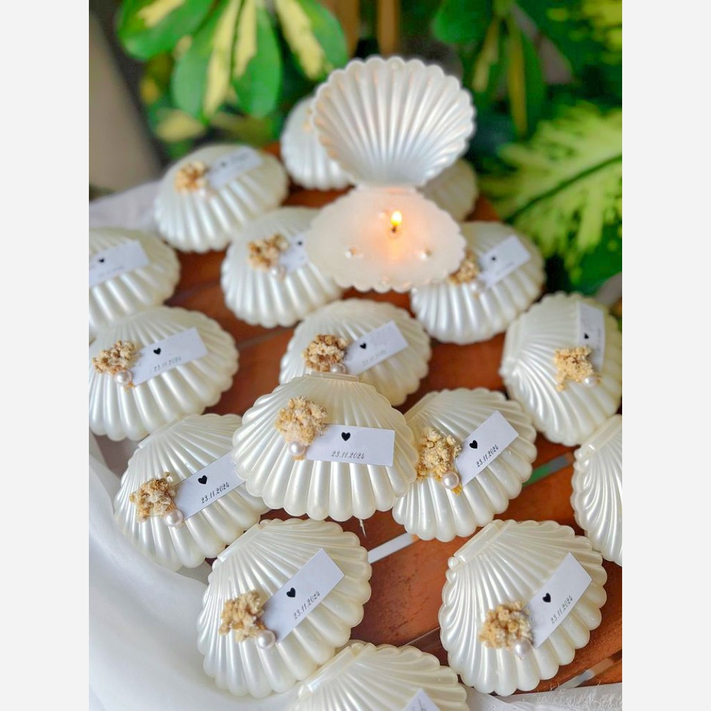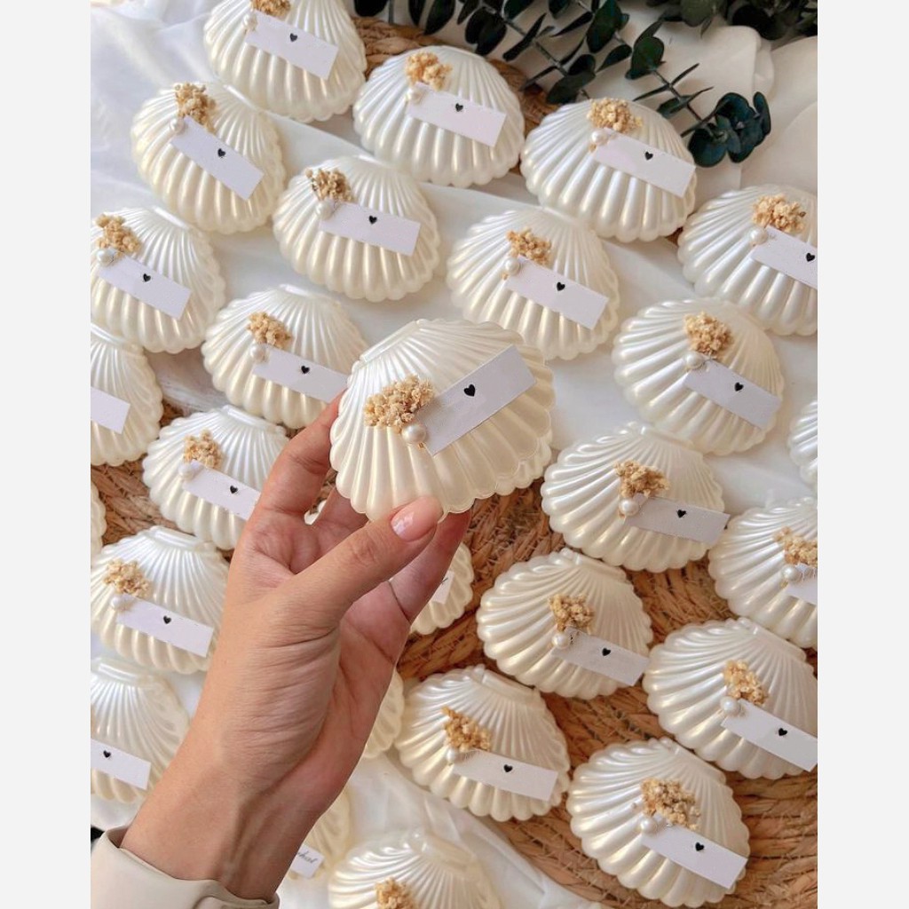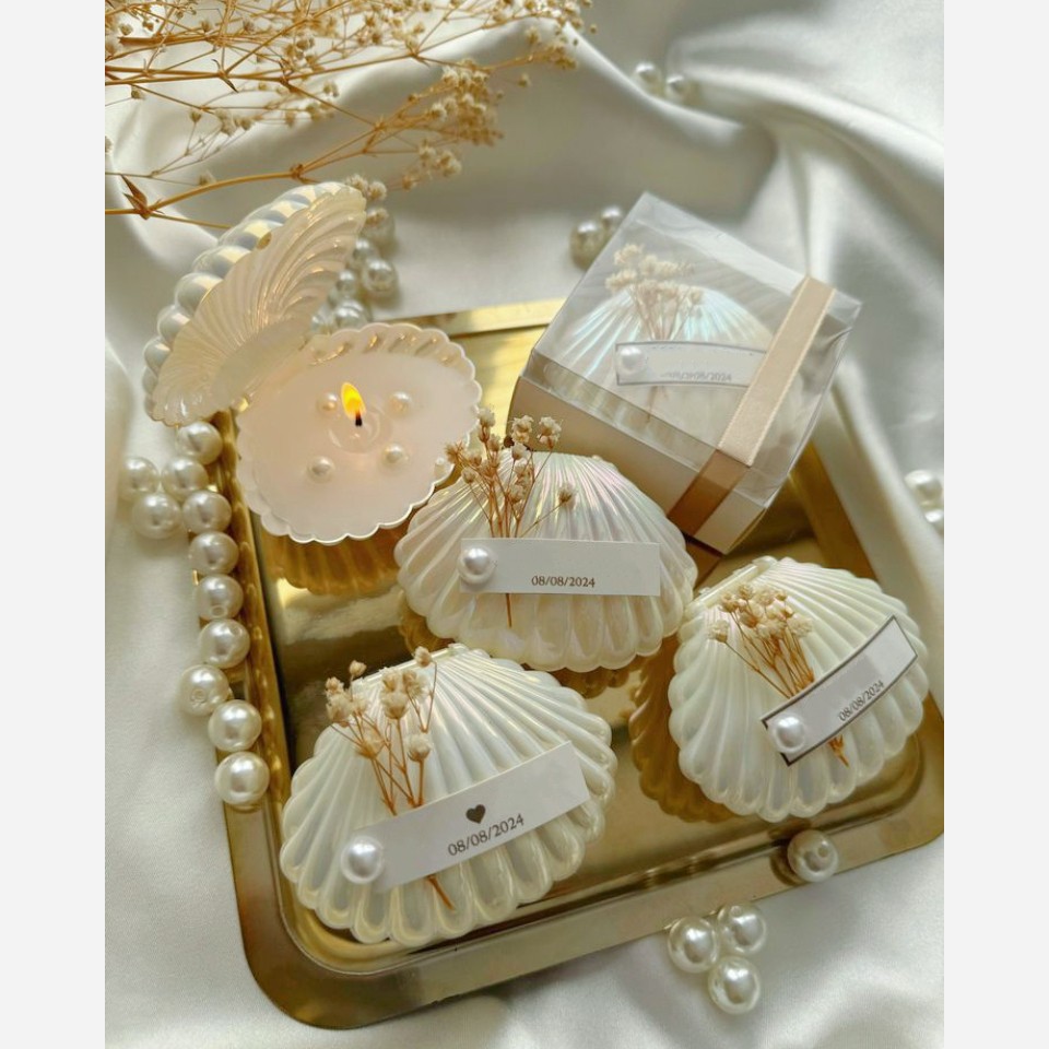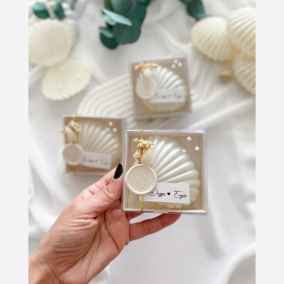 گیفت شمع نامزدی ،عروسی،جشنهای شما گیفت شمع صدف با مروارید بسته بندی شیک با جعبه سفید و درب طلقی وربان که داخل تصویر مشخصه بسیار شیک وخاص🥰 با تگ نام