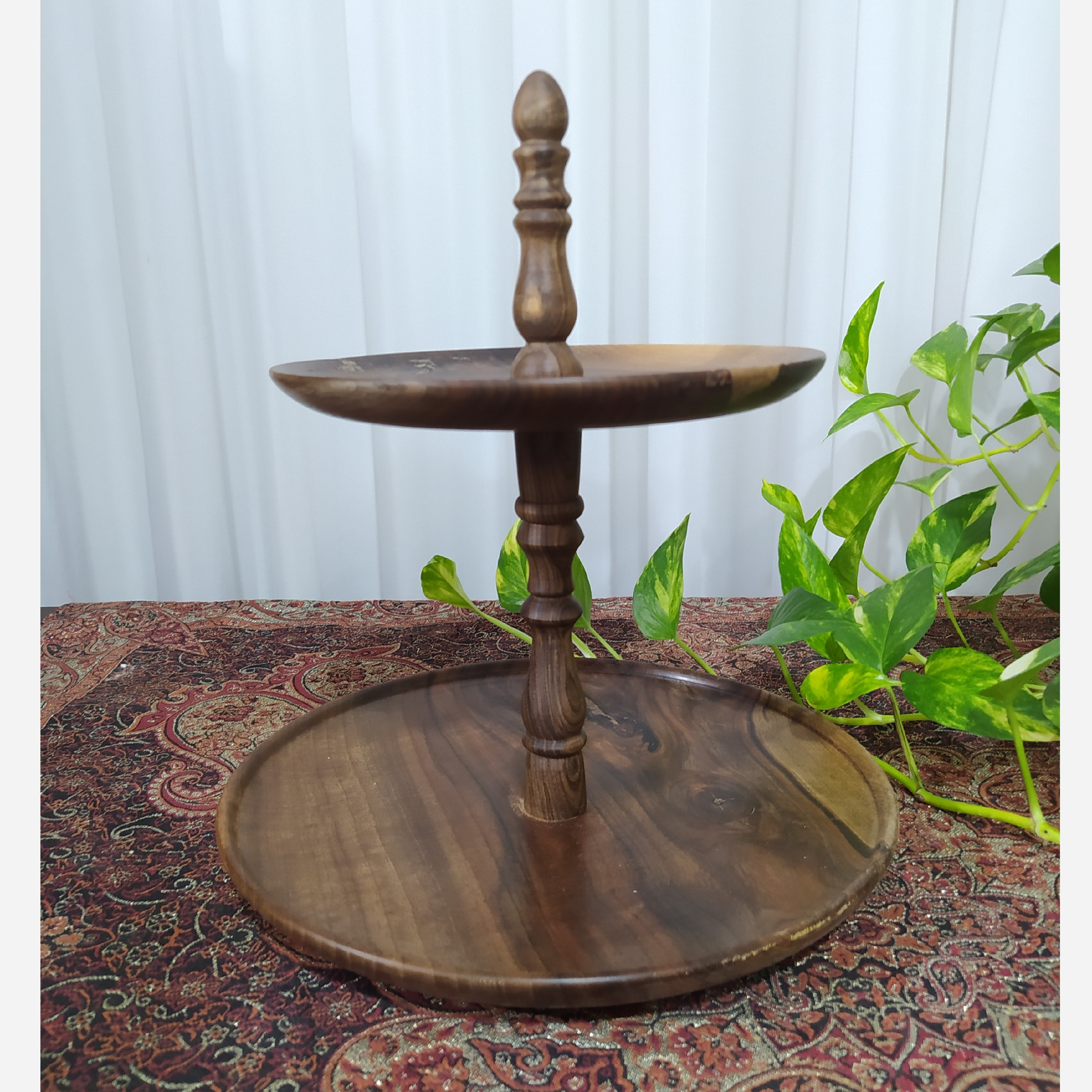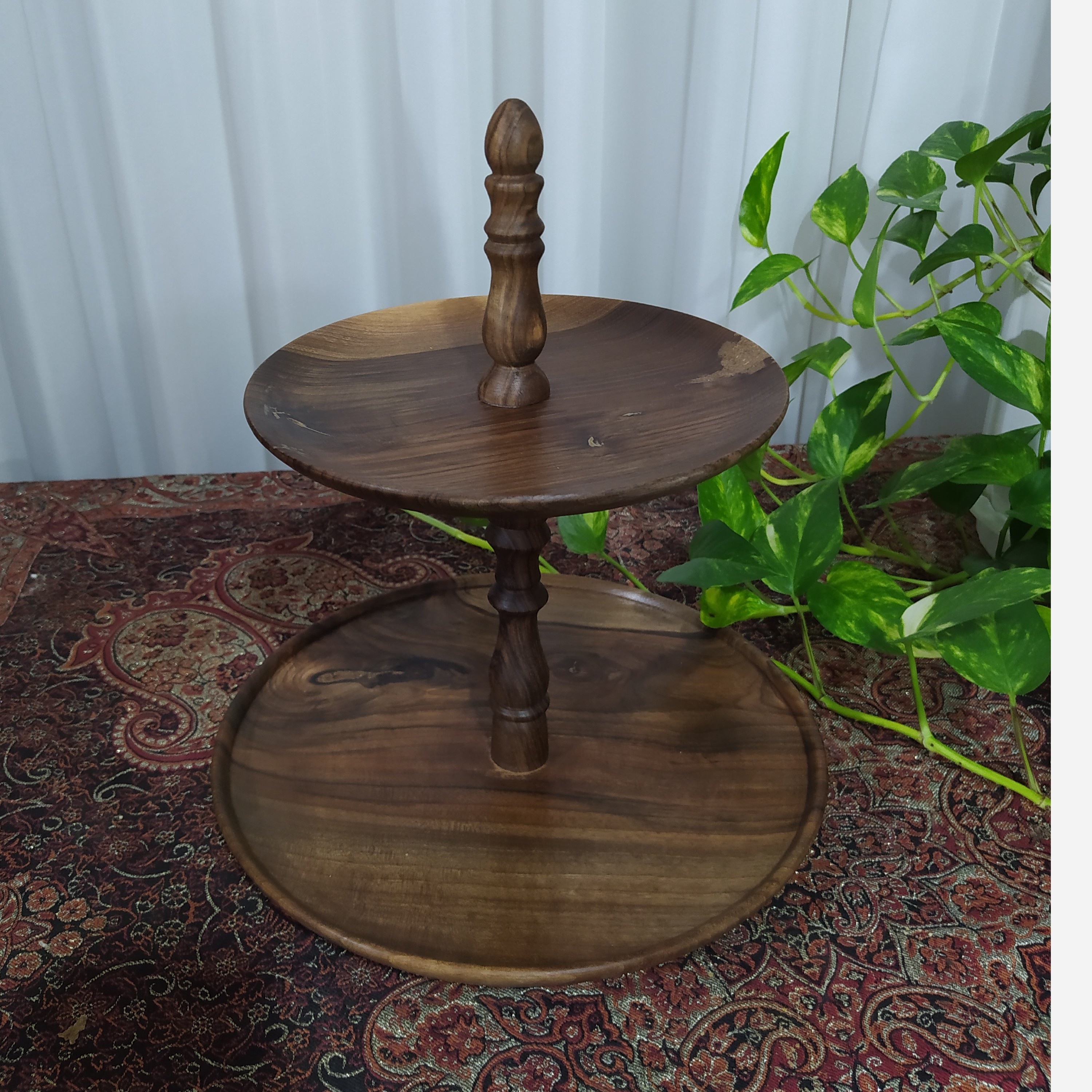 شیرینی خوری دوطبقه چوب گردو که به عنوان میوه خوری هم میشه استفاده کرد قطر 21و 28 سانت و ارتفاع 30 قابل شستشو با دست