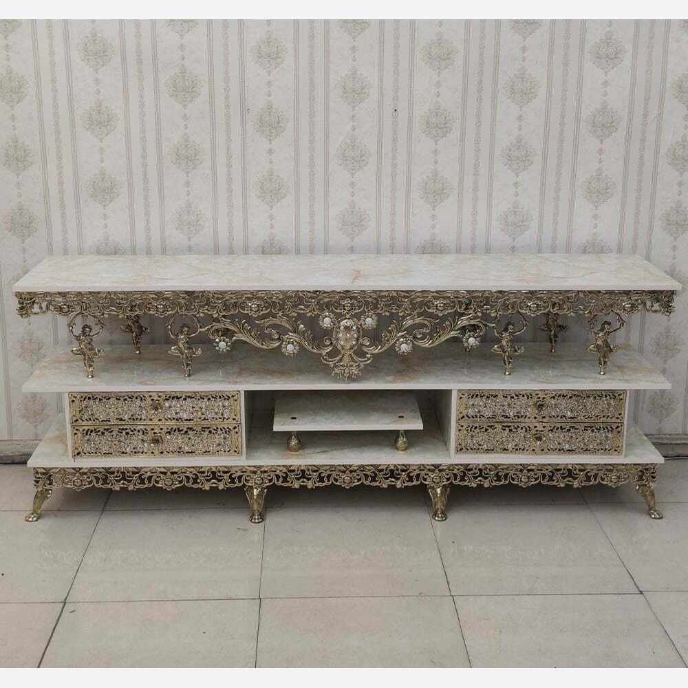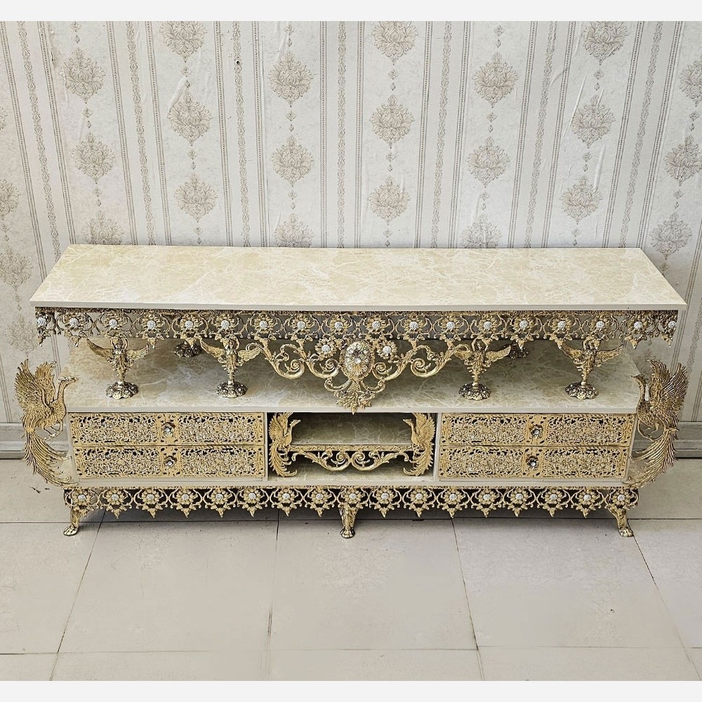 از آنجایی تلویزیون جزو نقاط کانونی در دکوراسیون منازل به حساب می آید، توجه به میز تلویزیون از اهمیت بالایی برخوردار است. استحکام و زیبایی میز تلویزیون از اهمیت بالایی در انتخاب یک میز تلویزیون مناسب برخوردار است. فروشگاه لوکس برنز عرضه کننده انواع میز تلویزیون برنزی می باشد. تنوع در میز تلویزیون برنز بسیار بالا می باشد و در فروشگاه لوکس برنز نیز بیش از 100 مدل میز تلویزیون در اندازه و اشکال مختلف وجود دارد. بی شک چنین تنوع بی نظیری در هیچ فروشگاهی وجود ندارد. علاوه بر تنوع موجود در فروشگاه لوکس برنز ، شما می توانید محصول سفارشی شده و باب میل خود را نیز سفارش دهید و در کمترین زمان ممکن آن را دریافت نمایید. چهارچوب محکم میز تلویزیون های عرضه شده از جمله مزایای میز تلویزیون های برنزی فروشگاه می باشد. استفاده از صفحات هایگلاس درجه 1 و با رنگ بندی های متنوع از جمله مزایای میز تلویزیون های لوکس برنز می باشد. طول میز تلویزیون ها نیز از 120 سانتی متر تا 2 متر قابل سفارش و تولید می باشند. گل های مختلفی برای ساخت میز تلویزیون استفاده می شود که بیش از 7 مدل تنوع گل وجود دارد. در تمام مدل ها سیمرغ یا طاووس حذف و با گذاشته میشود .ستون های میز تلویزیون نیز قابل تغییر و سفارشی سازی می باشد. تاج نیز به زیبایی میز تلویزیون اضافه می نماید. اما با این وجود عده ای میز تلویزیون را به صورت ساده می پسندند که امری سلیقه ای است. تعداد کشو نیز از موارد قابل تغییر می باشد. اگر به دنبال میز تلویزیون برنزی با ارتفاع بلند هستید می توانید از مدل های 4 کشو استفاده نمایید. کشوهای بیشتر مطمئناً فضای بیشتری برای قرار دادن لوازم خواهد داشت. از آنجایی که از گل های میز تلویزیون برنزی در ساخت سایر وسایل برنزی مانند آینه و شمعدان، بوفه، ساعت ایستاده و … استفاده می شود. شما به راحتی می توانید میز تلویزیون برنزی خود را با بوفه، آینه شمعدان، ساعت ایستاده، تابلو فرش، جلو مبلی و عسلی، میز تلفن، جا کفشی و … ست کرد. شما با ست کردن وسایل با یکدیگر باعث هماهنگی بیشتر وسایل دکوراسیون با یکدیگر می شود. کلیه میز تلویزیون های برنزی فروشگاه لوکس برنز با ضمانت اصالت محصول عرضه می گردند. از این رو خیال شما از بابت تهیه محصول اصل راحت خواهد بود. ارسال سفارشات نیز ، در شهر تهران با اسنپ ،وانت ،پیک انجام می شود. ارسال به شهرستان ها نیز توسط باربری و قطار و اتوبوس با هزینه جزئی امکان پذیر می باشد. کلیه محصولات دارای ضمانت سلامت ارسال نیز می باشد. یعنی اگر در حین جا به جایی مشکلی برای محصول پیش بیاید و محصول معیوب به دست مشتری برسد، فروشگاه لوکس برنز مسئول جبران خسارت و رفع عیب می باشد. توجه داشته باشید.وزن کارها حدودی درج شده در صورت نیاز به مشاوره رایگان و دریافت راهنمایی های بیشتر می توانید با شماره تلفن 09125538357 تماس حاصل فرمایید.