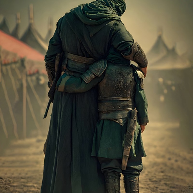 کتیبه آویزی تصویر حضرت قاسم در آغوش عمو کد 17908 سایز 100X70 مبلمونسرا مدل 260327