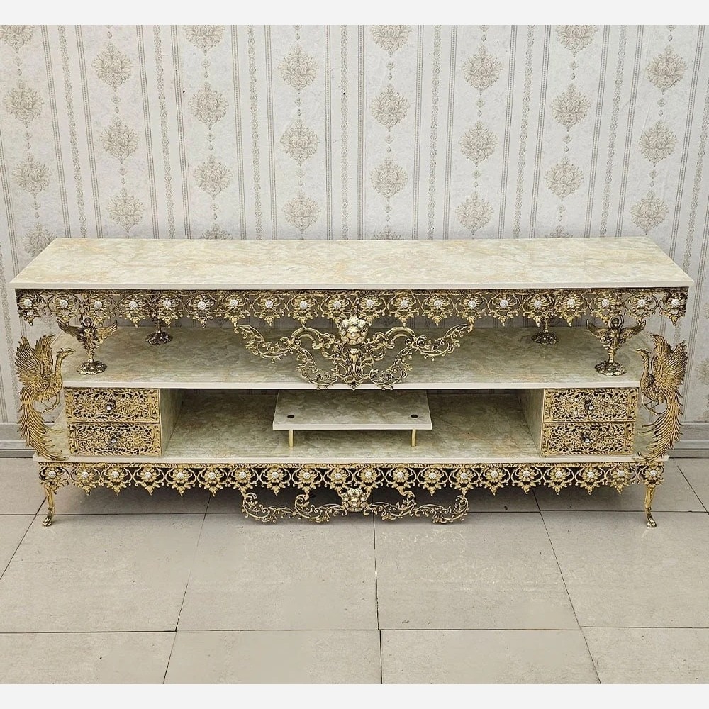 از آنجایی تلویزیون جزو نقاط کانونی در دکوراسیون منازل به حساب می آید، توجه به میز تلویزیون از اهمیت بالایی برخوردار است. استحکام و زیبایی میز تلویزیون از اهمیت بالایی در انتخاب یک میز تلویزیون مناسب برخوردار است. فروشگاه لوکس برنز عرضه کننده انواع میز تلویزیون برنزی می باشد. تنوع در میز تلویزیون برنز بسیار بالا می باشد و در فروشگاه لوکس برنز نیز بیش از 100 مدل میز تلویزیون در اندازه و اشکال مختلف وجود دارد. بی شک چنین تنوع بی نظیری در هیچ فروشگاهی وجود ندارد. علاوه بر تنوع موجود در فروشگاه لوکس برنز ، شما می توانید محصول سفارشی شده و باب میل خود را نیز سفارش دهید و در کمترین زمان ممکن آن را دریافت نمایید. چهارچوب محکم میز تلویزیون های عرضه شده از جمله مزایای میز تلویزیون های برنزی فروشگاه می باشد. استفاده از صفحات هایگلاس درجه 1 و با رنگ بندی های متنوع از جمله مزایای میز تلویزیون های لوکس برنز می باشد. طول میز تلویزیون ها نیز از 120 سانتی متر تا 2 متر قابل سفارش و تولید می باشند. گل های مختلفی برای ساخت میز تلویزیون استفاده می شود که بیش از 7 مدل تنوع گل وجود دارد. در تمام مدل ها سیمرغ یا طاووس حذف و با گذاشته میشود .ستون های میز تلویزیون نیز قابل تغییر و سفارشی سازی می باشد. تاج نیز به زیبایی میز تلویزیون اضافه می نماید. اما با این وجود عده ای میز تلویزیون را به صورت ساده می پسندند که امری سلیقه ای است. تعداد کشو نیز از موارد قابل تغییر می باشد. اگر به دنبال میز تلویزیون برنزی با ارتفاع بلند هستید می توانید از مدل های 4 کشو استفاده نمایید. کشوهای بیشتر مطمئناً فضای بیشتری برای قرار دادن لوازم خواهد داشت. از آنجایی که از گل های میز تلویزیون برنزی در ساخت سایر وسایل برنزی مانند آینه و شمعدان، بوفه، ساعت ایستاده و … استفاده می شود. شما به راحتی می توانید میز تلویزیون برنزی خود را با بوفه، آینه شمعدان، ساعت ایستاده، تابلو فرش، جلو مبلی و عسلی، میز تلفن، جا کفشی و … ست کرد. شما با ست کردن وسایل با یکدیگر باعث هماهنگی بیشتر وسایل دکوراسیون با یکدیگر می شود. کلیه میز تلویزیون های برنزی فروشگاه لوکس برنز با ضمانت اصالت محصول عرضه می گردند. از این رو خیال شما از بابت تهیه محصول اصل راحت خواهد بود. ارسال سفارشات نیز ، در شهر تهران با اسنپ ،وانت ،پیک انجام می شود. ارسال به شهرستان ها نیز توسط باربری و قطار و اتوبوس با هزینه جزئی امکان پذیر می باشد. کلیه محصولات دارای ضمانت سلامت ارسال نیز می باشد. یعنی اگر در حین جا به جایی مشکلی برای محصول پیش بیاید و محصول معیوب به دست مشتری برسد، فروشگاه لوکس برنز مسئول جبران خسارت و رفع عیب می باشد. توجه داشته باشید.وزن کارها حدودی درج شده در صورت نیاز به مشاوره رایگان و دریافت راهنمایی های بیشتر می توانید با شماره تلفن 09125538357 تماس حاصل فرمایید.