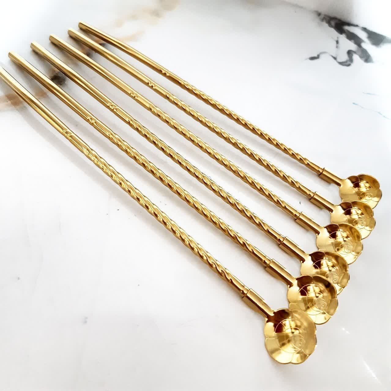 نی شربت خوری استیل و طلایی طرح گل مبلمونسرا مدل 278700