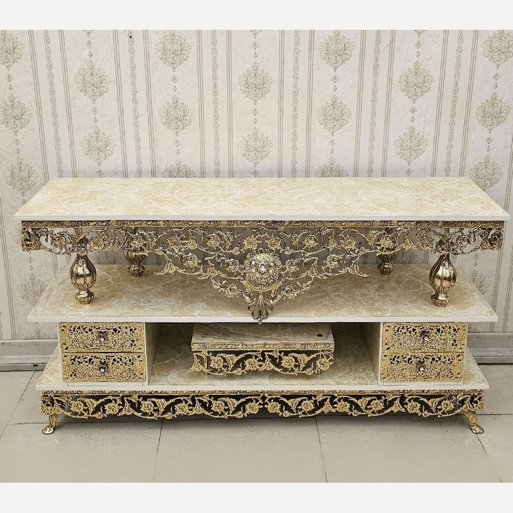 میز تلوزیون برنز میز تیوی میز تلویزیون میز TV باکس دار طاووس سیمرغ مبلمونسرا مدل 220632