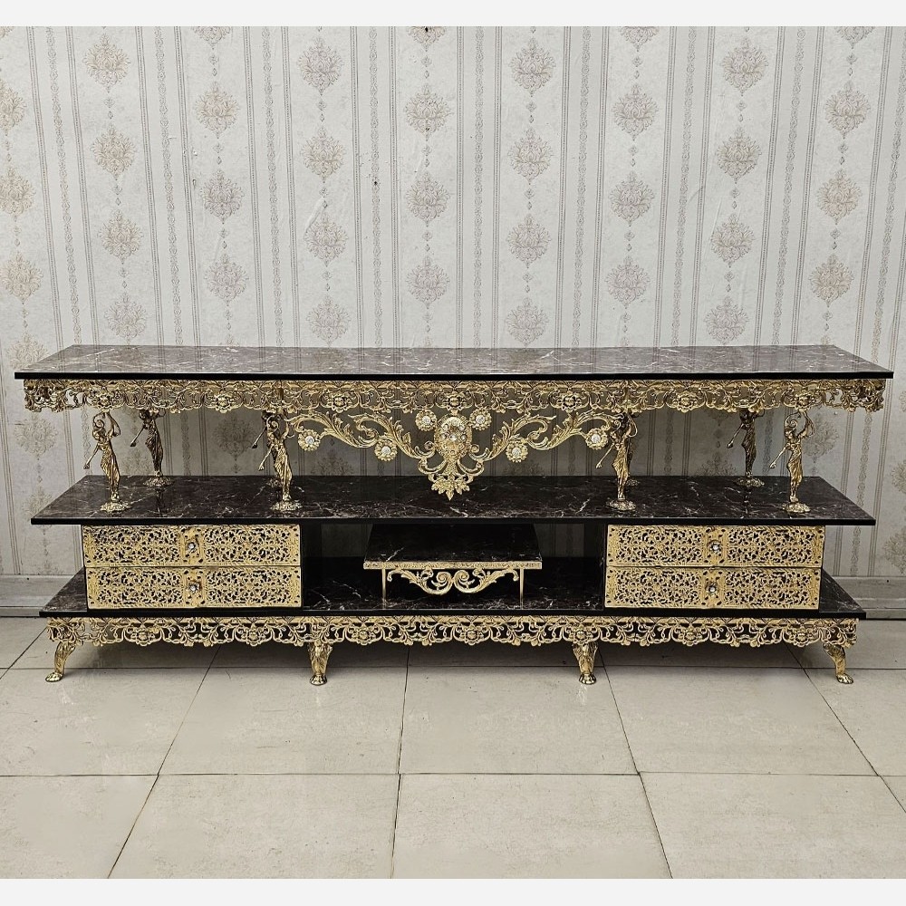 از آنجایی تلویزیون جزو نقاط کانونی در دکوراسیون منازل به حساب می آید، توجه به میز تلویزیون از اهمیت بالایی برخوردار است. استحکام و زیبایی میز تلویزیون از اهمیت بالایی در انتخاب یک میز تلویزیون مناسب برخوردار است. فروشگاه لوکس برنز عرضه کننده انواع میز تلویزیون برنزی می باشد. تنوع در میز تلویزیون برنز بسیار بالا می باشد و در فروشگاه لوکس برنز نیز بیش از 100 مدل میز تلویزیون در اندازه و اشکال مختلف وجود دارد. بی شک چنین تنوع بی نظیری در هیچ فروشگاهی وجود ندارد. علاوه بر تنوع موجود در فروشگاه لوکس برنز ، شما می توانید محصول سفارشی شده و باب میل خود را نیز سفارش دهید و در کمترین زمان ممکن آن را دریافت نمایید. چهارچوب محکم میز تلویزیون های عرضه شده از جمله مزایای میز تلویزیون های برنزی فروشگاه می باشد. استفاده از صفحات هایگلاس درجه 1 و با رنگ بندی های متنوع از جمله مزایای میز تلویزیون های لوکس برنز می باشد. طول میز تلویزیون ها نیز از 120 سانتی متر تا 2 متر قابل سفارش و تولید می باشند. گل های مختلفی برای ساخت میز تلویزیون استفاده می شود که بیش از 7 مدل تنوع گل وجود دارد. در تمام مدل ها سیمرغ یا طاووس حذف و با گذاشته میشود .ستون های میز تلویزیون نیز قابل تغییر و سفارشی سازی می باشد. تاج نیز به زیبایی میز تلویزیون اضافه می نماید. اما با این وجود عده ای میز تلویزیون را به صورت ساده می پسندند که امری سلیقه ای است. تعداد کشو نیز از موارد قابل تغییر می باشد. اگر به دنبال میز تلویزیون برنزی با ارتفاع بلند هستید می توانید از مدل های 4 کشو استفاده نمایید. کشوهای بیشتر مطمئناً فضای بیشتری برای قرار دادن لوازم خواهد داشت. از آنجایی که از گل های میز تلویزیون برنزی در ساخت سایر وسایل برنزی مانند آینه و شمعدان، بوفه، ساعت ایستاده و … استفاده می شود. شما به راحتی می توانید میز تلویزیون برنزی خود را با بوفه، آینه شمعدان، ساعت ایستاده، تابلو فرش، جلو مبلی و عسلی، میز تلفن، جا کفشی و … ست کرد. شما با ست کردن وسایل با یکدیگر باعث هماهنگی بیشتر وسایل دکوراسیون با یکدیگر می شود. کلیه میز تلویزیون های برنزی فروشگاه لوکس برنز با ضمانت اصالت محصول عرضه می گردند. از این رو خیال شما از بابت تهیه محصول اصل راحت خواهد بود. ارسال سفارشات نیز ، در شهر تهران با اسنپ ،وانت ،پیک انجام می شود. ارسال به شهرستان ها نیز توسط باربری و قطار و اتوبوس با هزینه جزئی امکان پذیر می باشد. کلیه محصولات دارای ضمانت سلامت ارسال نیز می باشد. یعنی اگر در حین جا به جایی مشکلی برای محصول پیش بیاید و محصول معیوب به دست مشتری برسد، فروشگاه لوکس برنز مسئول جبران خسارت و رفع عیب می باشد. توجه داشته باشید.وزن کارها حدودی درج شده در صورت نیاز به مشاوره رایگان و دریافت راهنمایی های بیشتر می توانید با شماره تلفن 09125538357 تماس حاصل فرمایید.