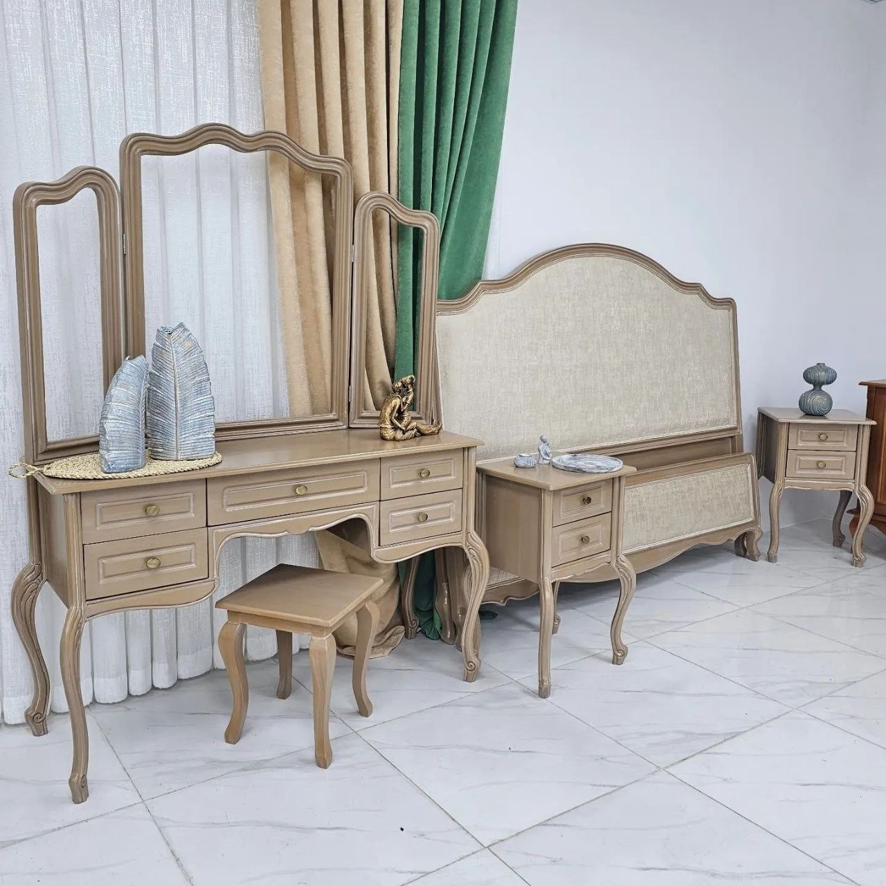 سرویس چوب راش مدل فرانسوی باکیفیت بالا و نازل ترین قیمت شامل: تخت خواب 2 عدد پاتختی میز آرایش آینه پاف متریال: چوب راش و پارچه دیاموند اُیاز رنگ بندی چوب و پارچه سرویس به انتخاب مشتری محترم میباشد و قابل تغییر است قیمت هارا مقایسه کنید این کار توسط همکاران و نمایشگاه ها 45 تا 60 میلیون تومان میباشد
