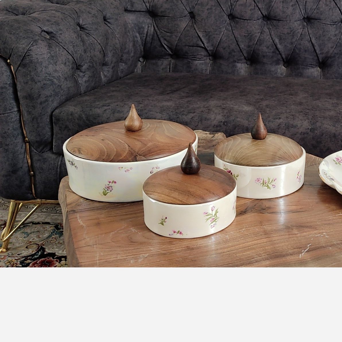 ارسال رایگان.ست شکلات خوری سرامیکی.شکلات خوری با درب چوب گردو مبلمونسرا مدل 295471