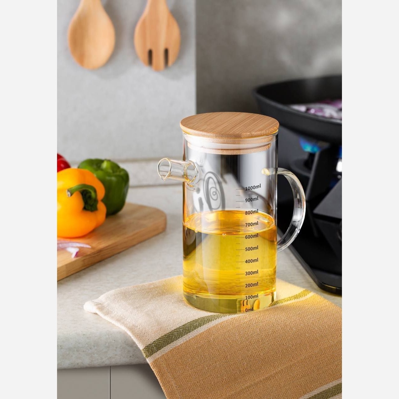 ظرف روغن آکرولیکی درب بامبو درجه یک جعبه دار 750 میلی لیتری