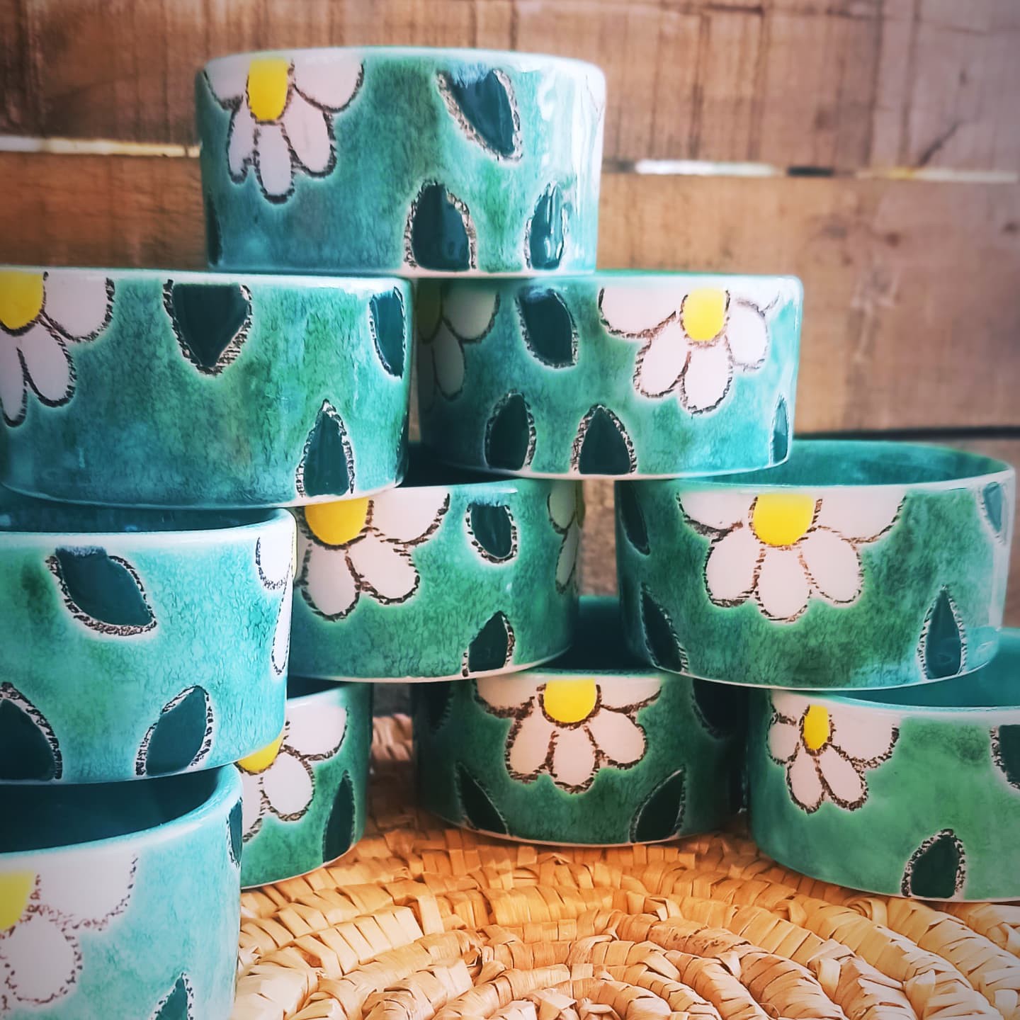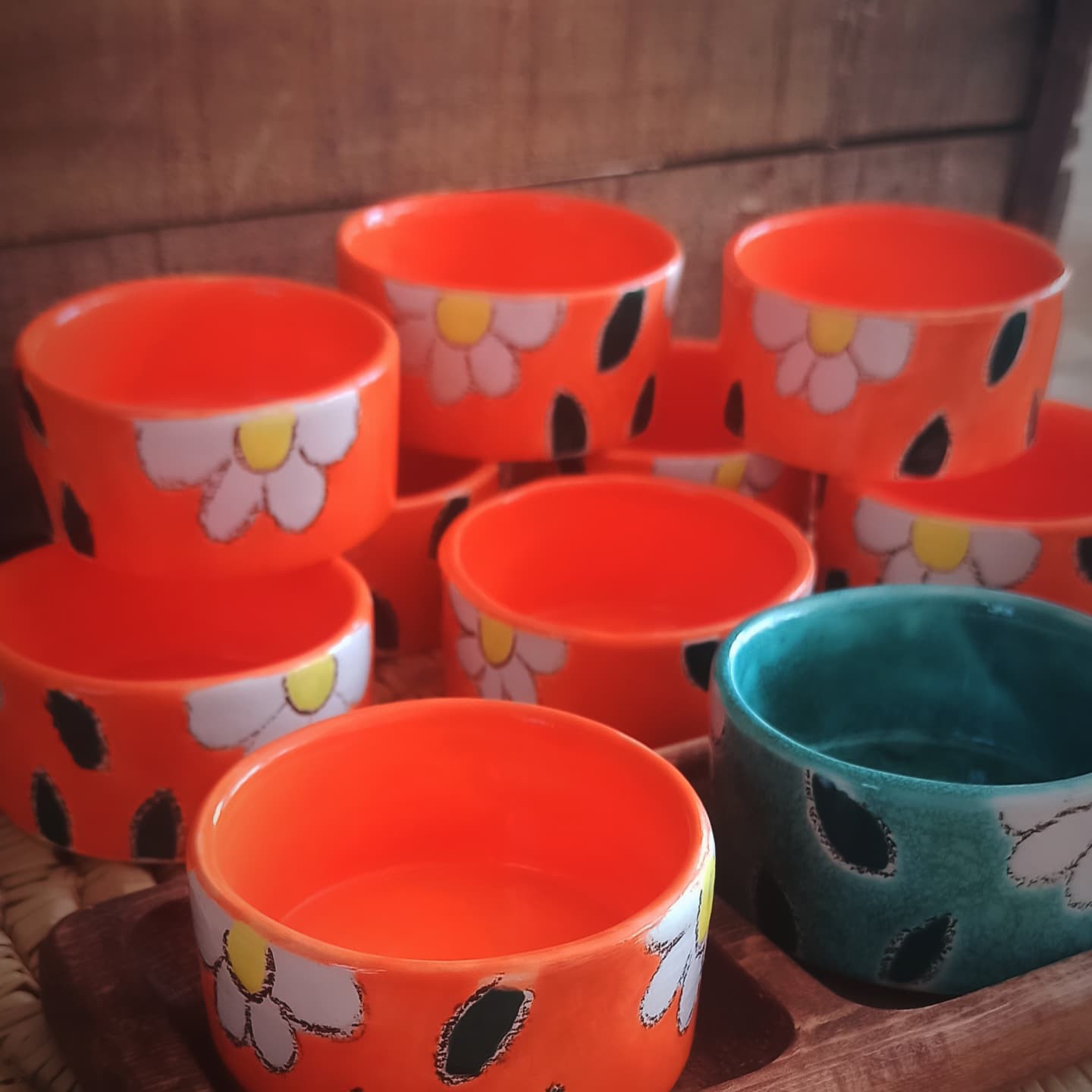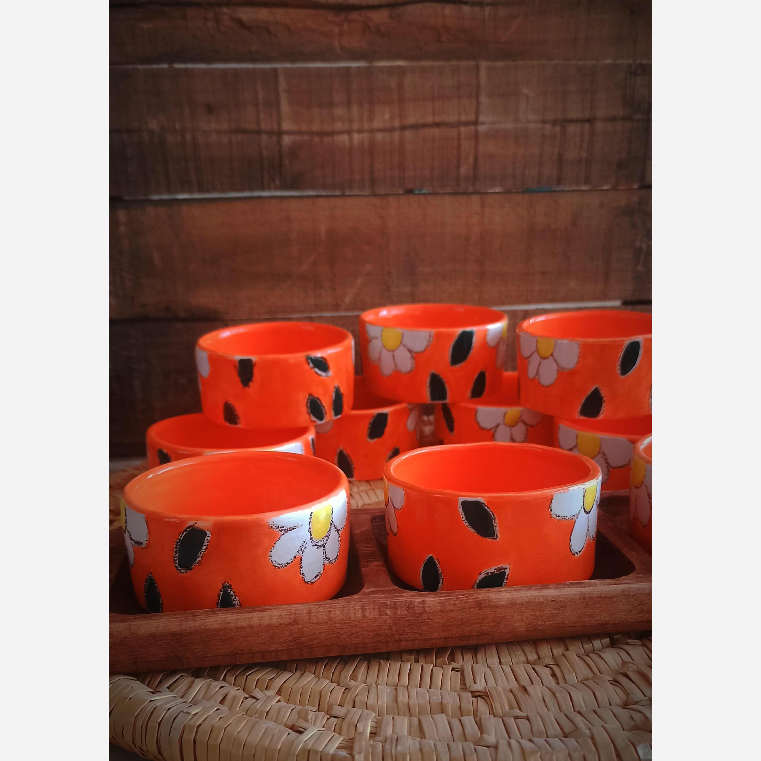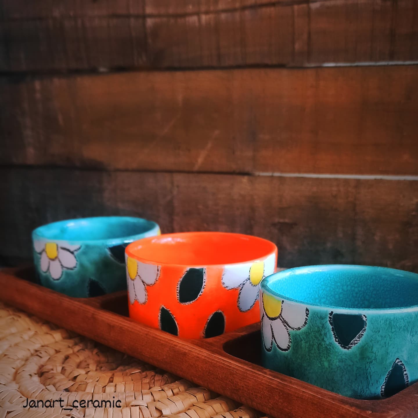 کاسه ماگ ها از جنس سرامیک هستند، قطر 8،و ارتفاع 4نیم،نقاشی ها با دست انجام شده،سپس رنگ ها در کوره با دمای بالا پخته شده است، همچنین خطوط سیاهی که در دروگیر طرح ها مشاهده میکنید مداد نسوز هست و ضد آب ،بر اثر شستشو رنگدهی ندارد در درمانی بالا پخت شده و ثابت میباشد، قابل سفارش در رنگ ها و طرح های مختلف، حتی ابعاد هم قابل تغییر است،اینکارها سفارشی بوده و در مصارف مختلف کاربرد دارد، برای مثال هفت سین، تنقلات ، ماست و سیر وزیتون، بستنی خوری و.....
