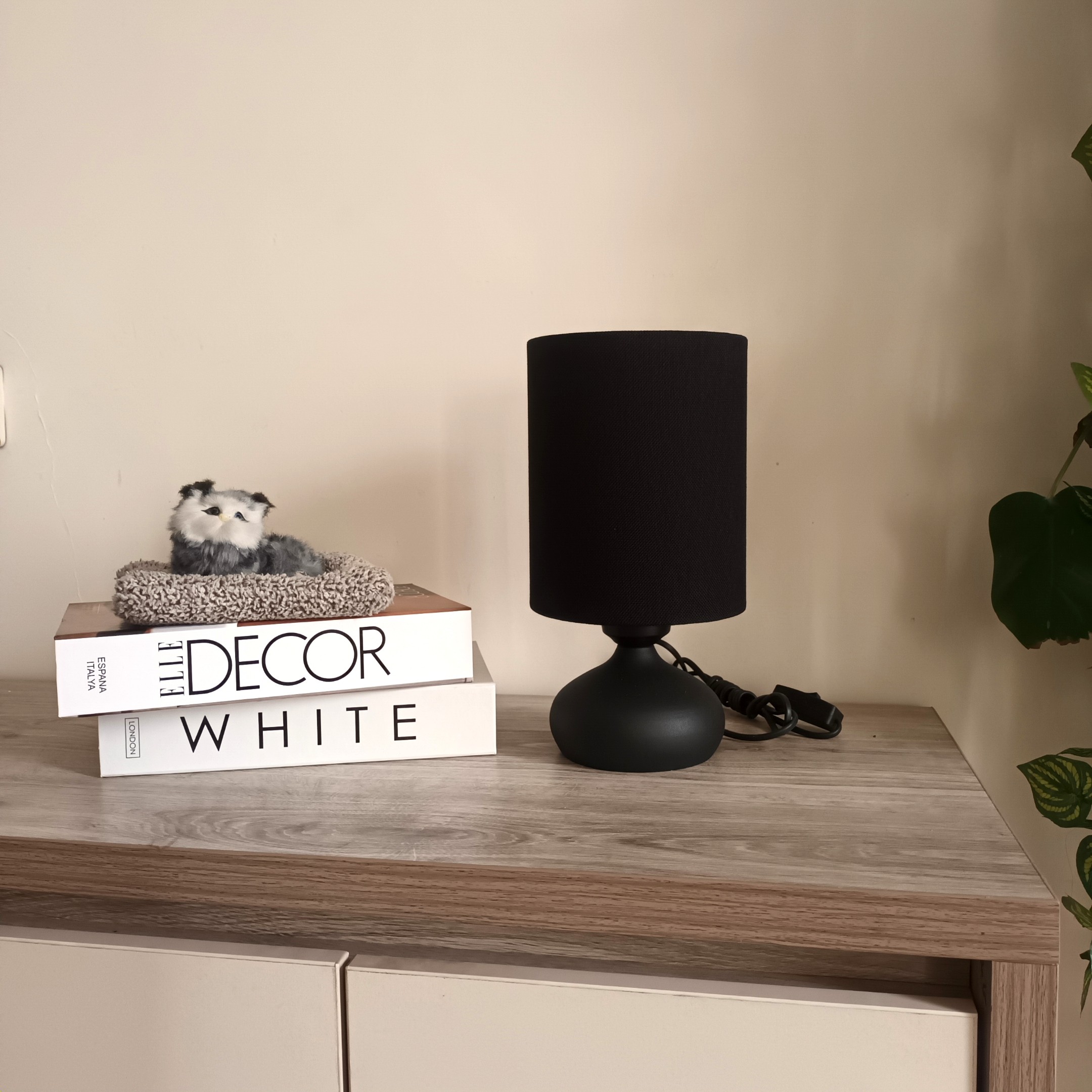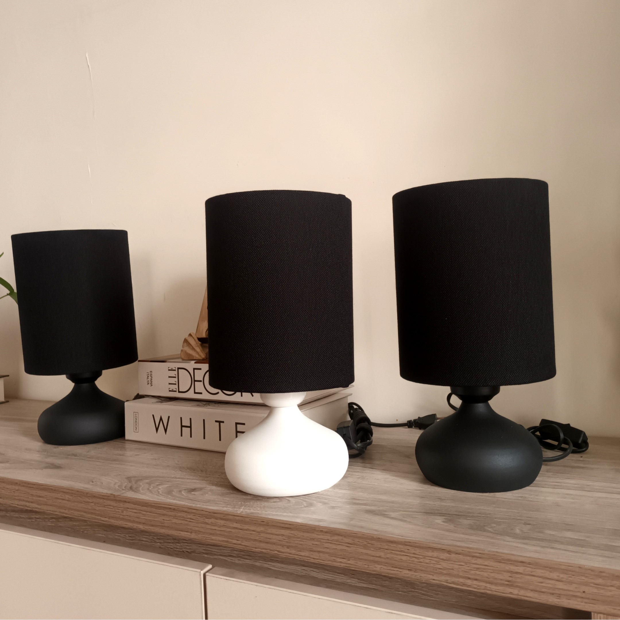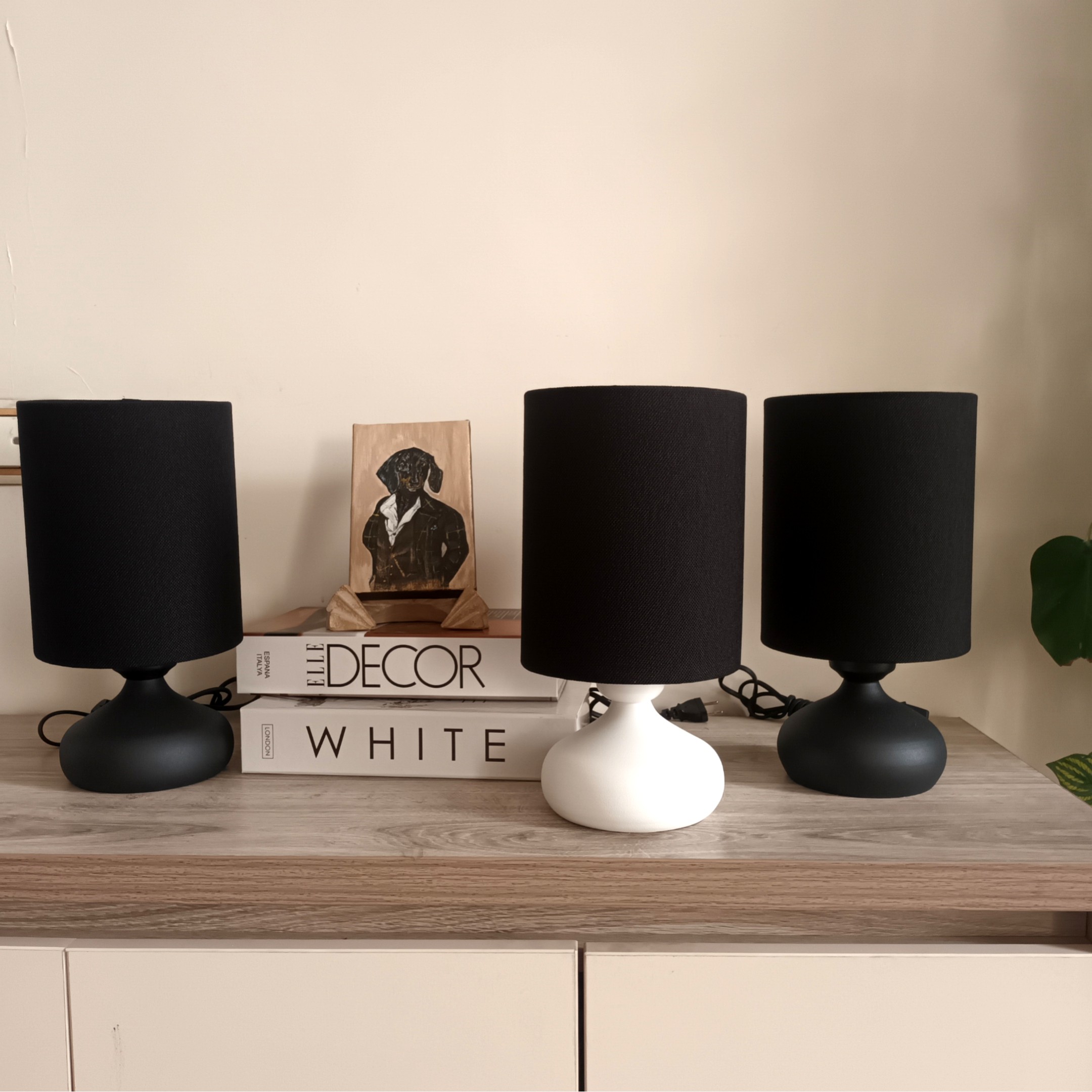 آباژور پایه فلزی مدل امپریال کد دو ارتفاع 25 سانت میباشد شید استوانه است قطر شید 15 سانت شید پارچه کتان میباشد رنگبندی پایه سفید و مشکی رنگبندی شید مشکی مناسب پاتختی و اتاق خواب و هدیه و یا در شرکت و مغازه
