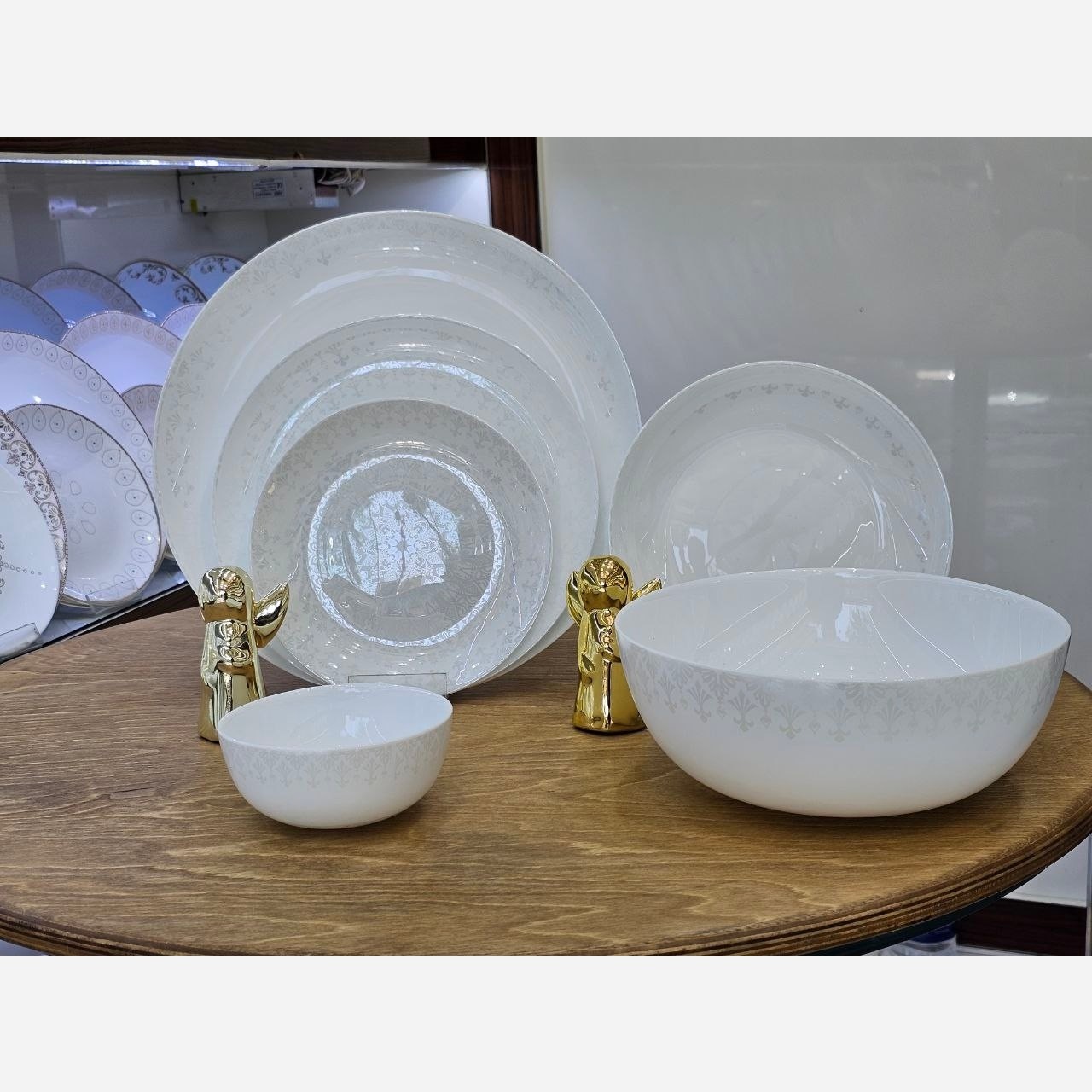 طرح: پارمیدا لوستر قالب: دیوالی کارخانه: گلدن اپال سرویس 26پارچه: پلو 6عدد خورشت 6عدد پیش دستی 6عدد ماست 6عدد دیس 1عدد سالاد 1عدد قابل استفاده: ✅️ ماکروفر ✅️ ماشین ظرفشویی