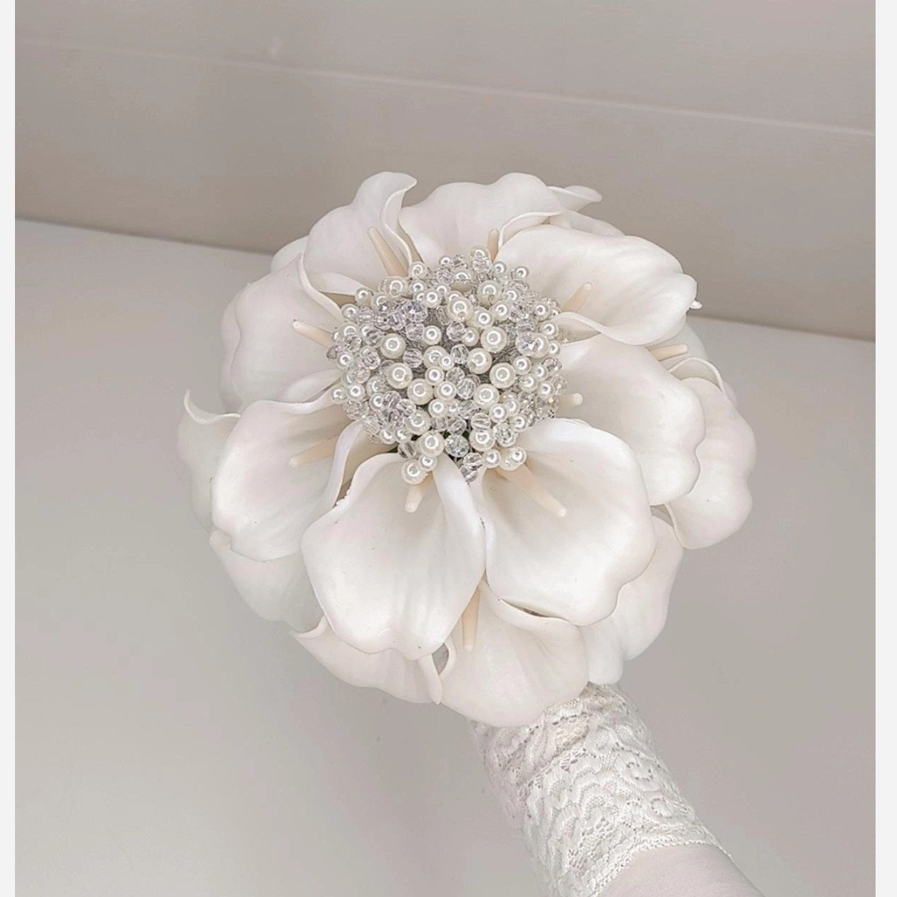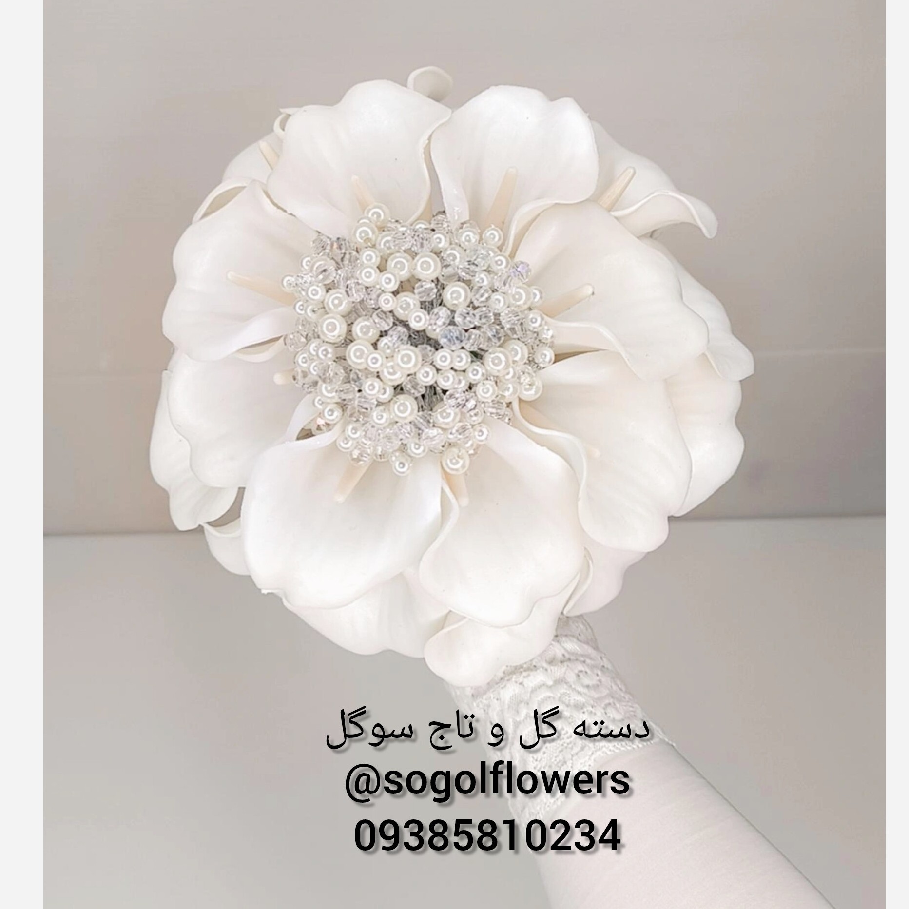 گل شیپوری،دسته گل شیپوری و مروارید، دسته گل عروس،دسته گل عروس مصنوعی،دسته گل عقد مبلمونسرا مدل 259442