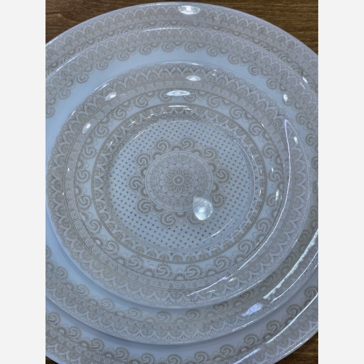 طرح: ونیز عسلی قالب: بن کارخانه: گلدن اپال سرویس 26پارچه: پلو 6عدد خورشت 6عدد پیش دستی 6عدد ماست 6عدد دیس 1عدد سالاد 1عدد قابل استفاده: ✅️ ماکروفر ✅️ ماشین ظرفشویی