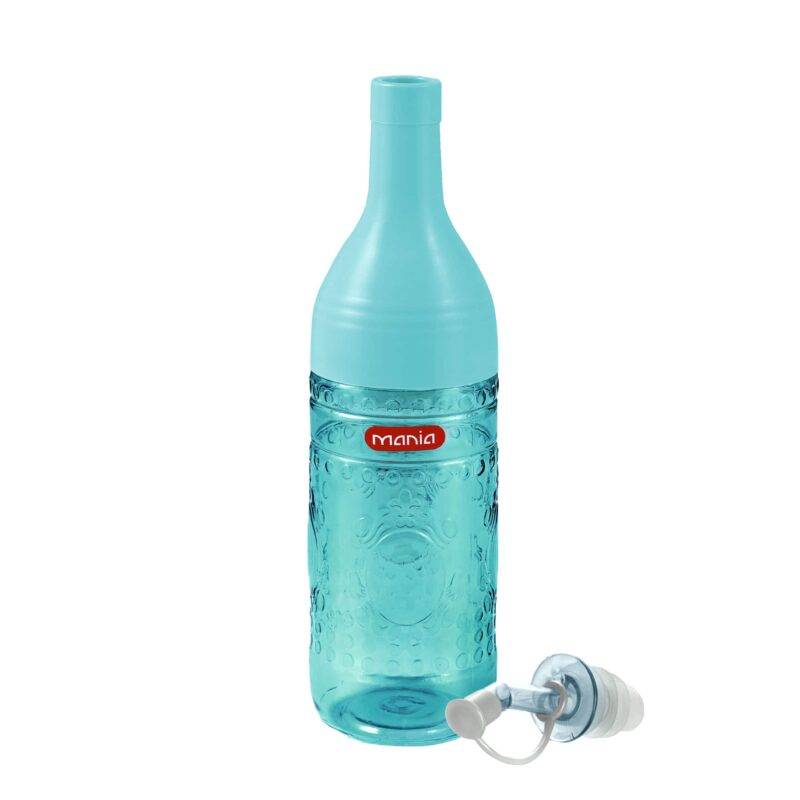 بطری آبلیمو خوری و روغن ریز کوچک مانیا مدل مینیاتوری کد 105120 گنجایش نیم لیتر شامل: یک عدد بطری آبلیمو خوری و روغن ریزی از جنس PET و دارای آرامریز به گنجایش نیم لیتر، وزن 112 گرم و ابعاد 25 × 6.5 × 6.5 سانتیمتر. این بطری نشکن بوده و از سه قسمت در و بدنه بالایی و بدنه مندرج تشکیل شده است. بدنه مندرج که دارای طرح چاپی است به صورت شفاف بوده و به بدنه بالایی به شکل پیچی متصل می شود که این امر شستشوی بطری را آسانتر می کند. این محصول دارای دو درب است، درب اصلی و درب روغن ریز به بدنه بالایی امکان اتصال دارند که در صورت نیاز و با توجه به کارایی افراد از هر یک از آنها استفاده می شود. این محصول فاقد BPA می باشد.