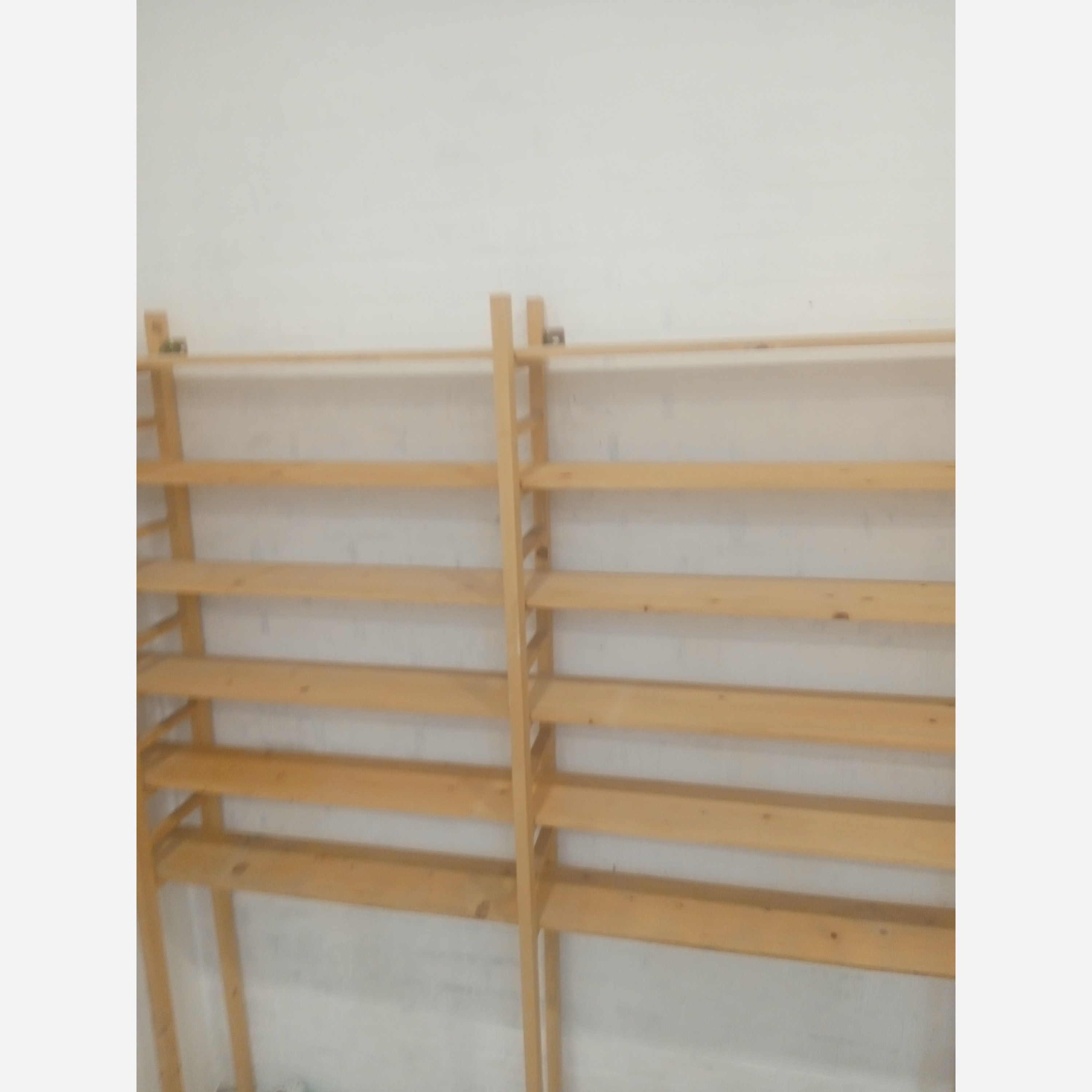 قفسه چوبی شش طبقه که بصورت کشویی در نردبان پایه ها قرار میگیرند و قابلیت تنظیم ارتفاع دارند. تماما با چوب روسی ارتفاع دو متر عرض دو متر عمق 28 سانت قابل سفارش در ابعاد مختلف