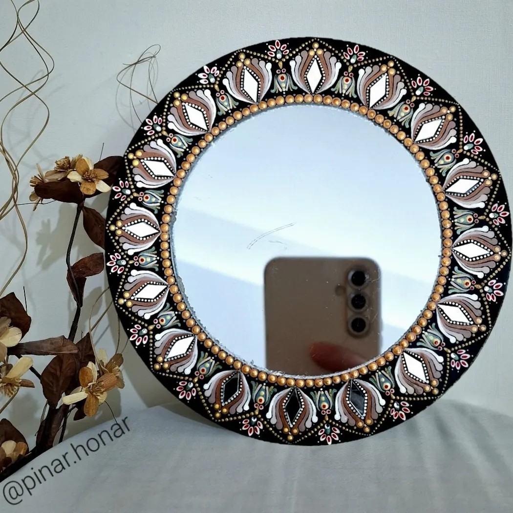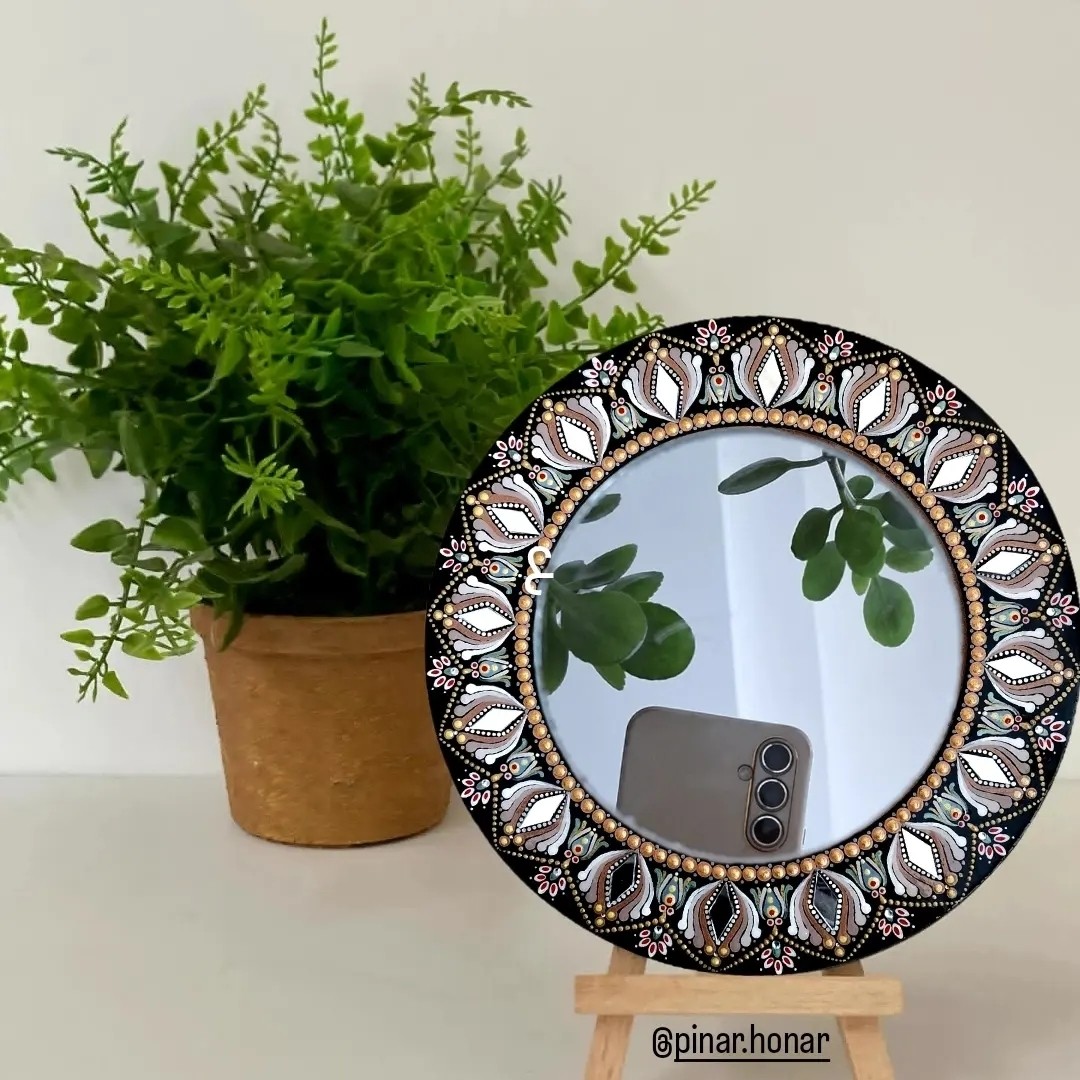 این آینه رو هم میتونید روی دیوار نصب کنید و هم روی میز بذارید و در ابعاد بزرگتر یاکوچکتر هم قابل سفارش بارنگ و طرح دلخواه شما میباشد