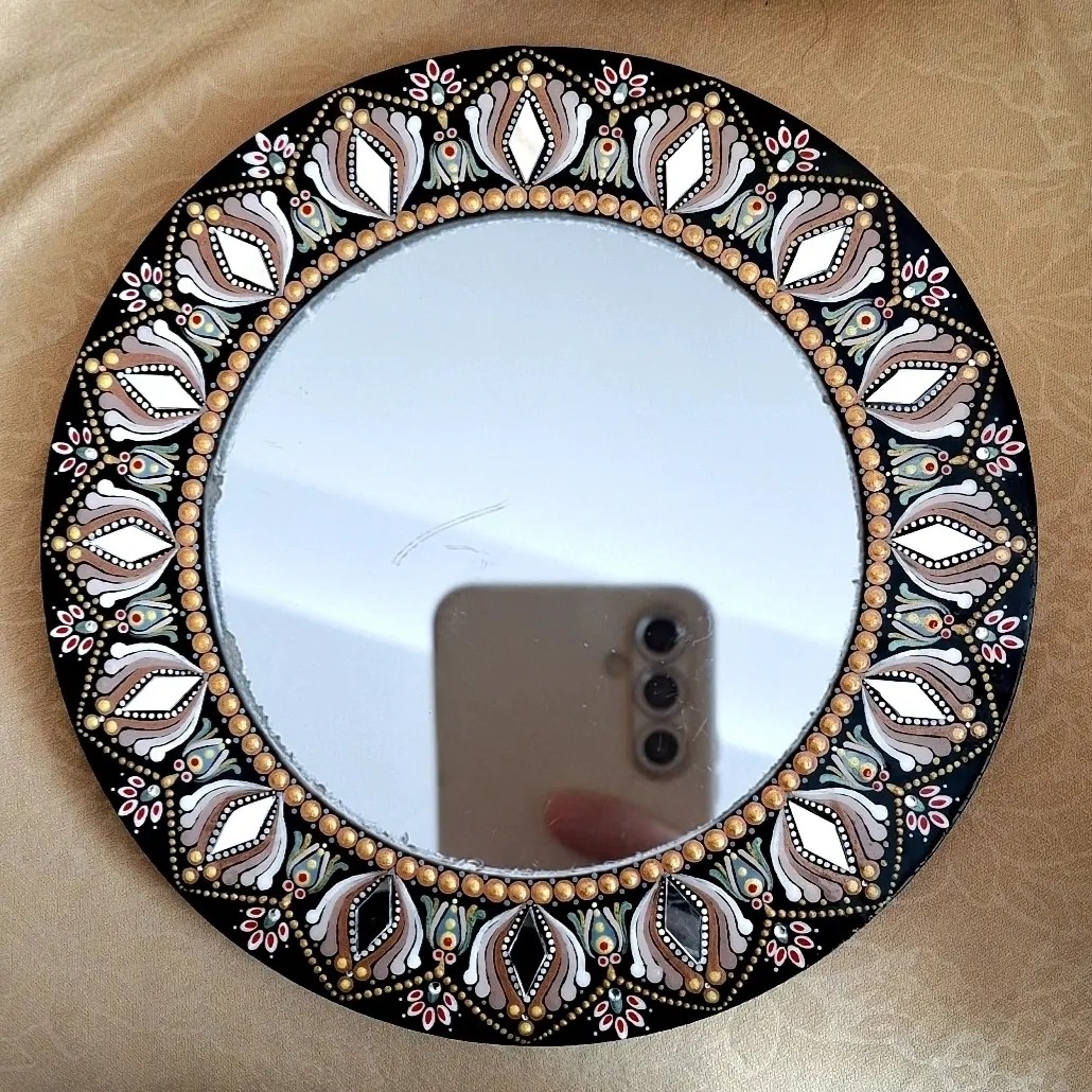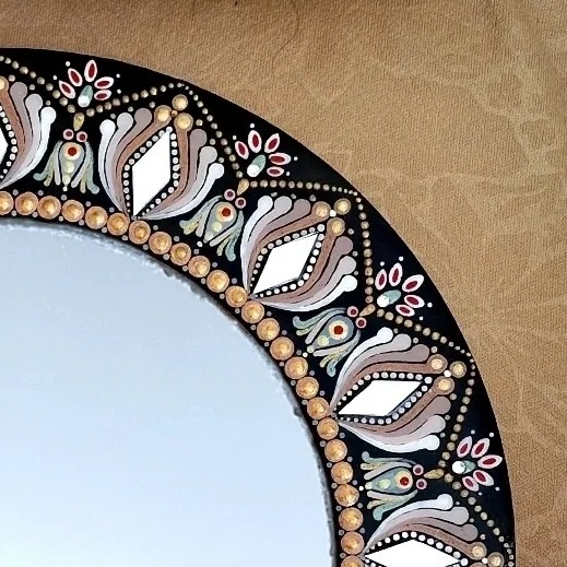تکنیک کار نقطهکوبی با رنگهای اکرولیک و آینهکاری است محصول تماما با دست کار شده . سطح کار هم با رزین اپوکسی شفاف براق و ثابت شده برای تمیزکاری و گردگیری از پارچه نرم و مرطوب میتونید استفاده کنید پشت کار جهت نصب روی دیوار یک تکه چوبی تعبیه شده که میتونید به راحتی روی دیوار نصبش کنید