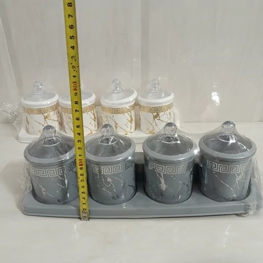جاادویه 5 تیکه طرح ماربل مارک رزمن پلاستیک / ست جا ادویه / سرویس جا ادویه مبلمونسرا مدل 290770