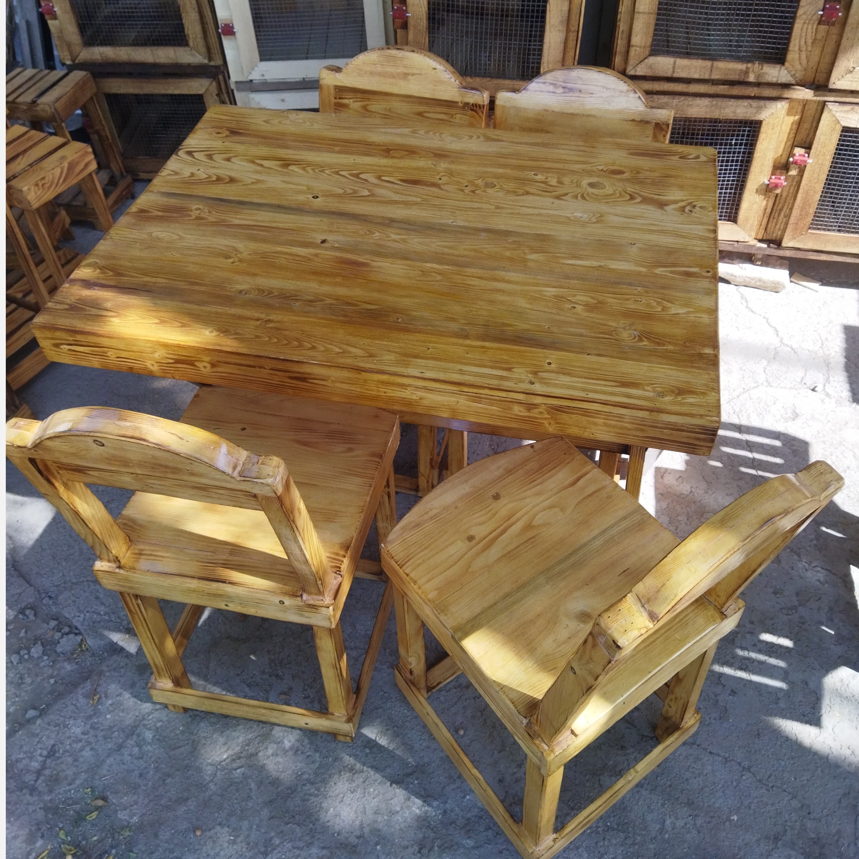 میز و صندلی چوبی چهار نفره 🪵 _ این میز و صندلی مناسب کافه دارای عزیزمون هست که میخوان با یه هزینه کم کافه خودشون رو پر کنن از میز و صندلی های تمام چوبی 🔥 _ یا کسایی که برا خونشون دنبال یه دست میز و صندلی با قیمت مناسب میگردن 🔥 _ جنس : تمام کار از چوب روسی می باشد همراه با پوشش رنگی که در برابر آب مقاوم بشه تا اگه خدایی نکرده چیزی روش ریخت خراب نشه _ ابعاد : میز : 100در 70 به ارتفاع 80 سانتی متر صندلی : 40 در 40 به ارتفاع 90 سانتی متر _ میز یا صندلی هاش به صورت جدا گونه هم فروخته میشود _ این میز رو میتونید با چهارپایه هامونم که داخل غرفه گذاشتیم هم ست کنید🔥 _ چون خودمون تولید کننده ایم اگر در ابعاد خاصی میز و صندلی میخواهید براتون آماده میکنیم😎 _ فروش درب مغازه هم داریم _ اگر سوالی داشتین حتما بهمون پیام بدین گروه پشتیبانی ما در خدمت شماست 😊 _ به غرفمون هم یه سری بزن کلی چیزای قشنگ و خاص داریم که حتما به دردت میخوره 😉