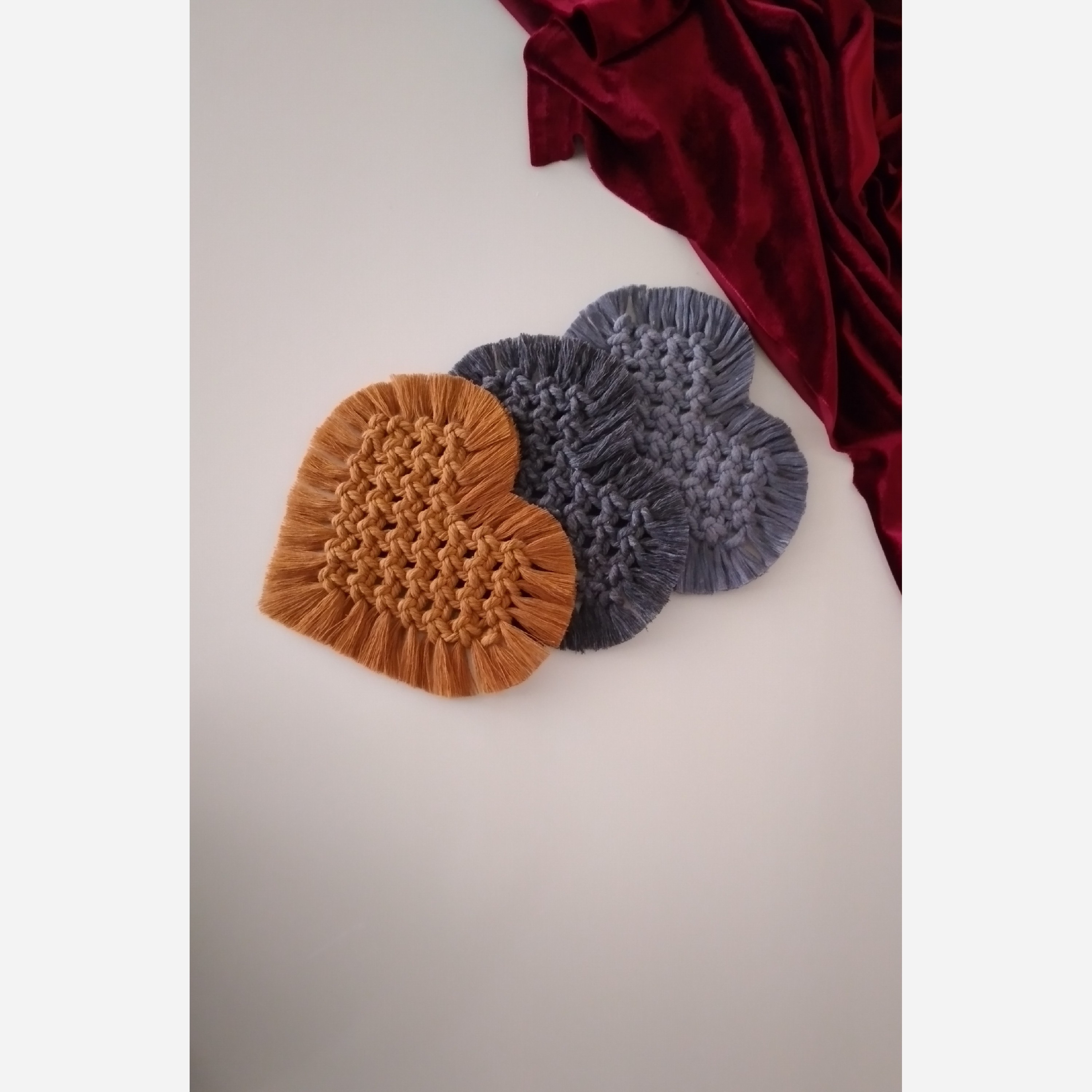 زیر لیوانی های قلب مکرومه مبلمونسرا مدل 298381