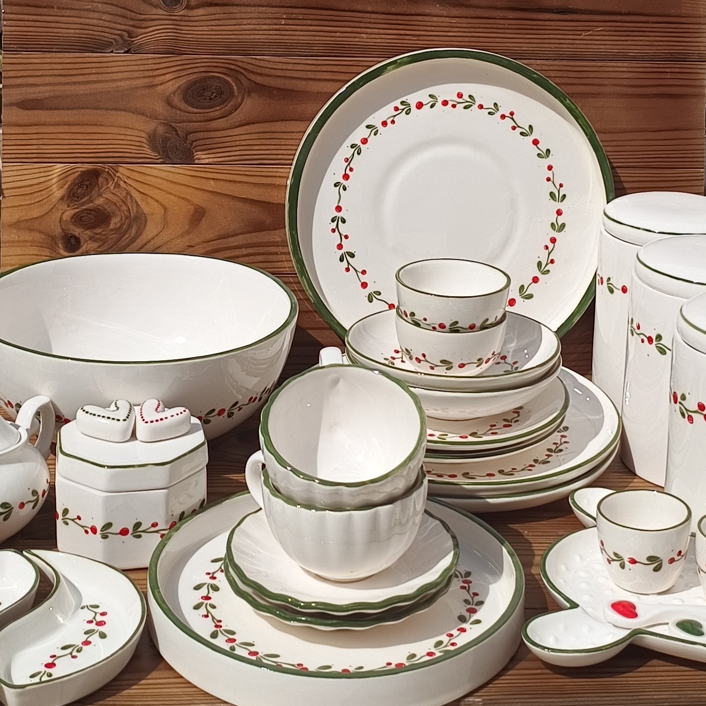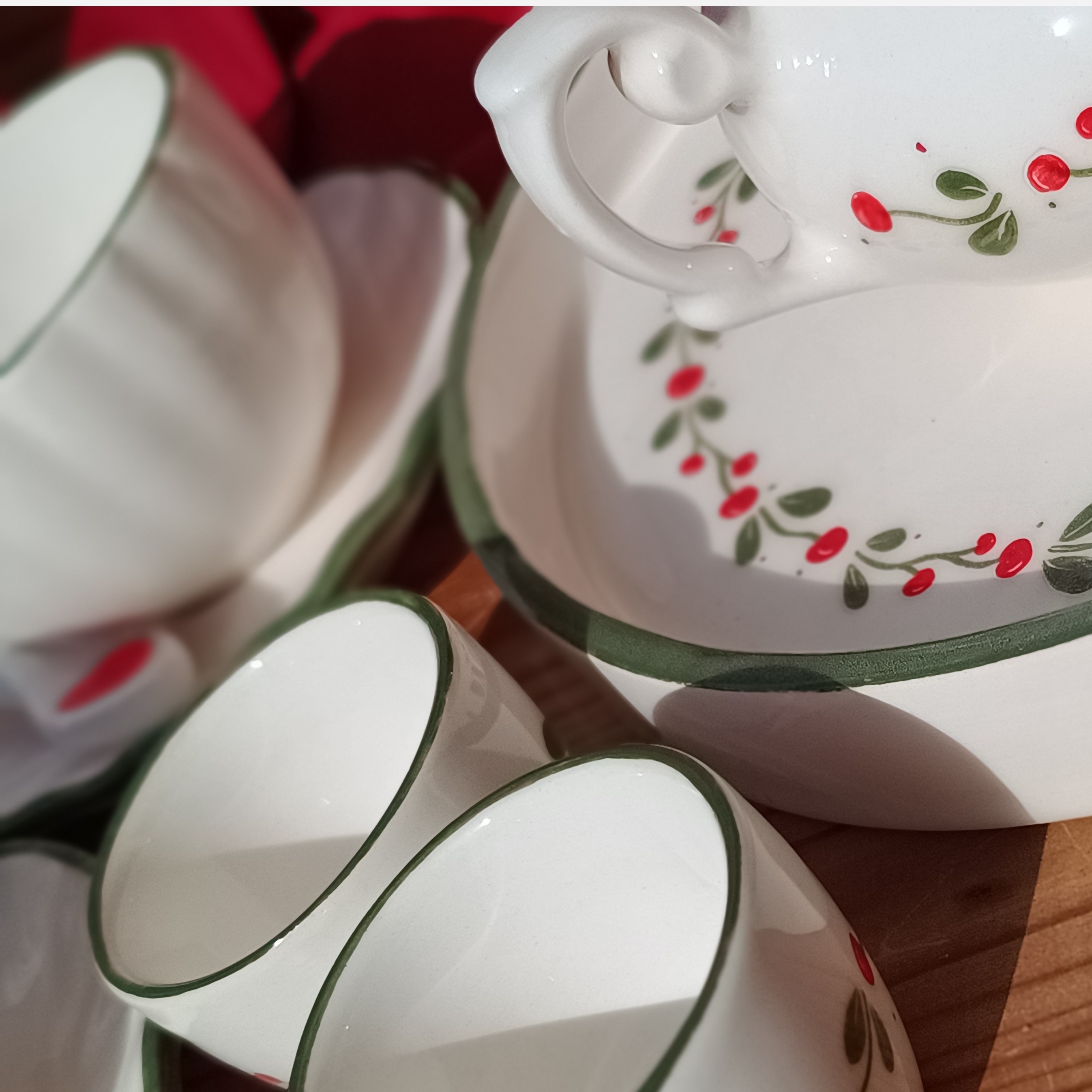 سرویس غذاخوری 30 پارچه دست ساز سرامیکی گل و برگ مبلمونسرا مدل 288053