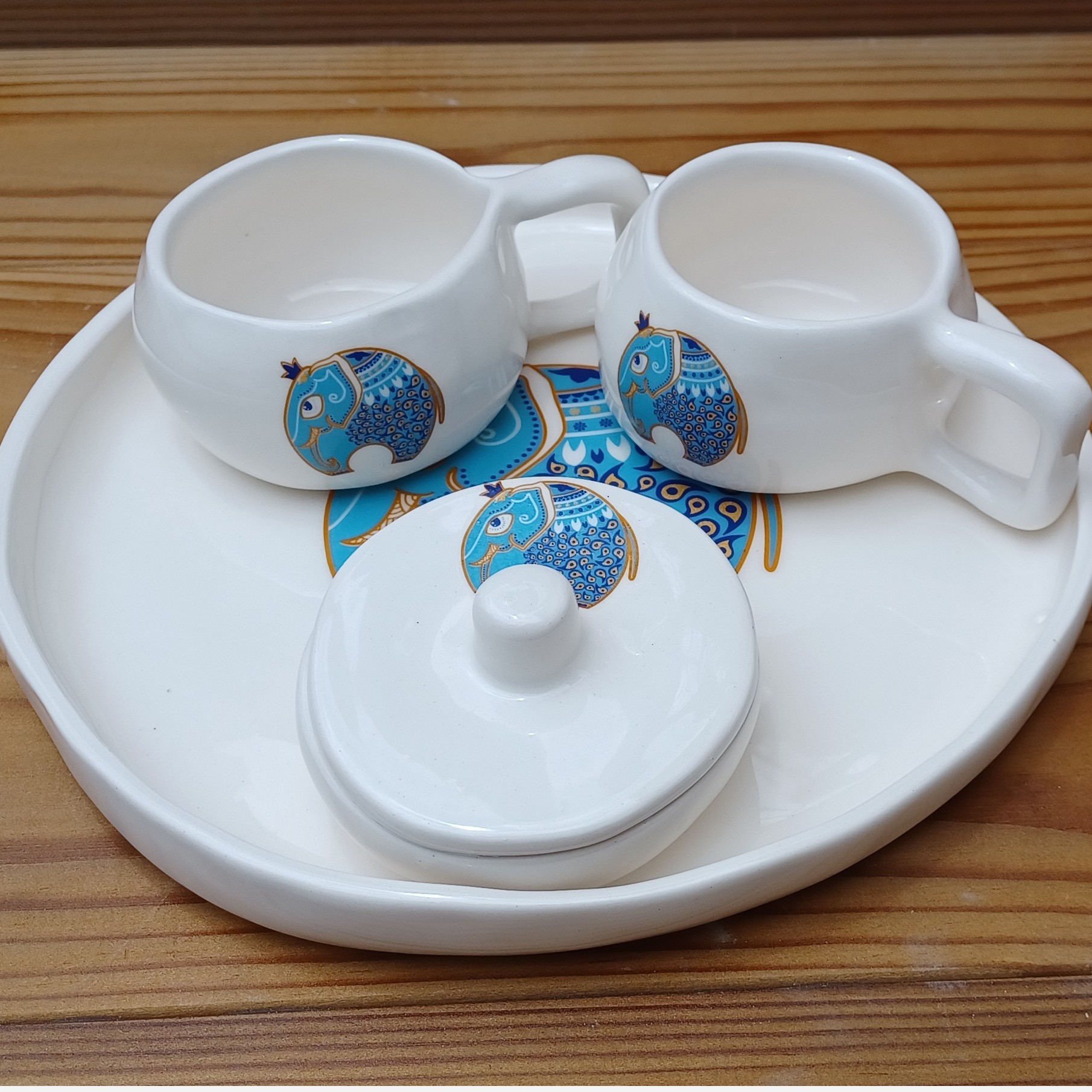 سرویس چای خوری مینیمال دفرمه دست ساز سرامیکی فیل طلا مبلمونسرا مدل 273727