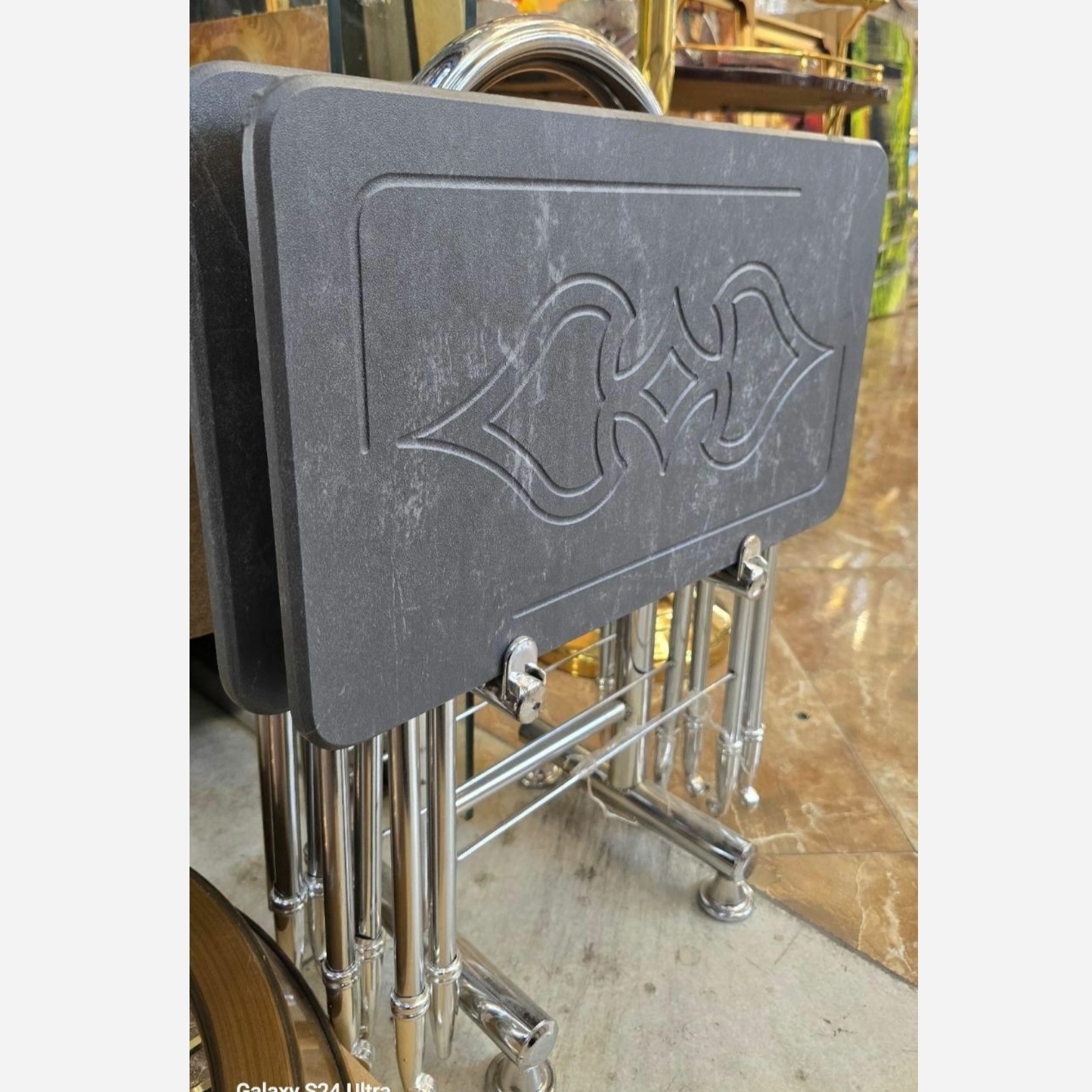 میز عسلی چهار عددی با استند نگه دارنده دارای رنگ بندی جذاب مناسب انواع مبلمان منزل و اداری جنس کار ترکیبی از ام دی اف و روکش وکیوم مقاوم در برابر اب رطوبت و ضد خش در مقابل سایش پایه ها از جنس اهن ابکاری شده با کیفیت عالی در ابکاری که ضد زنگ میباشد . و ته پایه های کار از جنس پلاستیک برای عدم لغزش و محافظت از پاره نکردن فرش کار دارای رنگ بندی ابعاد رویه کار 50 در 30 بوده که سایز بزرگ این مدل میباشد و اختلاف قیمت این کار با نمونه های مشابه به علت بزرگ بودن ابعاد میباشد .