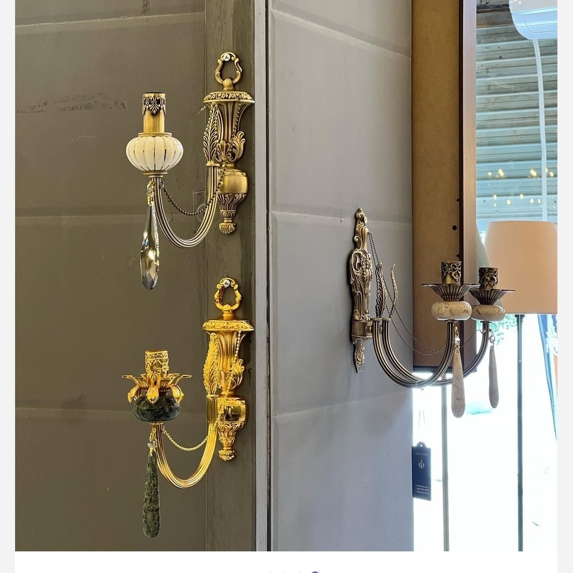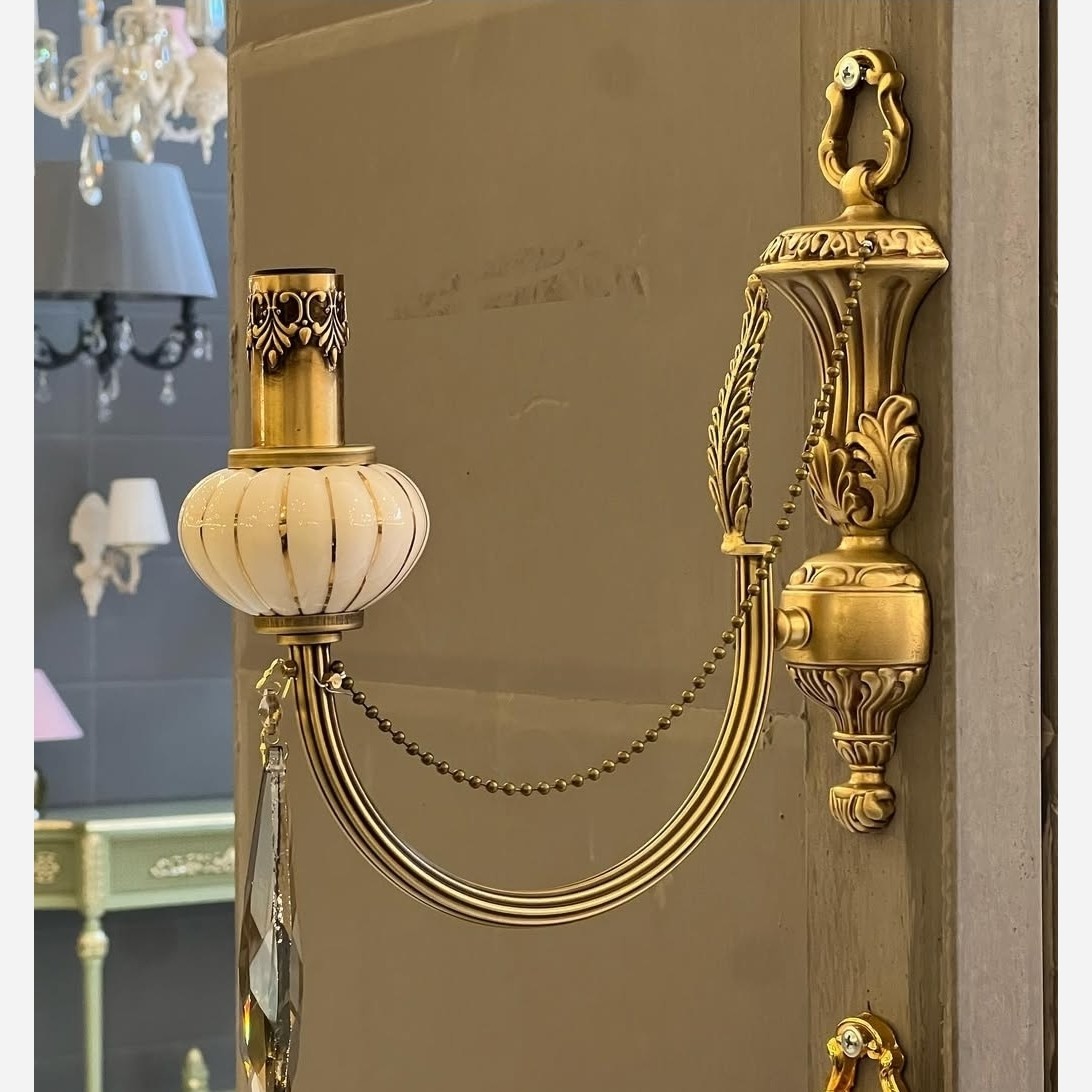 لوستر دیواری برنز نئو کلاسیک دیوارکوب برنزی شب خواب آباژور برنز سنگ آنتیک مبلمونسرا مدل 231938