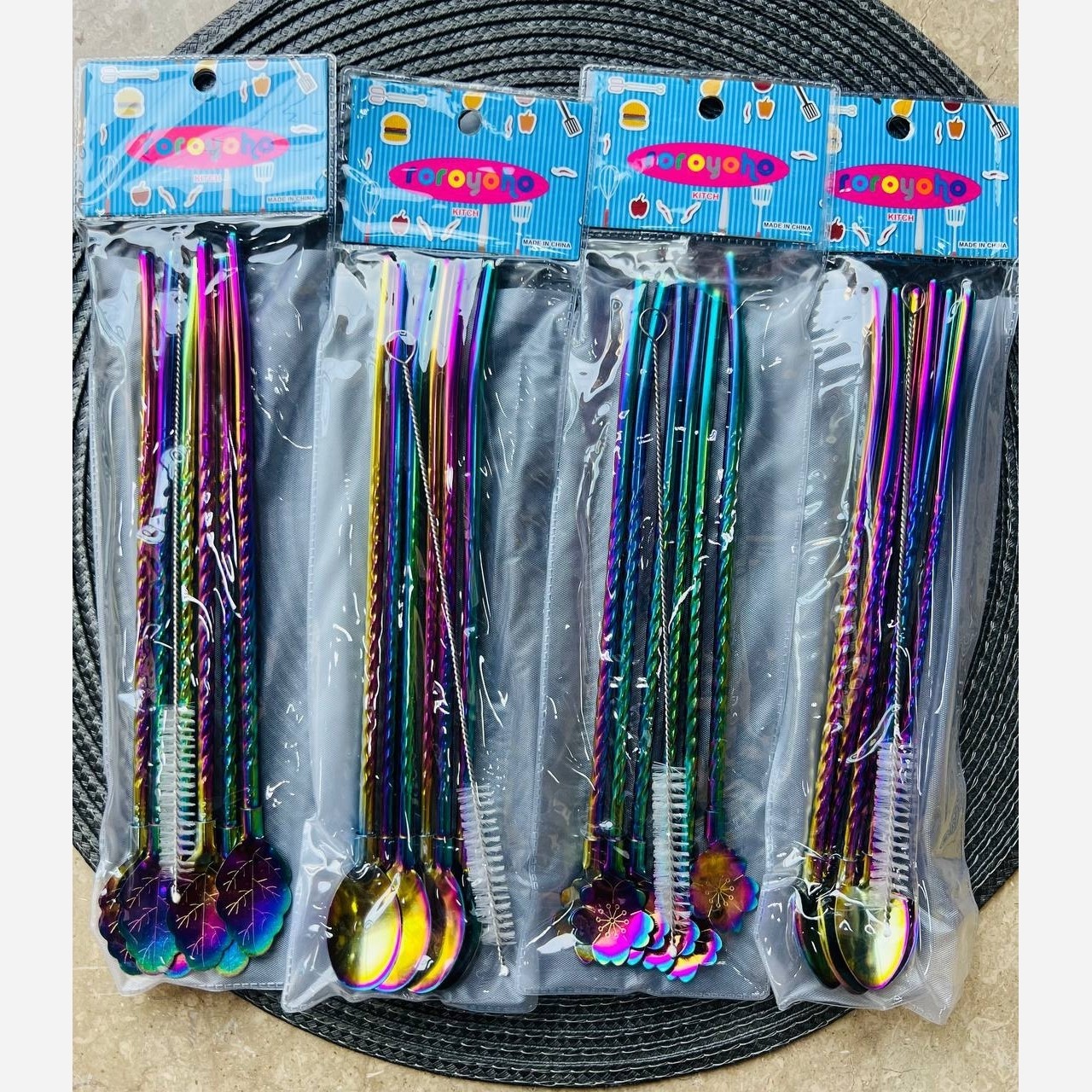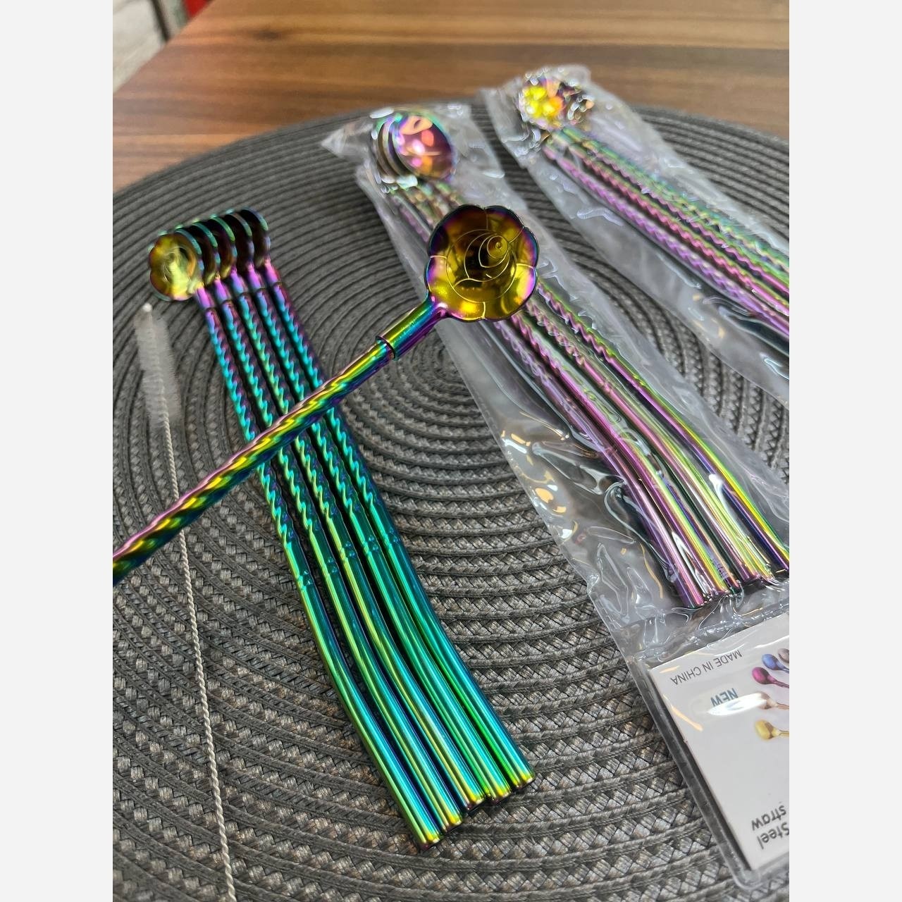 نی شربت قاشق دار هفت رنگ وارداتی به همراه فرچه مبلمونسرا مدل 278626