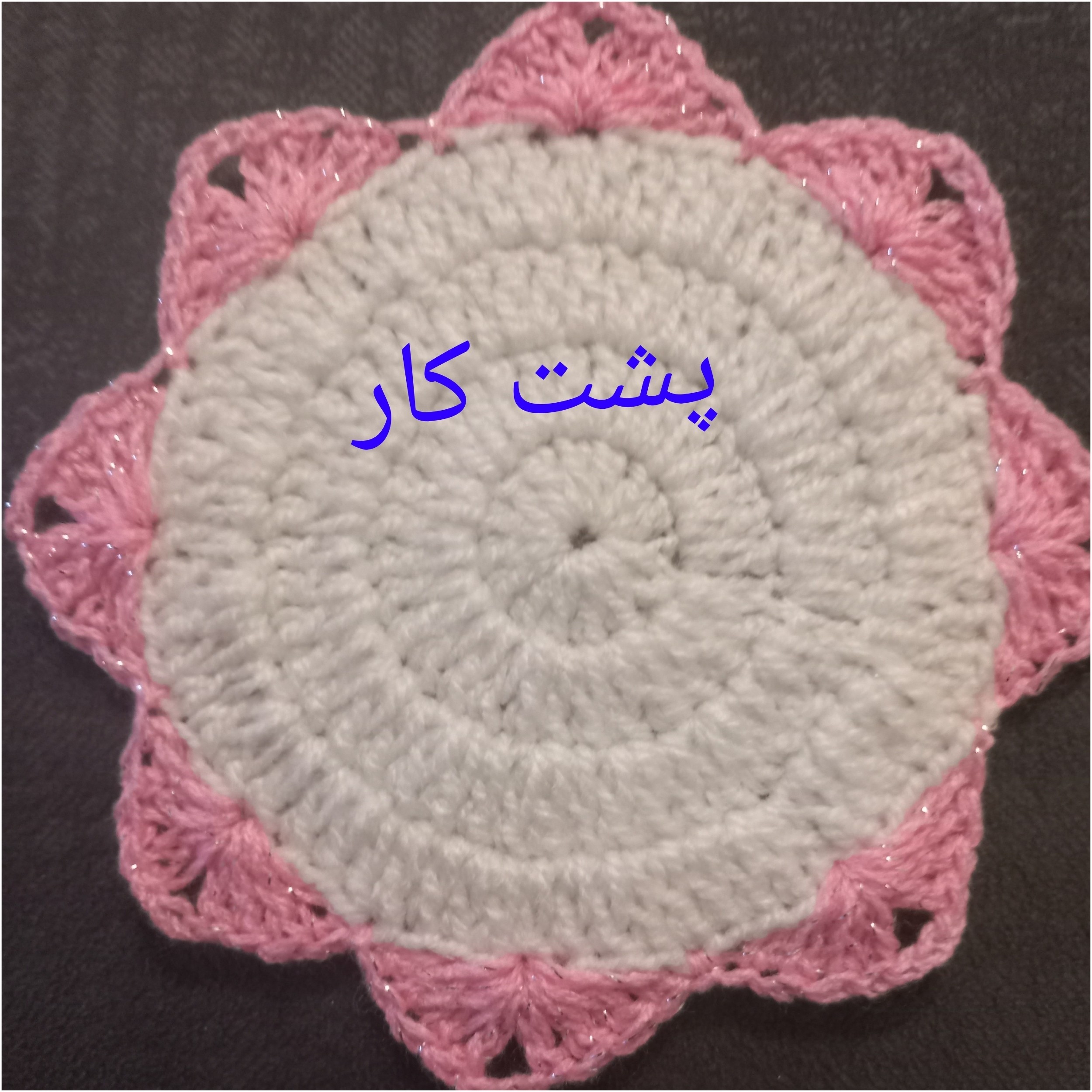 زیر لیوانی قلاب بافی کاموای ایرانی حاشیه ی کار کاموای زردار هست قابلیت سفارش در رنگ دلخواه دارد قطر دایزه سفید 10 سانت قطر کار با حاشیه 13 سانت