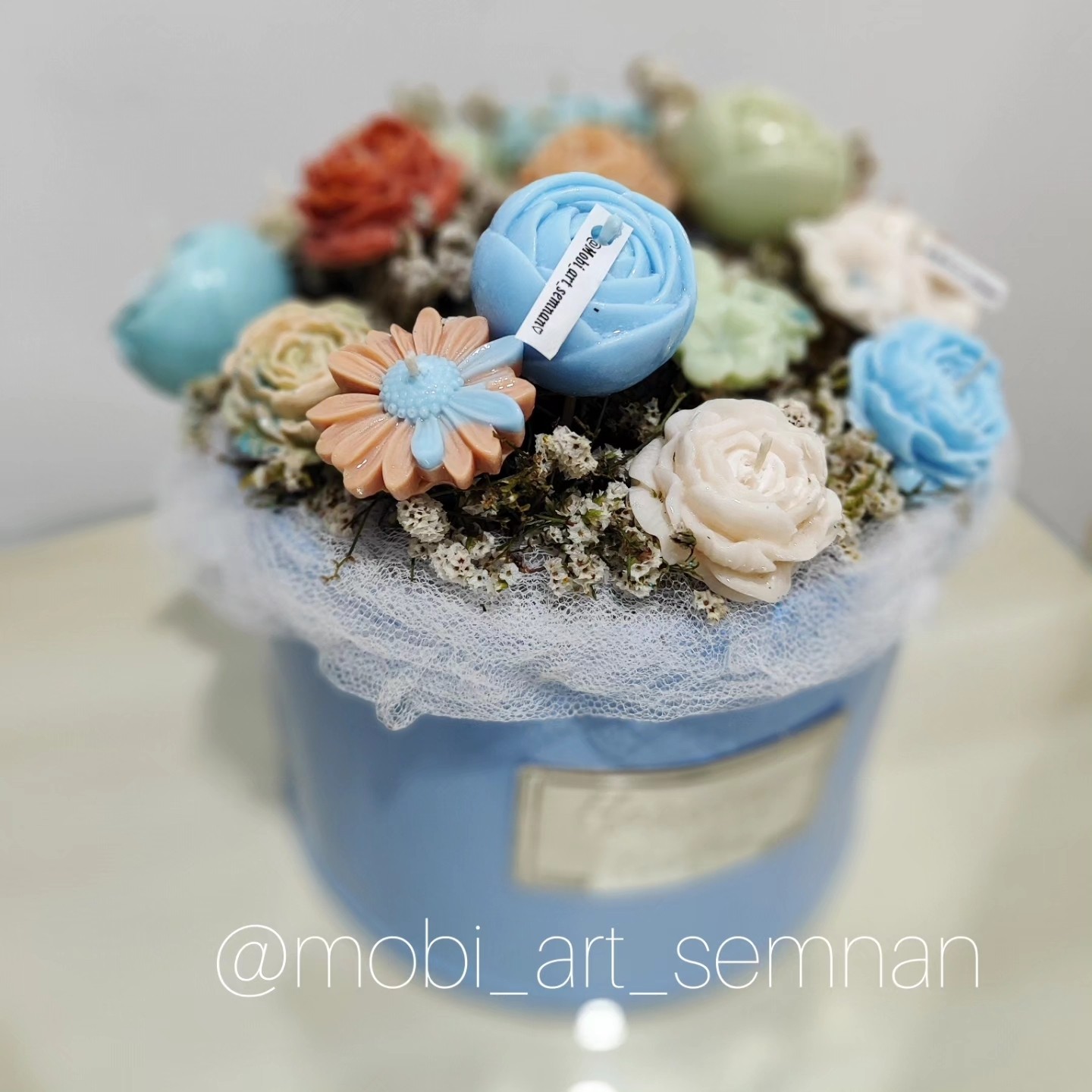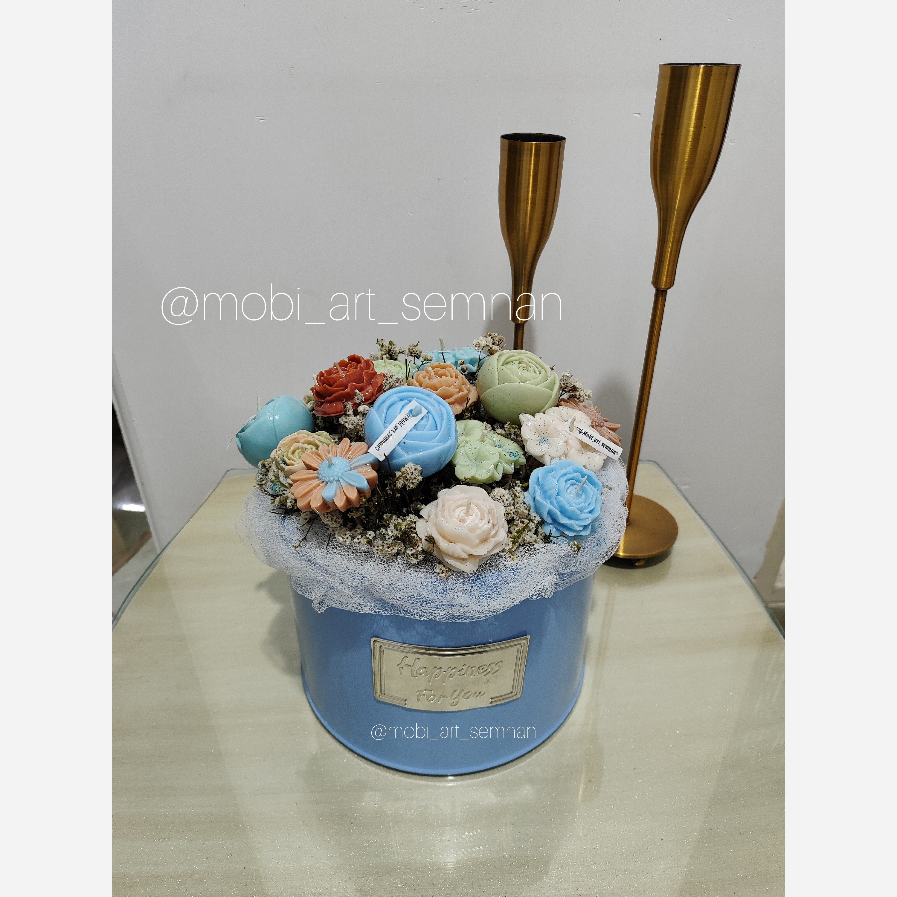 باکس گل شمع باکس هدیه باکس گل باکس لاکچری آلاله بابونه پیونی باکس جعبه هدیه کادو مبلمونسرا مدل 281481